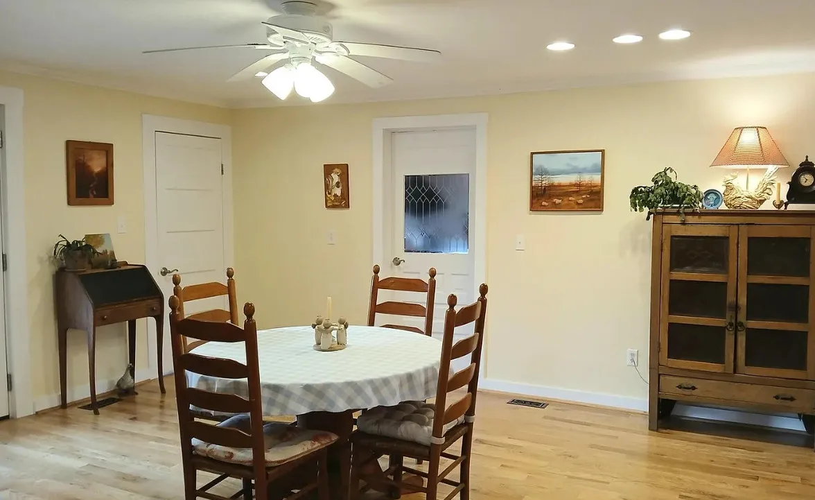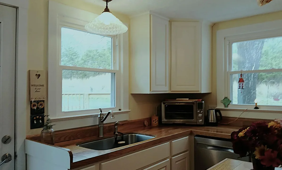 Happy farmhouse filled with light & simplicity! Private yard for some grilling, gardening, or roaming hens. Long driveway for evening walks, a wraparound porch for morning coffee, & abundant inspiring views. Main level has an open living/dining area, spacious kitchen, 3/4 bath, laundry room, and a bedroom/den with adjoining full bath. Upstairs are 3 large bedrooms (2 with walk-in closets) and a full bath. Remodeled in 2024: new hardwood flooring, replaced HVAC ducts/plumbing, new kitchen cabinets/appliances, new bathroom vanity & shower insert. Tiled hearth, ready for your choice of paint color. Walls freshly painted & contemporary skip-trowel added to 1st floor ceilings. Small rear porch with laundry entry. 3-bay garage. Shed with chicken coop. Come visit!