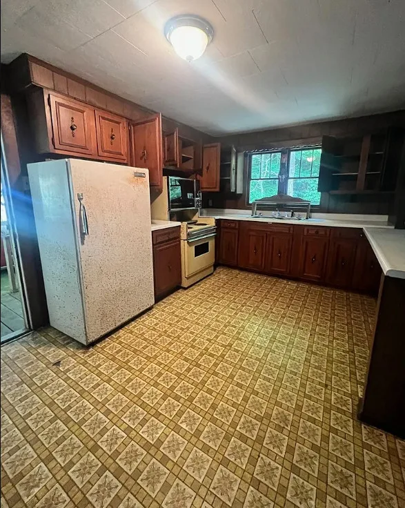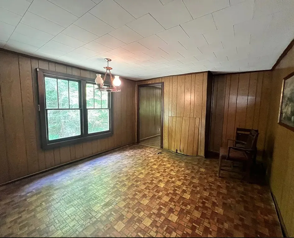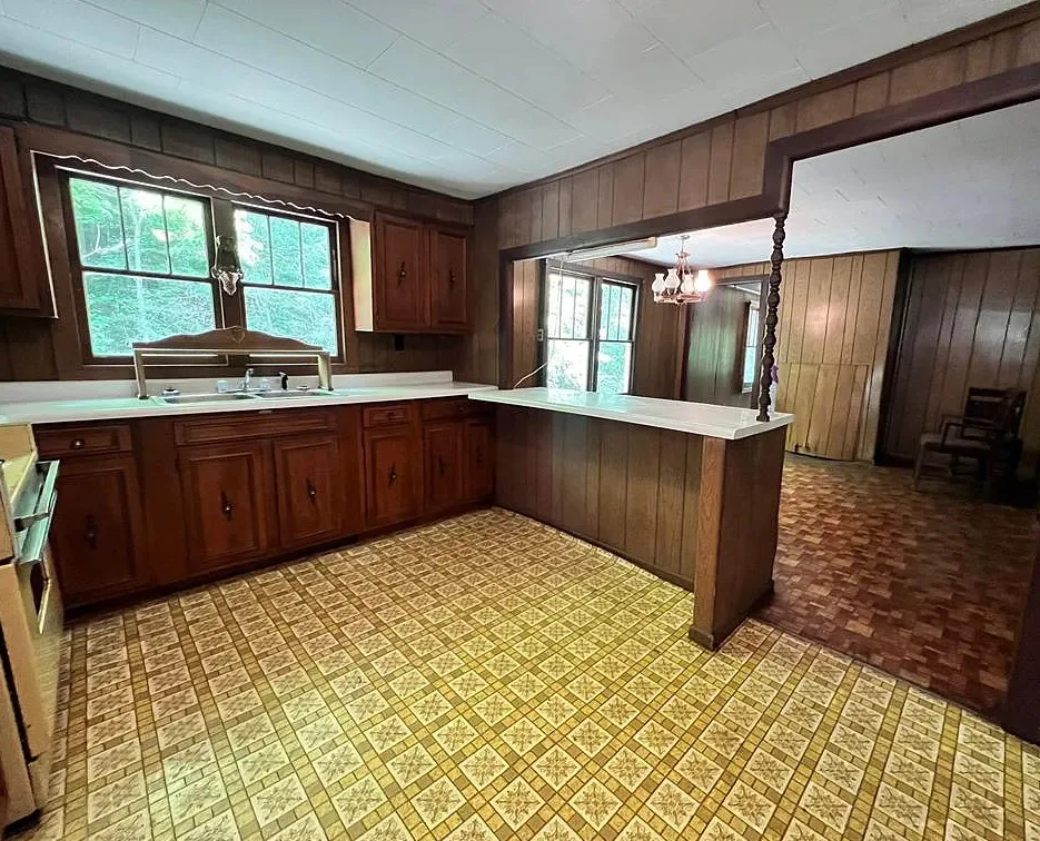 This property offers a unique opportunity to own a piece of Kentucky's serene countryside. Situated on 45 acres in Jenkins, this 1940-built home is ready for your personal touch. The house features two bedrooms, one bathroom, and a spacious kitchen, all within 996 square feet of living space. Additional amenities include a covered front porch, a two-car attached carport, and a large barn suitable for storage or starting your own hobby farm. The expansive land provides ample space for gardening, hunting, and other outdoor activities, making it an ideal retreat for nature enthusiasts. With its potential for customization, this fixer-upper is perfect for those looking to create their dream home in a peaceful setting.