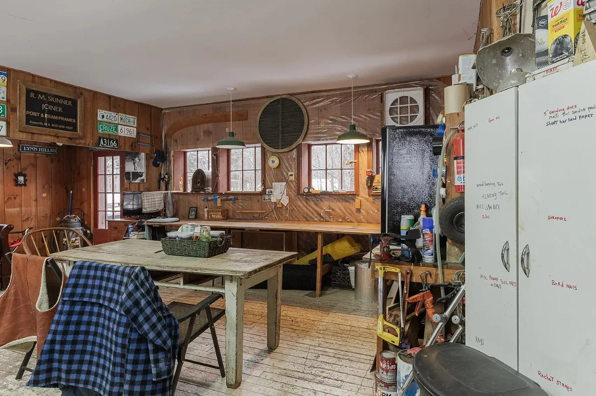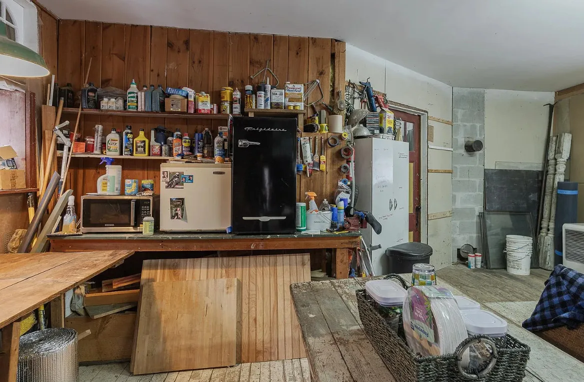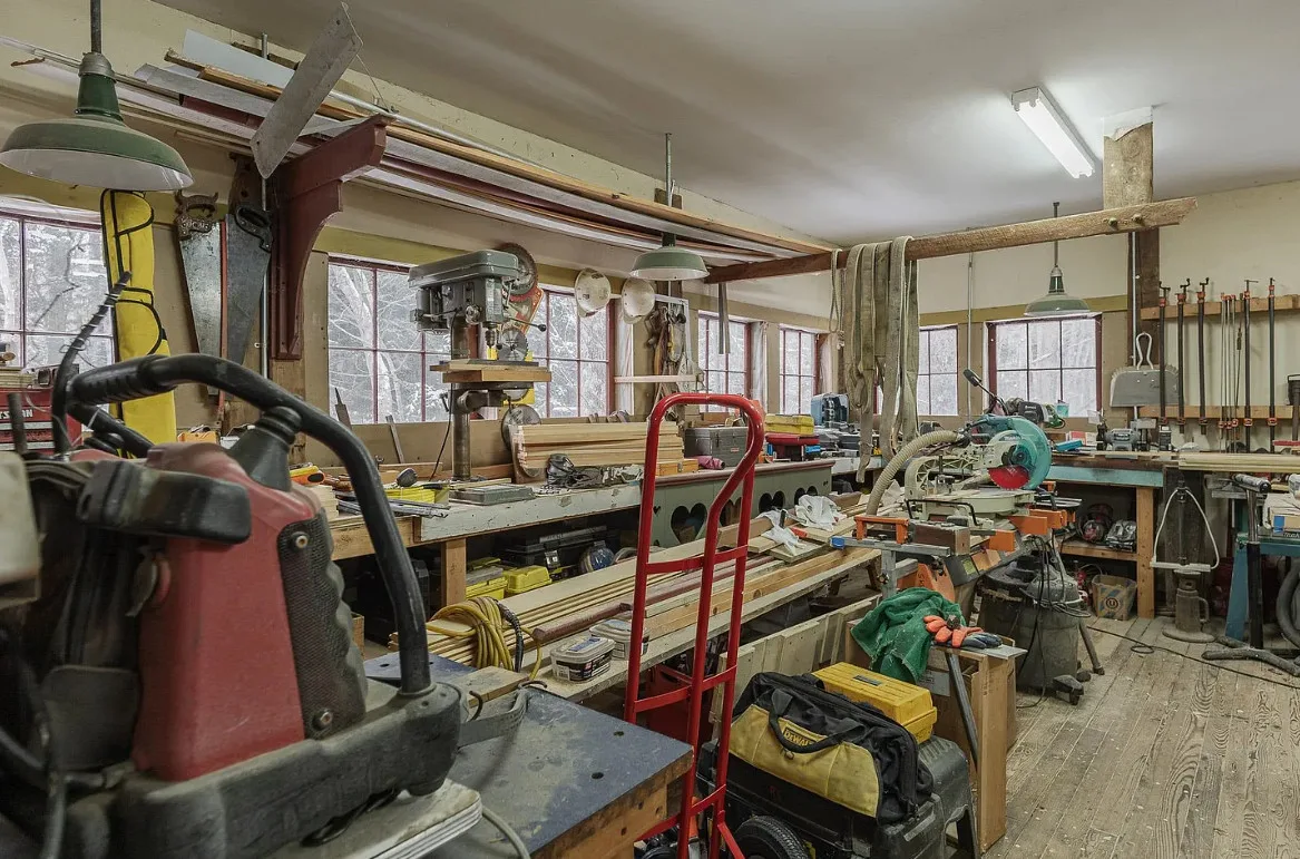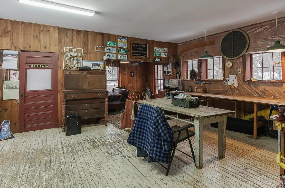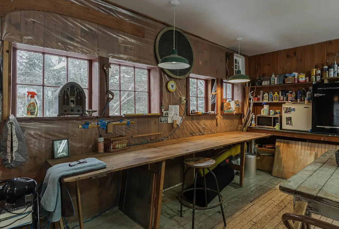 Versatile Interior:The main room features windows overlooking the river, providing ample natural light and a tranquil atmosphere. An additional large room is currently set up as a woodshop, complete with several workspaces and a dust collector, which can remain with the property.