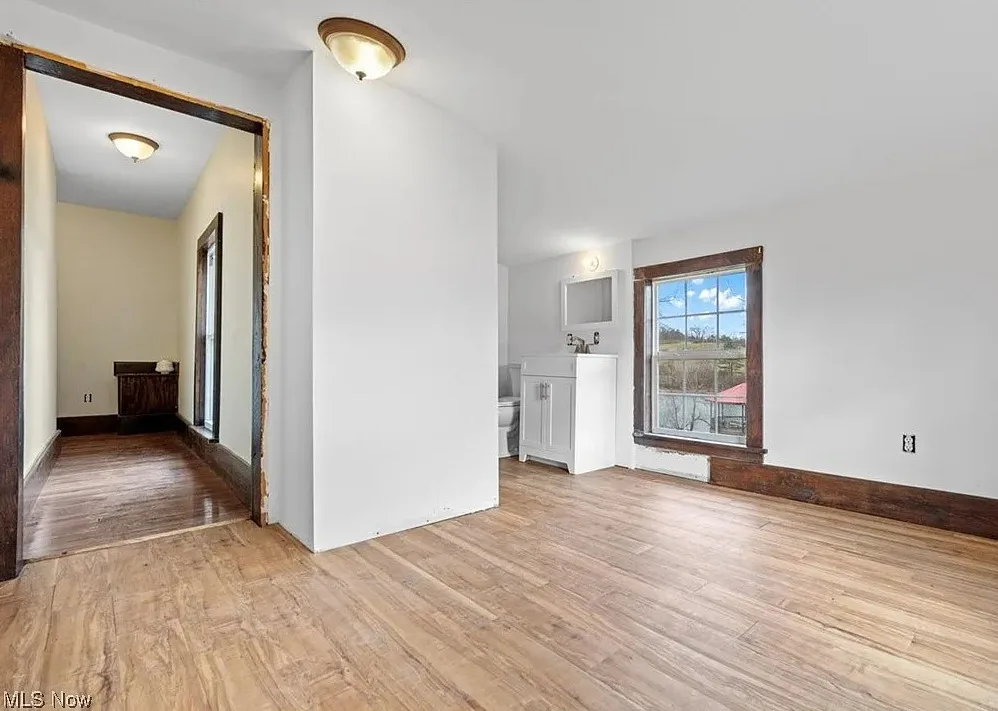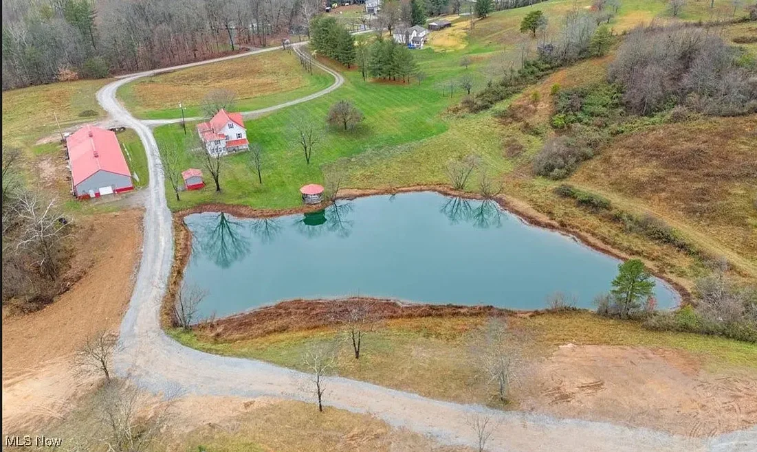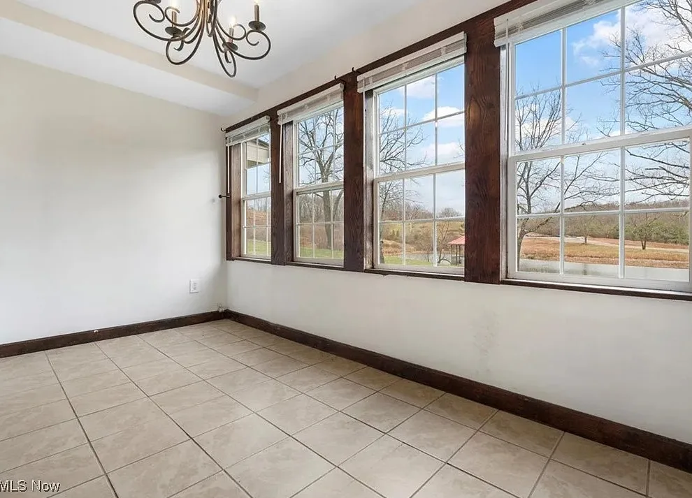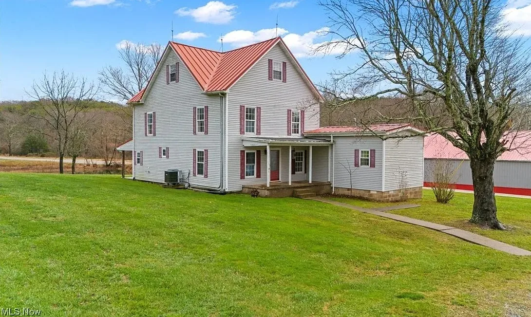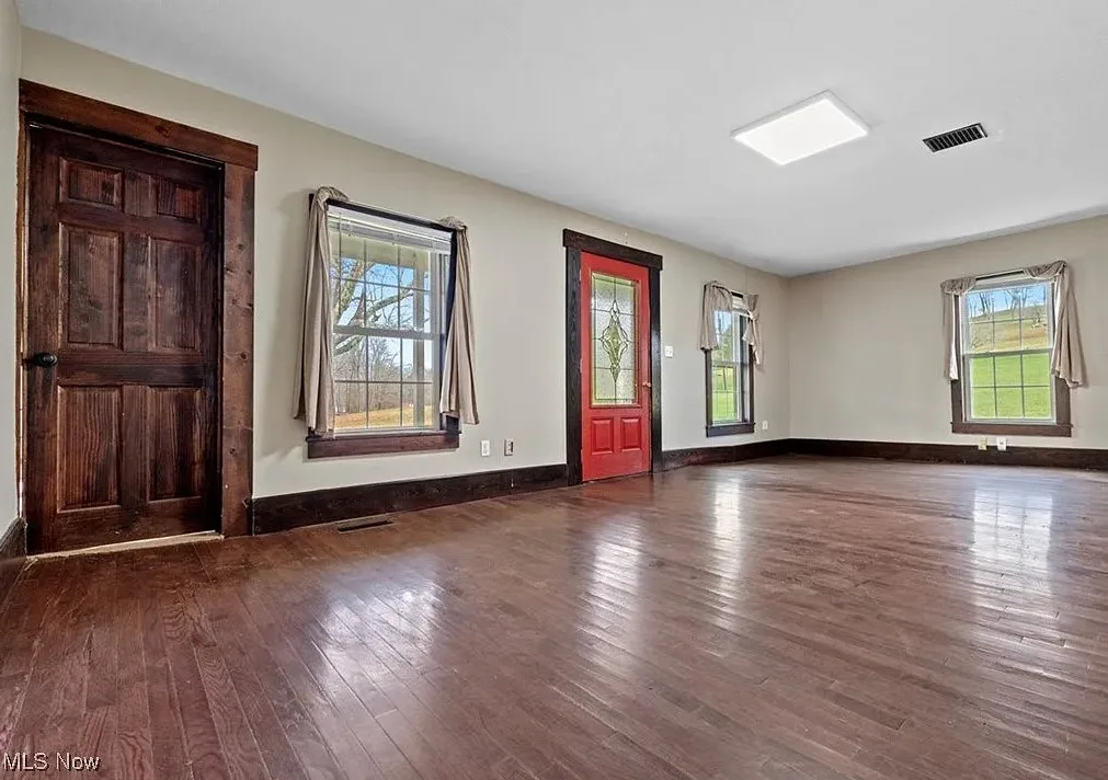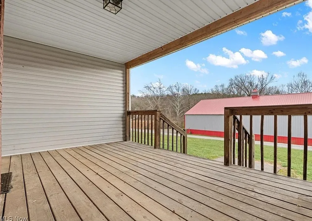 Such a pretty setting! Love that big pond! The outbuilding looks huge! The house was built in 1947. It is located on 5.96 acres in Coolville, Ohio. The house is kind of like a blank slate. Looks to be in good condition. There is a covered front porch, some wood floors, wide baseboards, spacious kitchen and unpainted millwork. The large outbuilding was being used as a workshop. Four bedrooms, three bathrooms and 2,836 square feet. $350,000