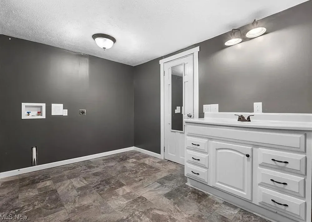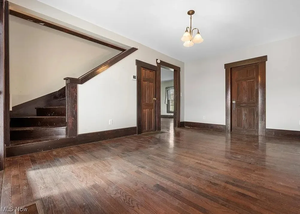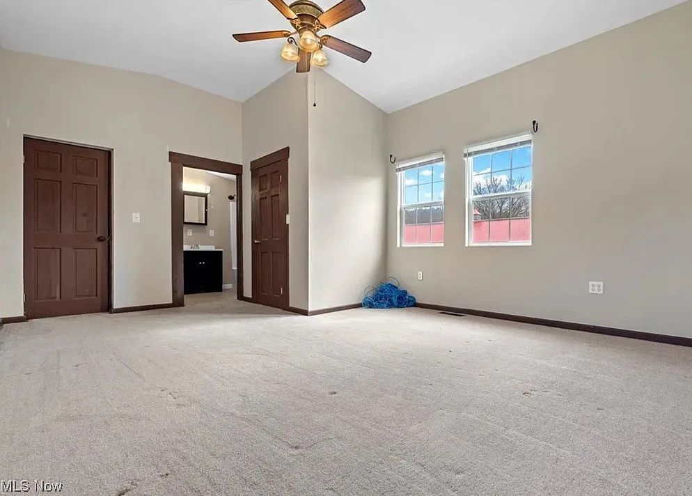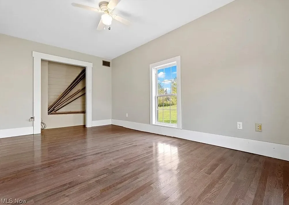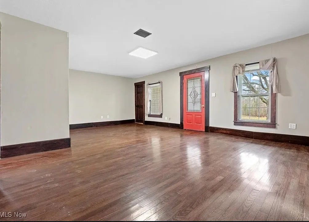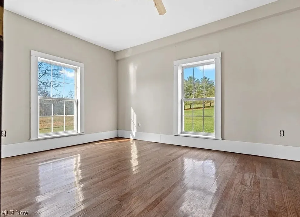 Such a pretty setting! Love that big pond! The outbuilding looks huge! The house was built in 1947. It is located on 5.96 acres in Coolville, Ohio. The house is kind of like a blank slate. Looks to be in good condition. There is a covered front porch, some wood floors, wide baseboards, spacious kitchen and unpainted millwork. The large outbuilding was being used as a workshop. Four bedrooms, three bathrooms and 2,836 square feet. $350,000