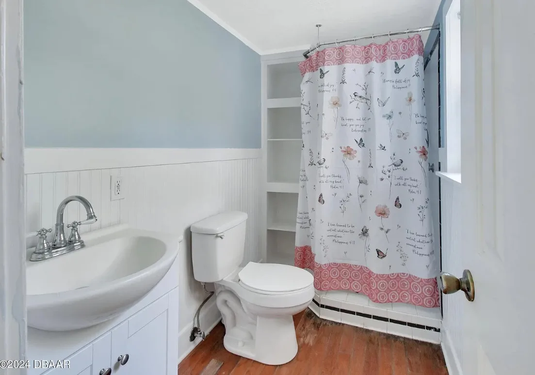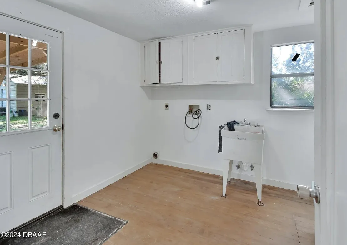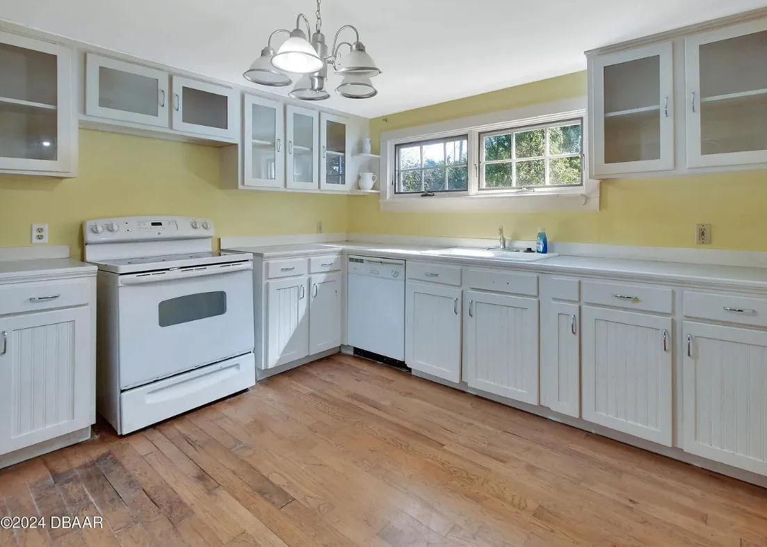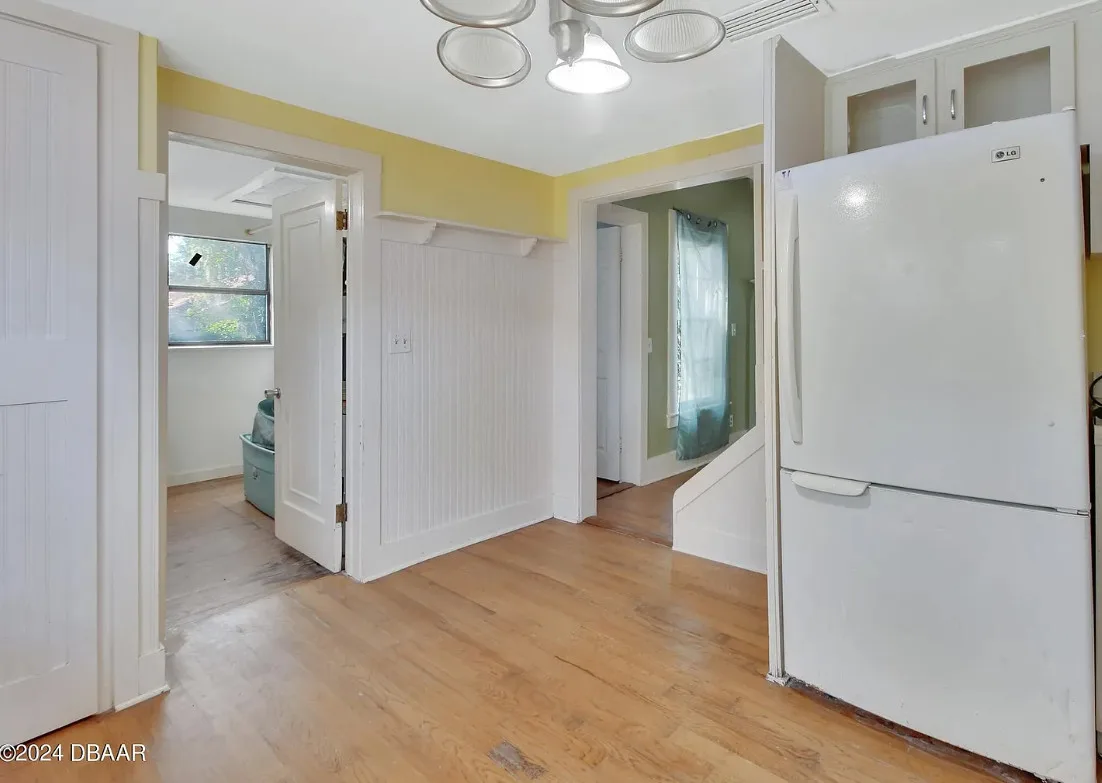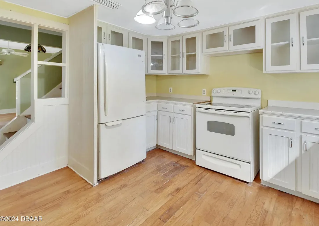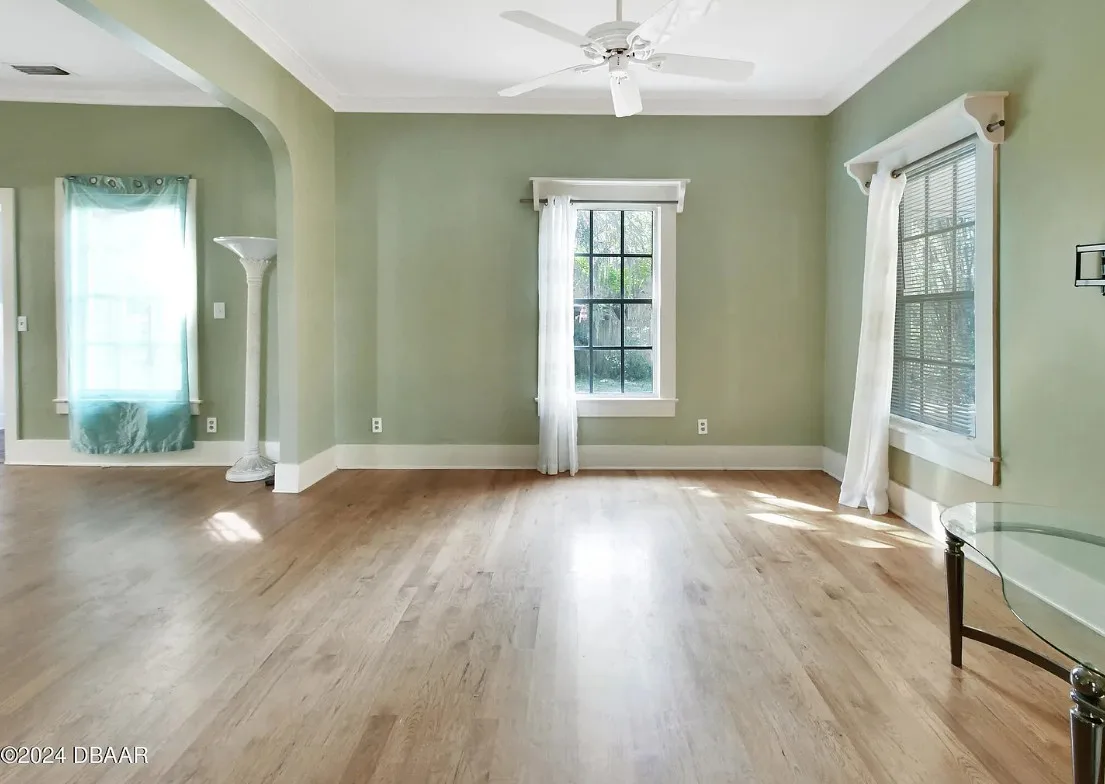 This is a pretty house in Florida! Love the big old trees! The house was built in 1924. It is located on .58 acre in Orange City, Florida. The house features a covered front porch, brick walkway, wood floors, a lot of natural light, wide baseboards and a wood stove. There is a large fenced in backyard. The property has a detached workshop with electric and water. Two bedrooms, three bathrooms and 1,324 square feet. $289,900