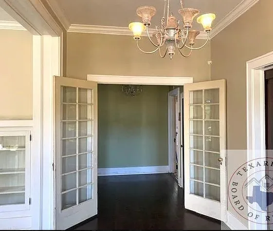 Love the sinks in this house! The pocket doors and chandeliers are nice too. The house was built in 1912. It is located on .29 acre in Texarkana, Arkansas. The house features a portico, porte cochere, wood floors, pocket doors, french doors, crystal chandelier, built-ins, crown moulding and chair rails. The house clearly needs work, but price seems reasonable. Love the brick street out front! Three bedrooms, four bathrooms and 3,208 square feet. $149,900