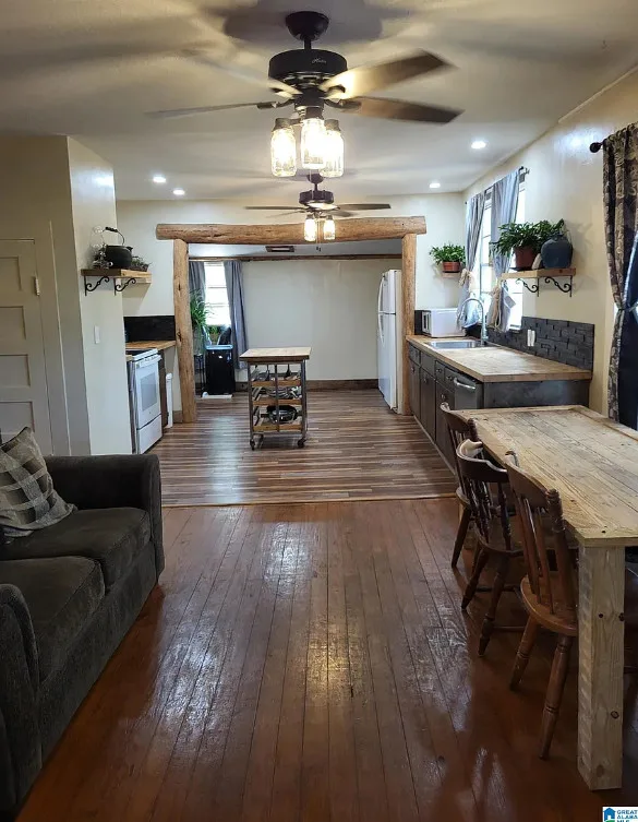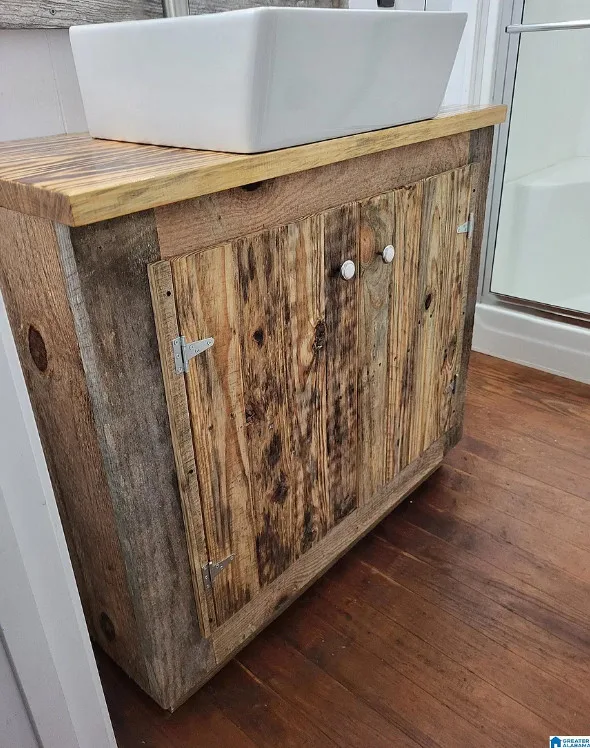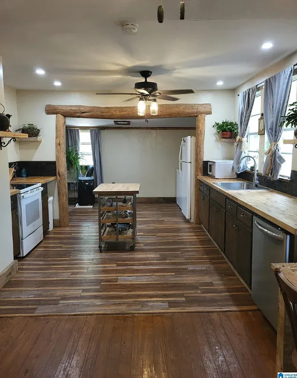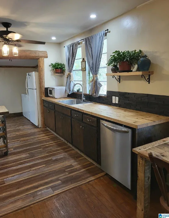 Goats, a garden and a pond! I like that big outbuilding too! The house was built in 1935. It is located on 18 acres in Phil Campbell, Alabama. The house features a covered front porch, some wood floors, baseboards and a large back deck. There is a fenced in area for the sellers goats, a small pond and a large area with gardens. The property has a detached building with RV carport area. Four bedrooms, two bathrooms and 1,849 square feet. $299,900