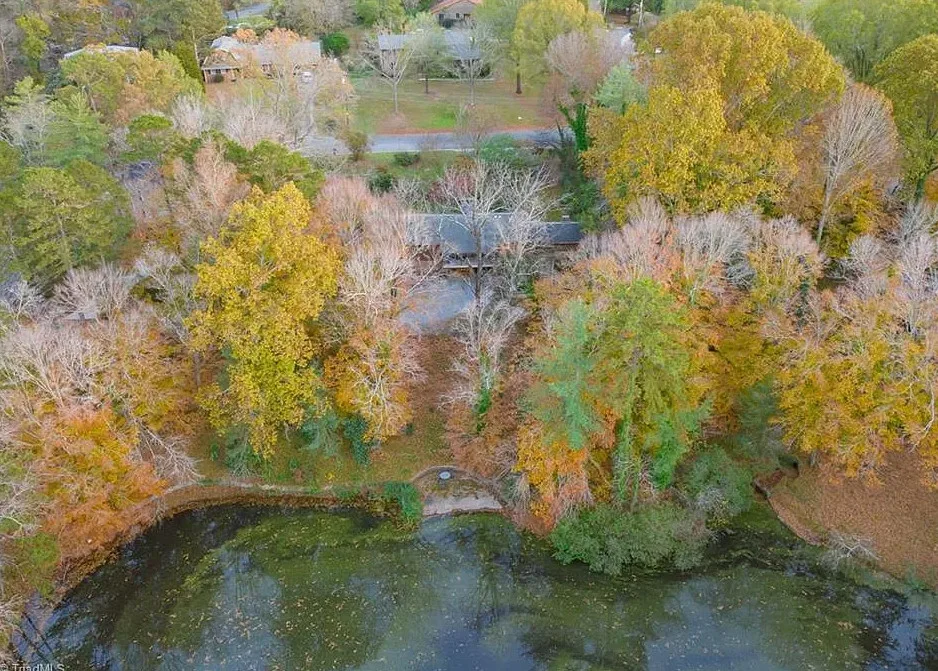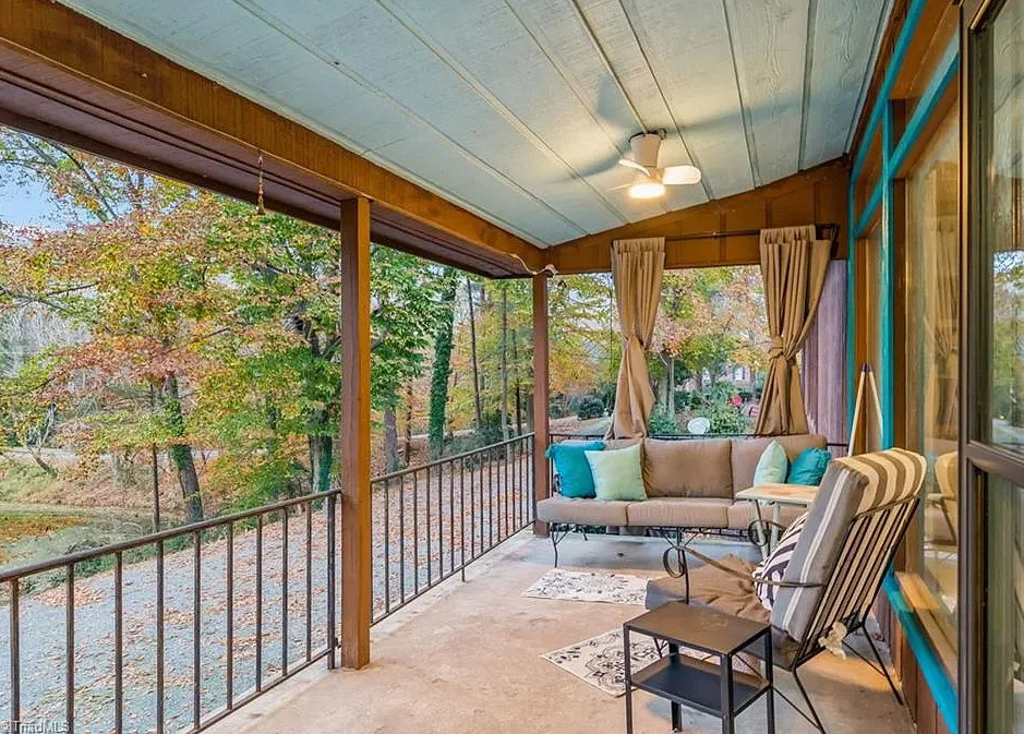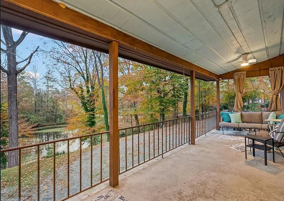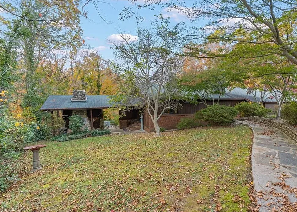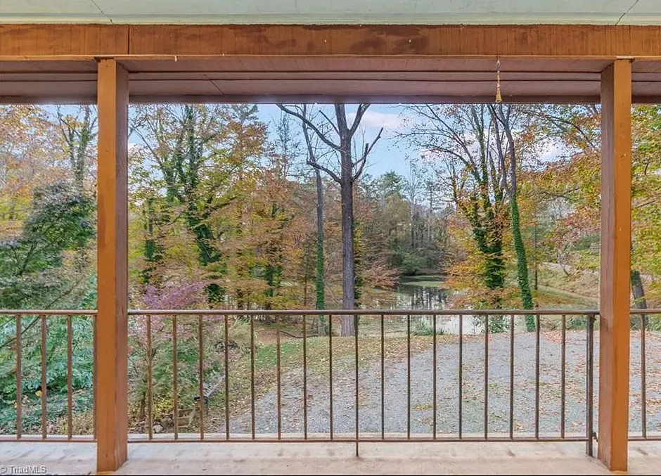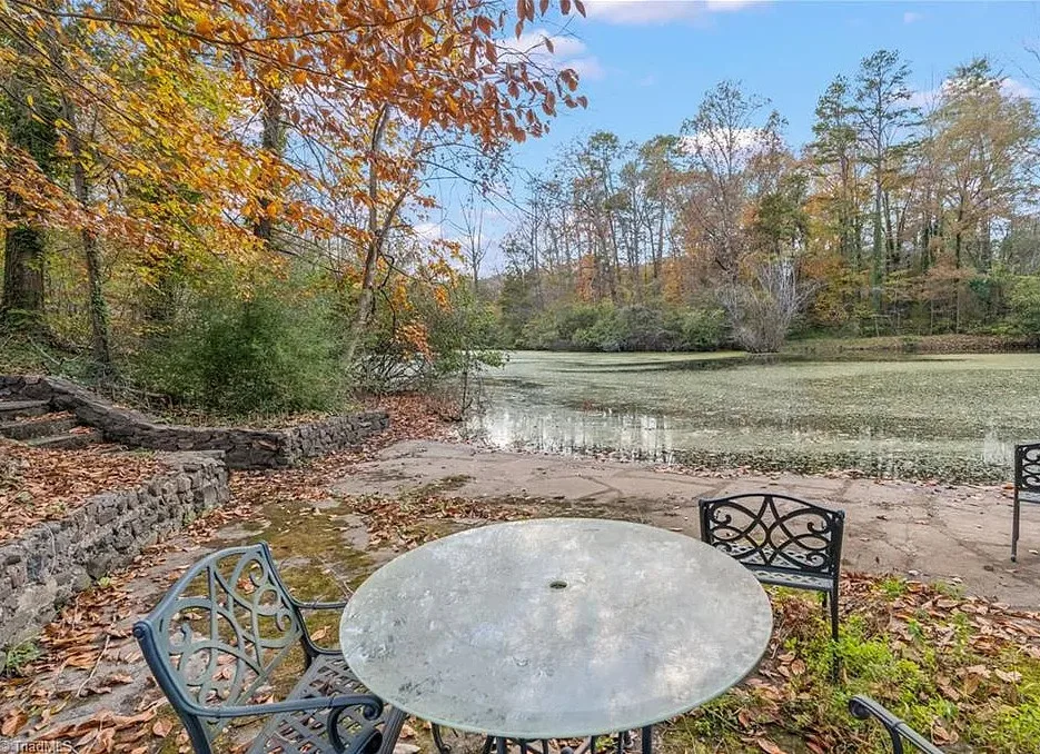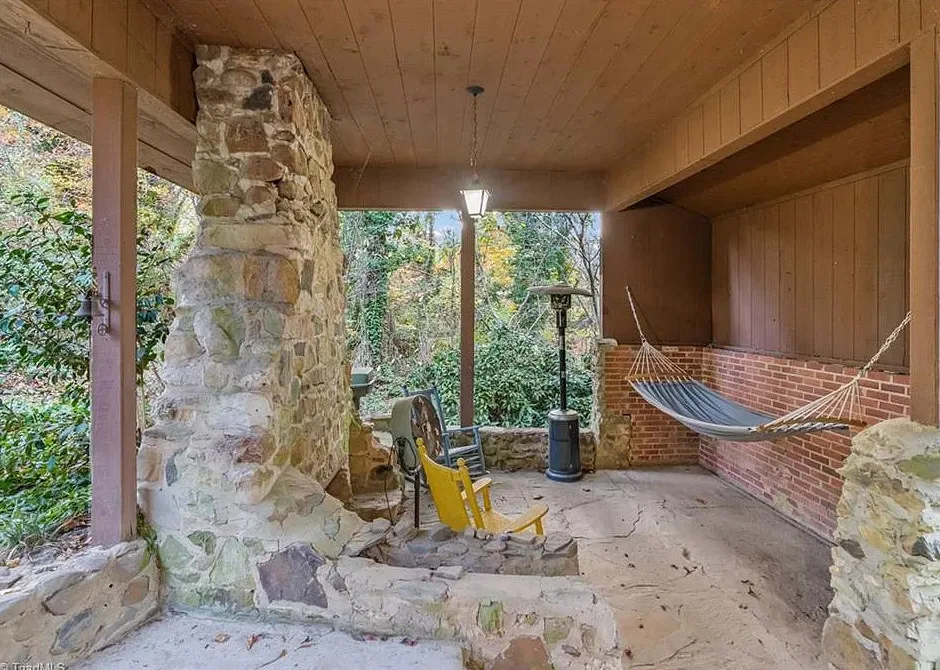 In love with that backyard space! What a great area to entertain guests! The house was built in 1955. It is located on 1.51 acres in Lexington, North Carolina. The house features a covered front porch, vaulted ceiling, exposed beams, built-ins, spacious kitchen and a lot of windows! There is a large back patio with an outdoor fireplace. There are stone walkways leading down to the pond where you will find another patio. Two bedrooms, two bathrooms and 2,333 square feet. $349,900