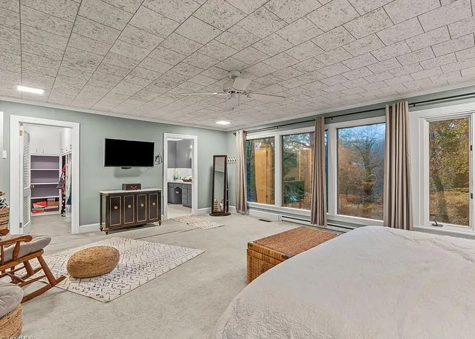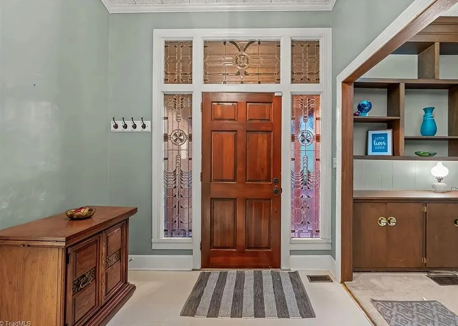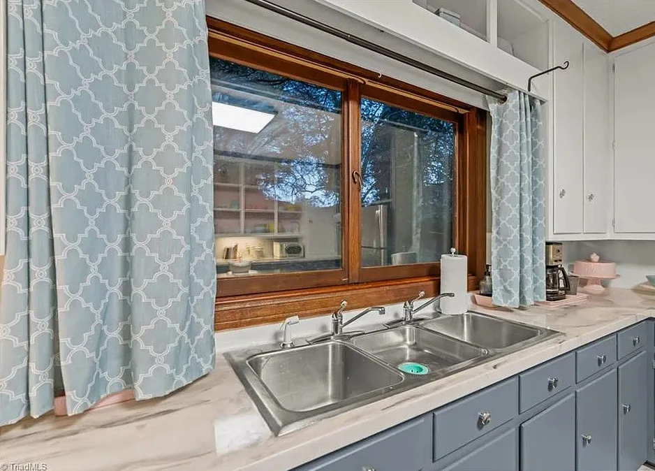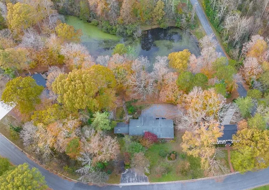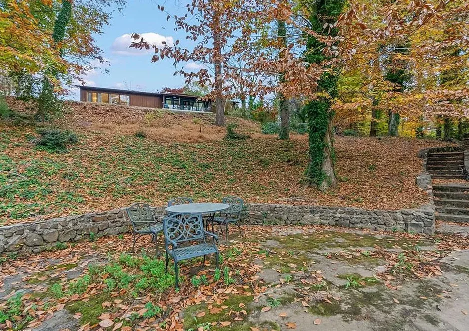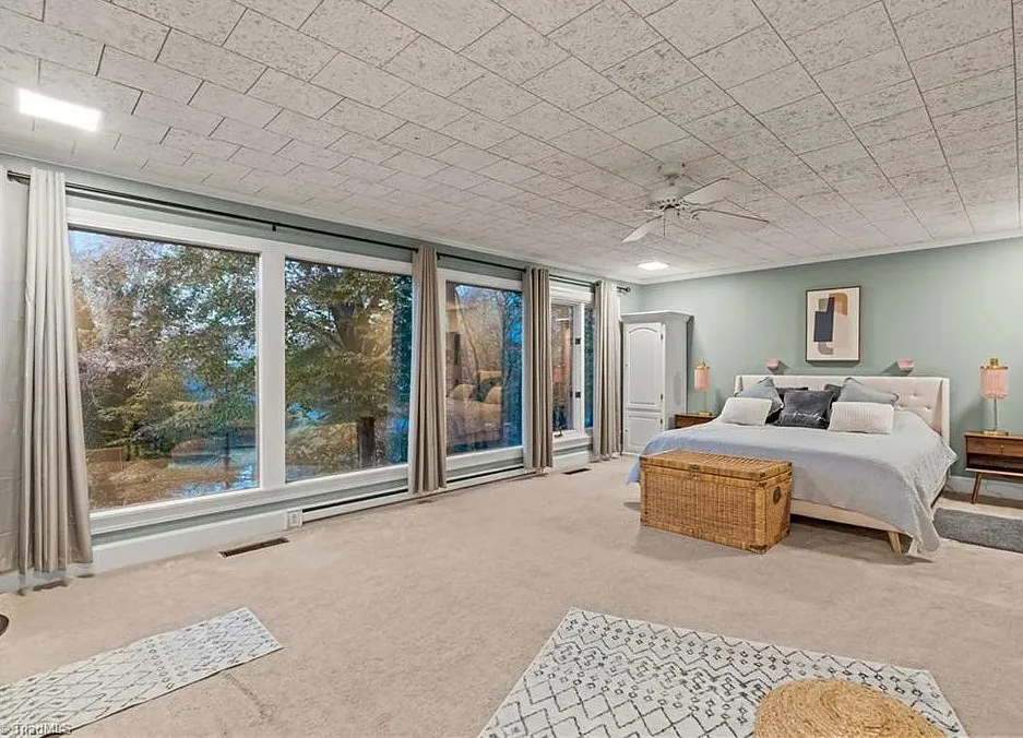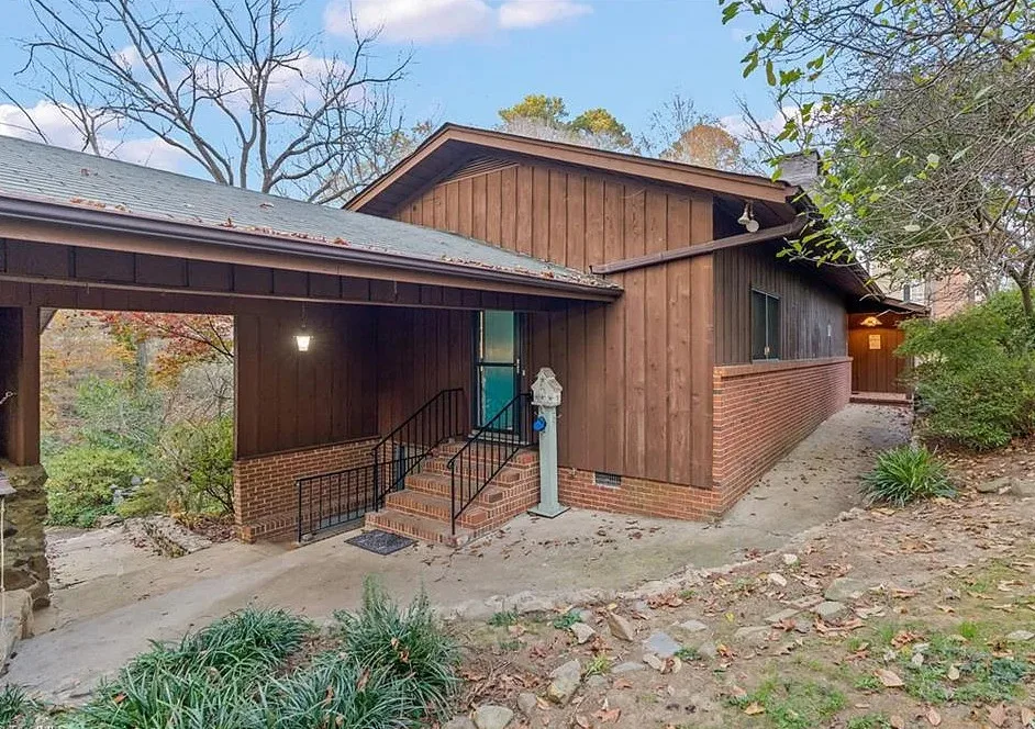 In love with that backyard space! What a great area to entertain guests! The house was built in 1955. It is located on 1.51 acres in Lexington, North Carolina. The house features a covered front porch, vaulted ceiling, exposed beams, built-ins, spacious kitchen and a lot of windows! There is a large back patio with an outdoor fireplace. There are stone walkways leading down to the pond where you will find another patio. Two bedrooms, two bathrooms and 2,333 square feet. $349,900
