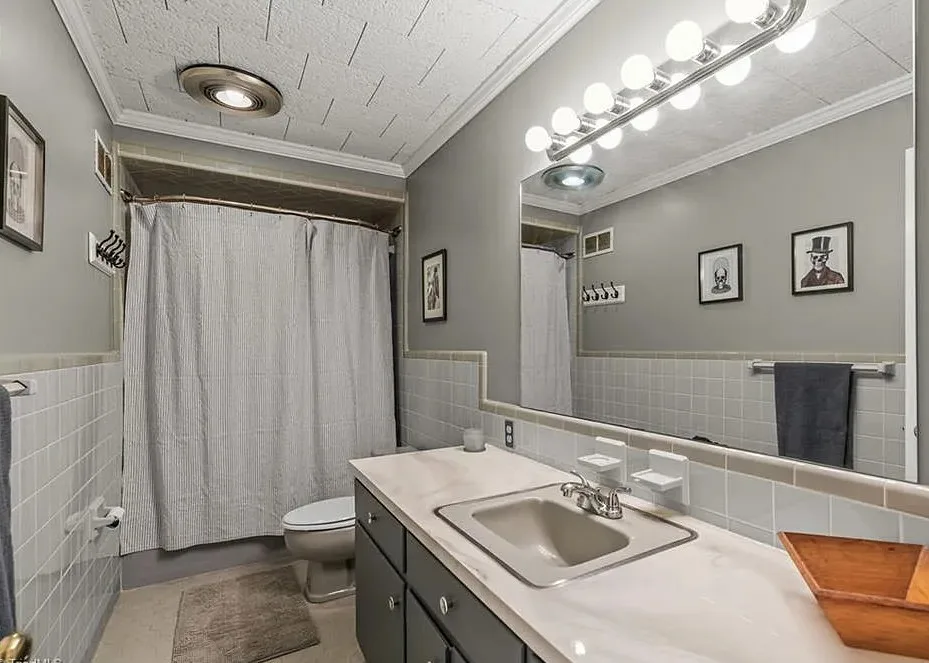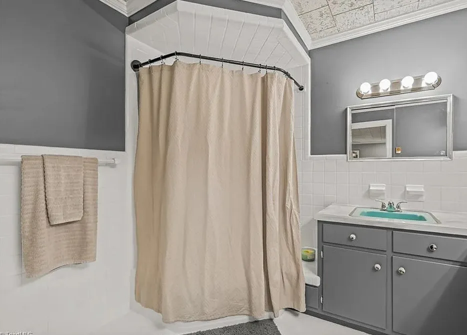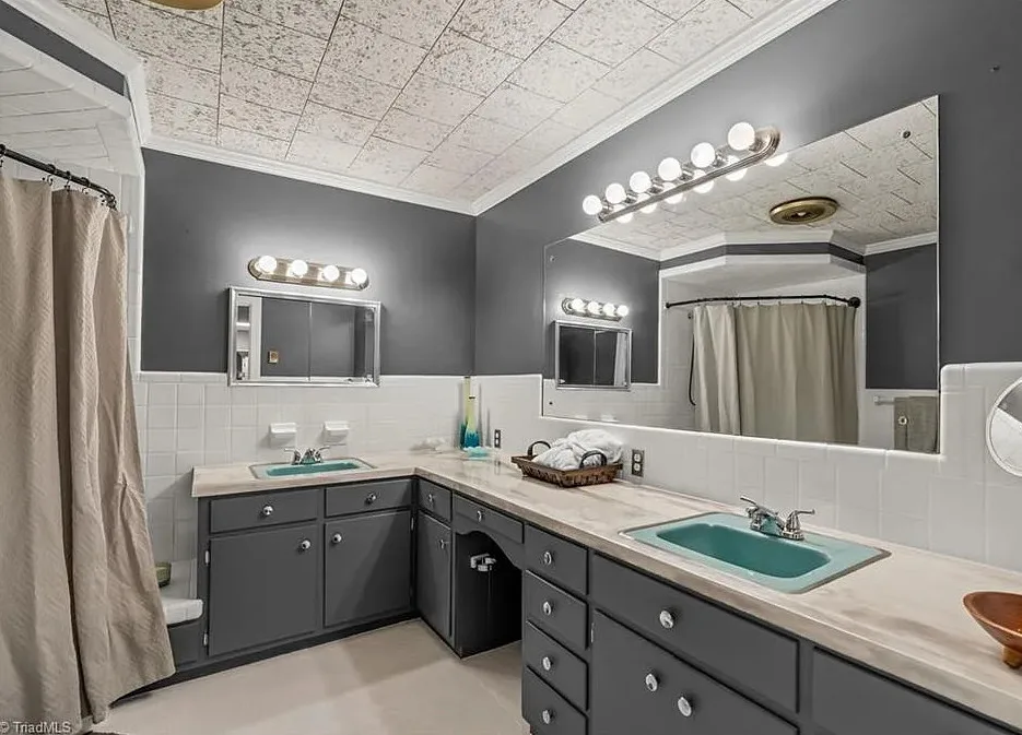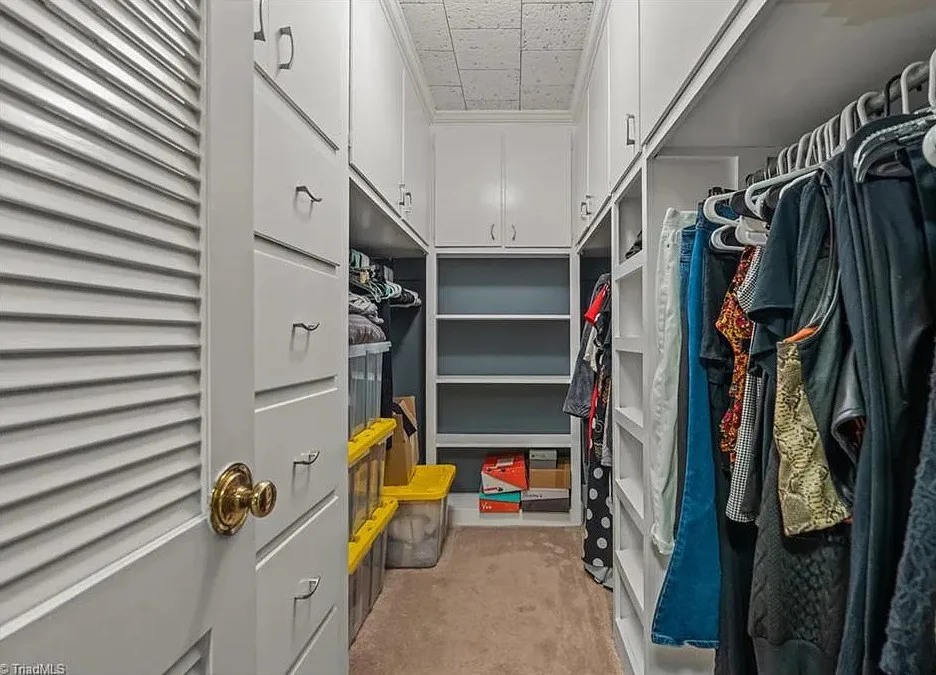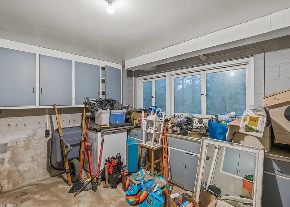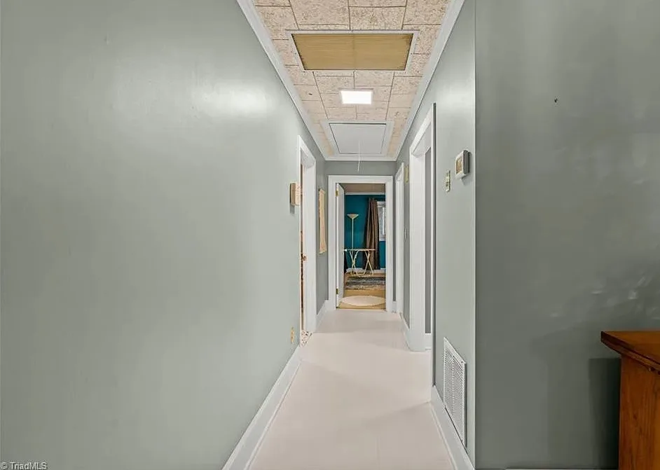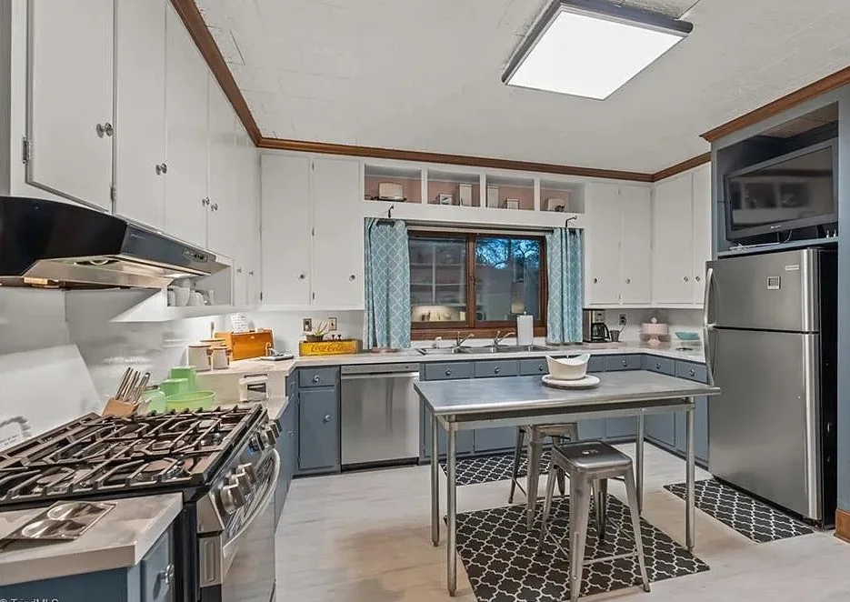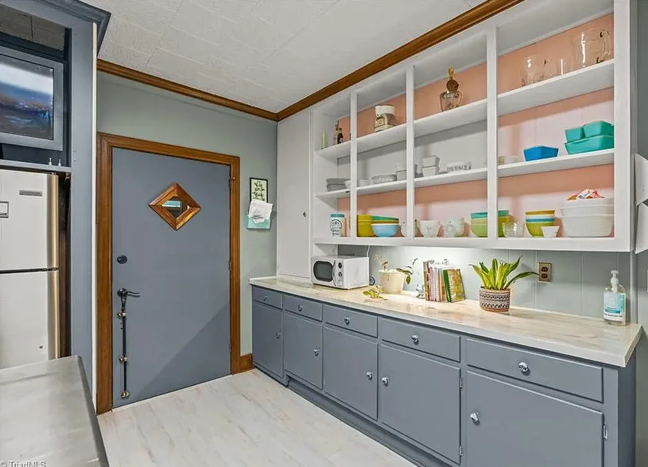 In love with that backyard space! What a great area to entertain guests! The house was built in 1955. It is located on 1.51 acres in Lexington, North Carolina. The house features a covered front porch, vaulted ceiling, exposed beams, built-ins, spacious kitchen and a lot of windows! There is a large back patio with an outdoor fireplace. There are stone walkways leading down to the pond where you will find another patio. Two bedrooms, two bathrooms and 2,333 square feet. $349,900
