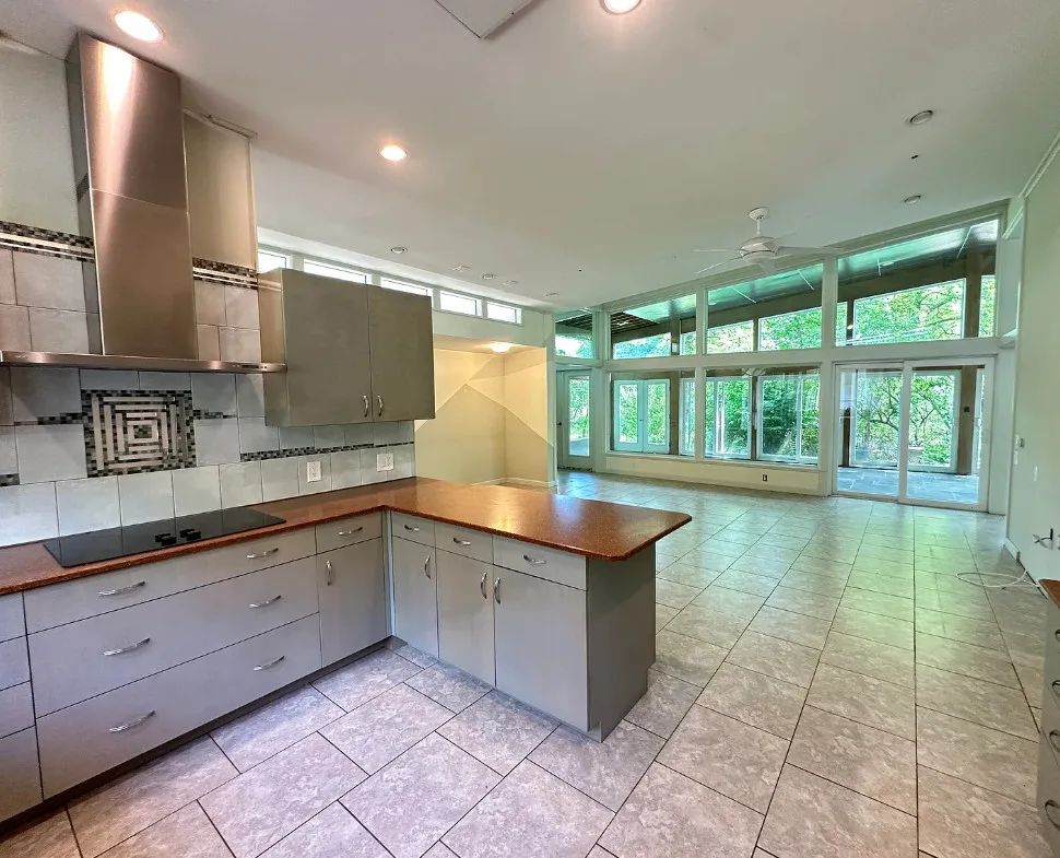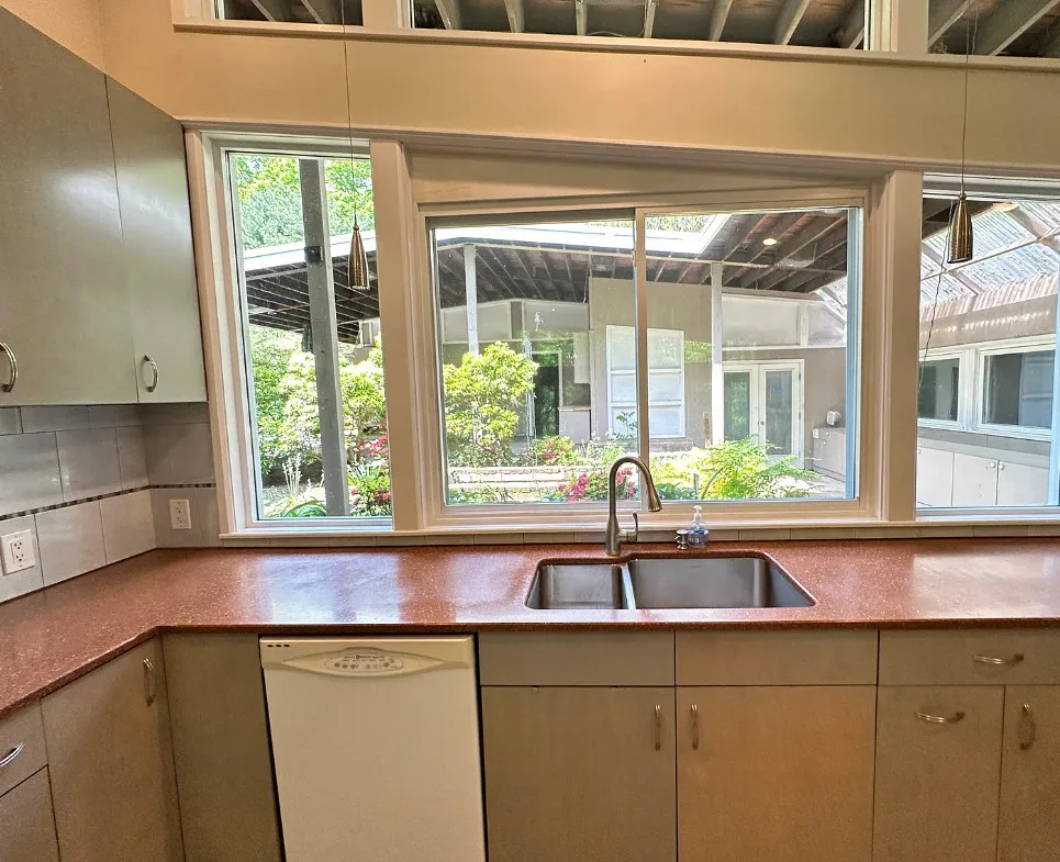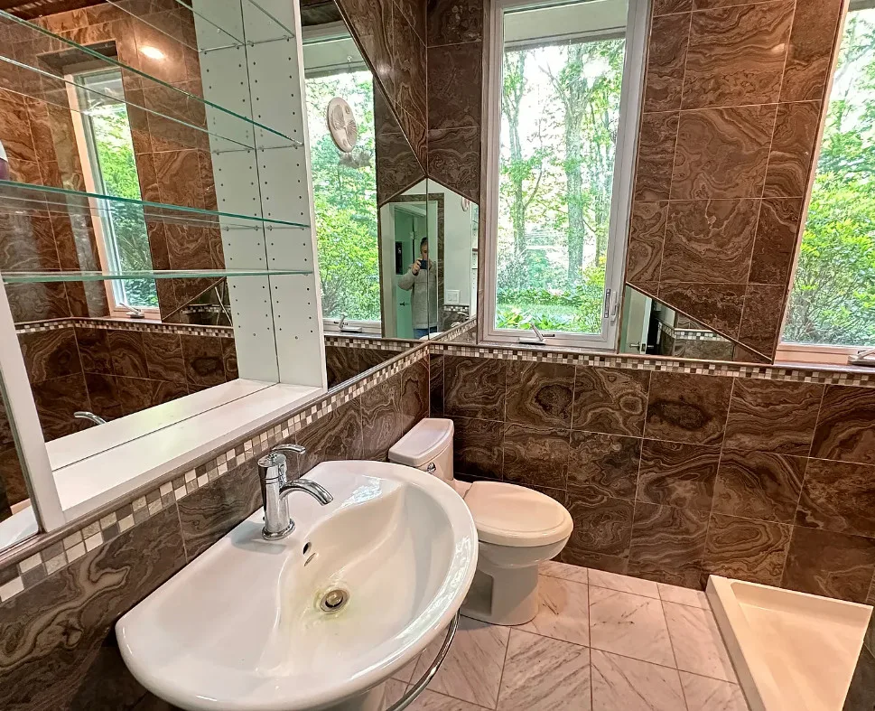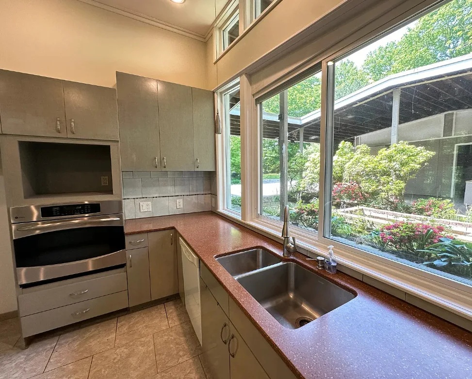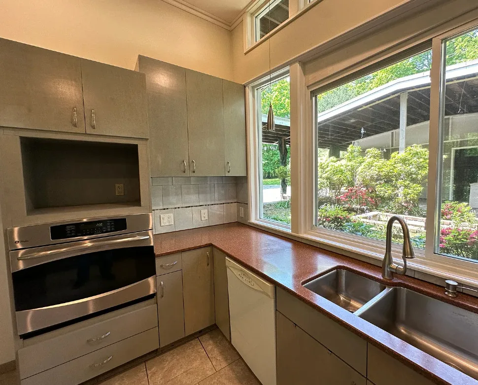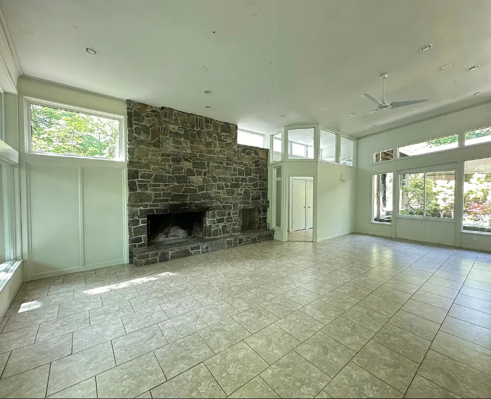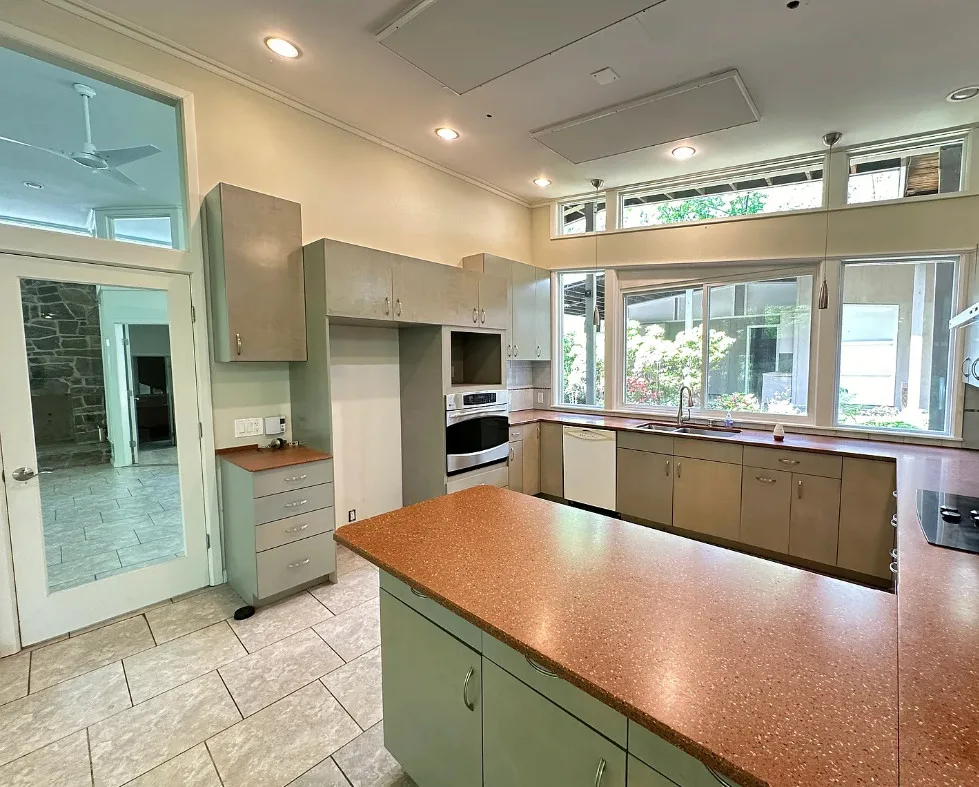 In love with that courtyard! The house was built in 1954. It is located on 10.53 acres in Woodbridge, Connecticut. I’m not particularly a fan of the flooring they used throughout, or some of the updates. But one thing I love about min-century modern houses is how they make you feel like you are one with nature. So visible through the windows and with the landscaping and the courtyards. Four bedrooms, five bathrooms and 3,224 square feet. $514,900