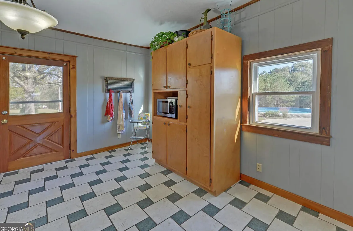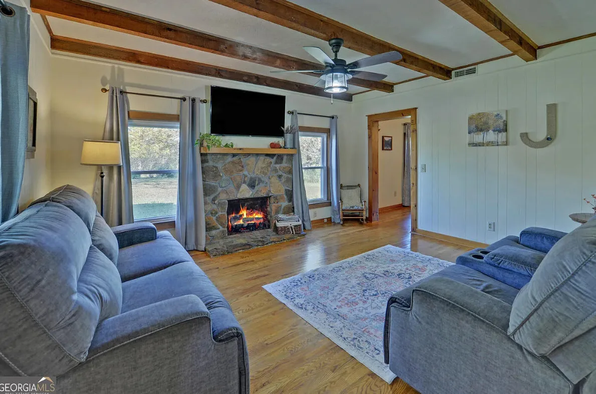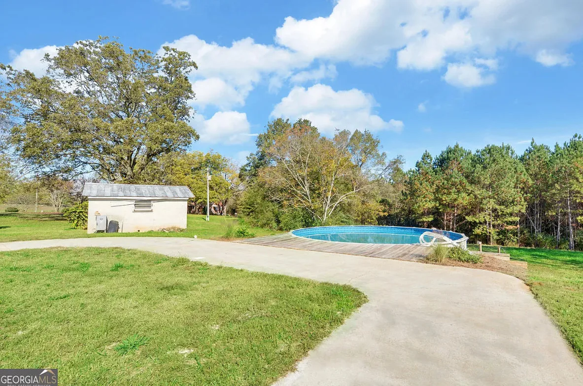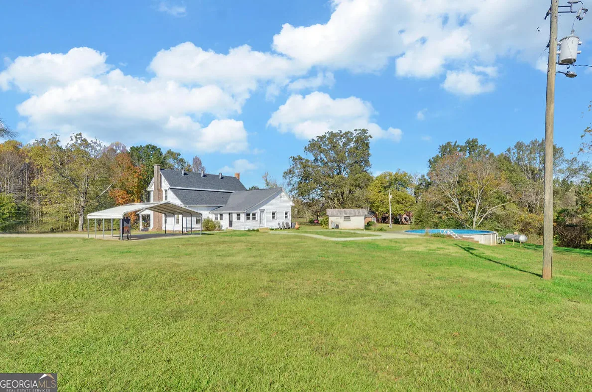 This house and property has a lot to offer! Nicely maintained! That’s a huge garage/workshop. Even has a little pool and chicken coop. The house was built in 1870. It is located on 3.24 acres in Martin, Georgia. The house features a covered front porch, wood floors, exposed beams, baseboards, crown moulding, sunroom and knotty pine. There is a huge detached garage with electric. The above ground pool isn’t that bad. Three bedrooms, two bathrooms and 2,240 square feet. $389,900
