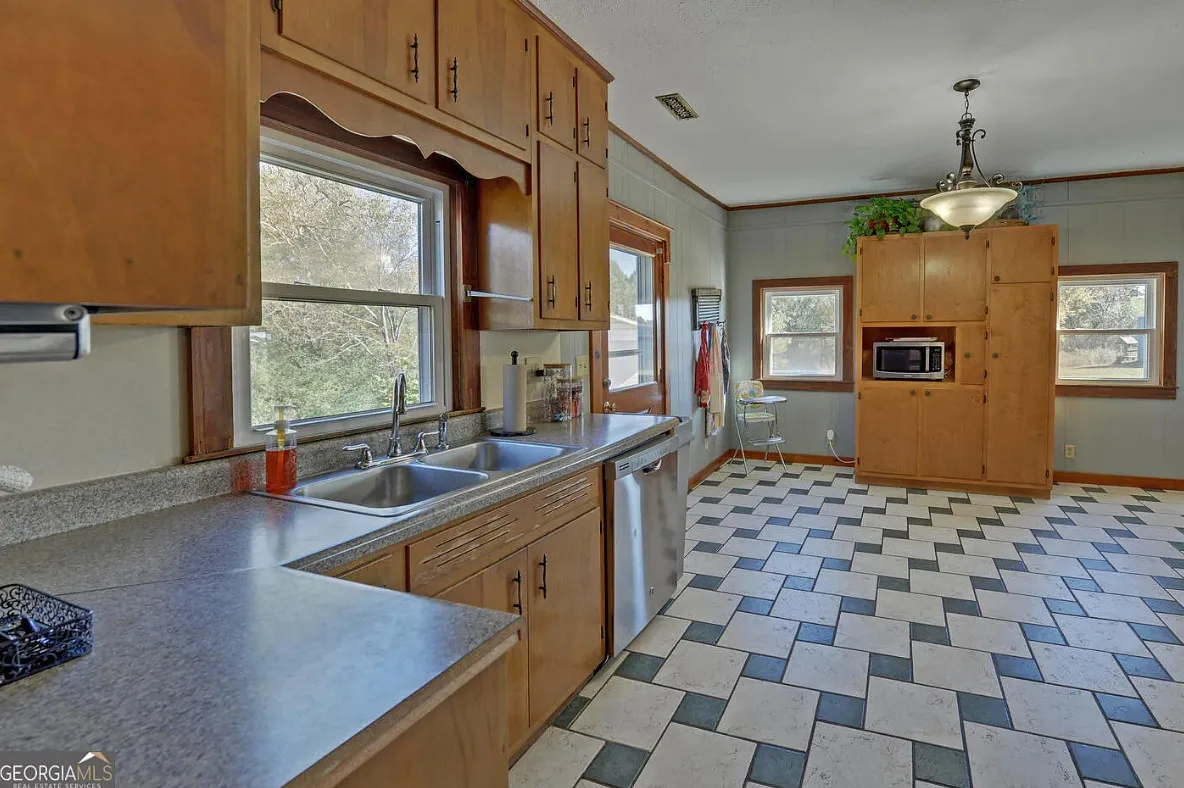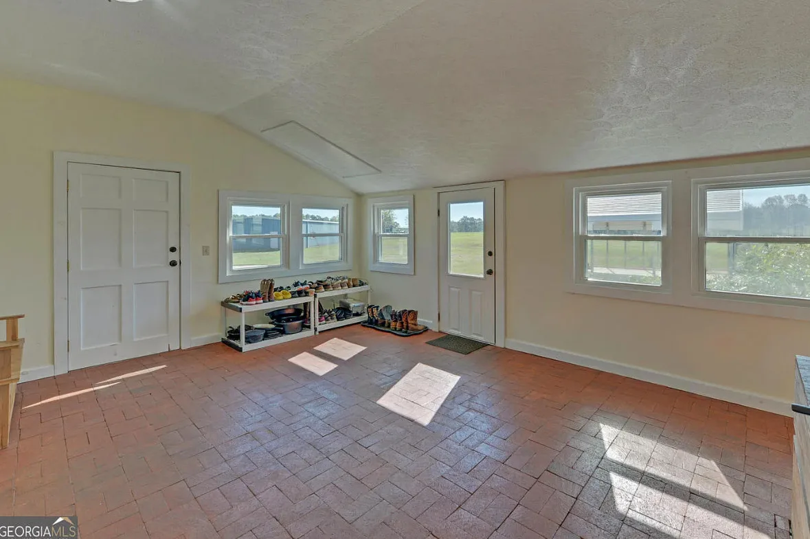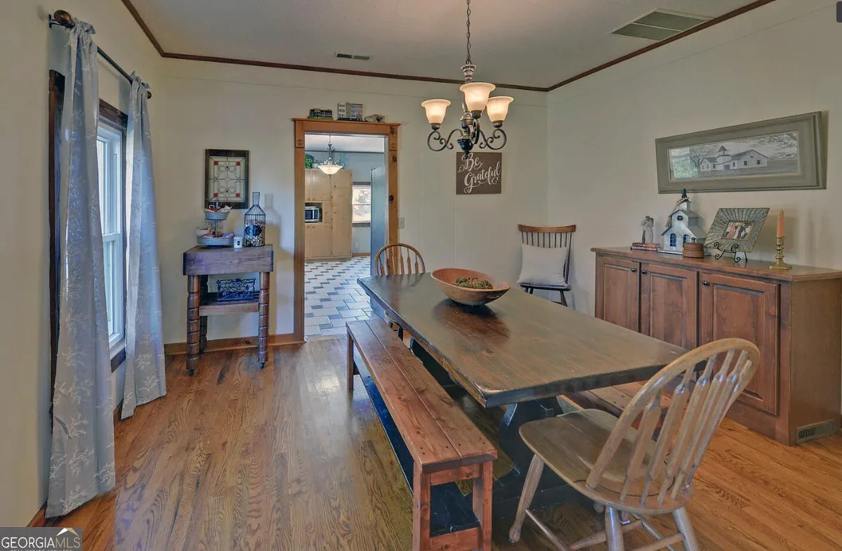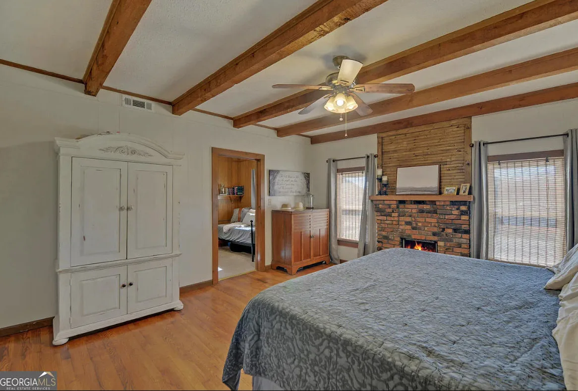 This house and property has a lot to offer! Nicely maintained! That’s a huge garage/workshop. Even has a little pool and chicken coop. The house was built in 1870. It is located on 3.24 acres in Martin, Georgia. The house features a covered front porch, wood floors, exposed beams, baseboards, crown moulding, sunroom and knotty pine. There is a huge detached garage with electric. The above ground pool isn’t that bad. Three bedrooms, two bathrooms and 2,240 square feet. $389,900