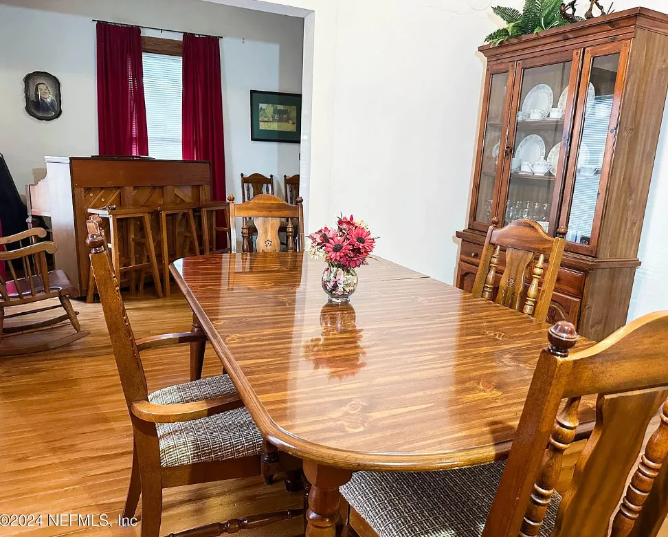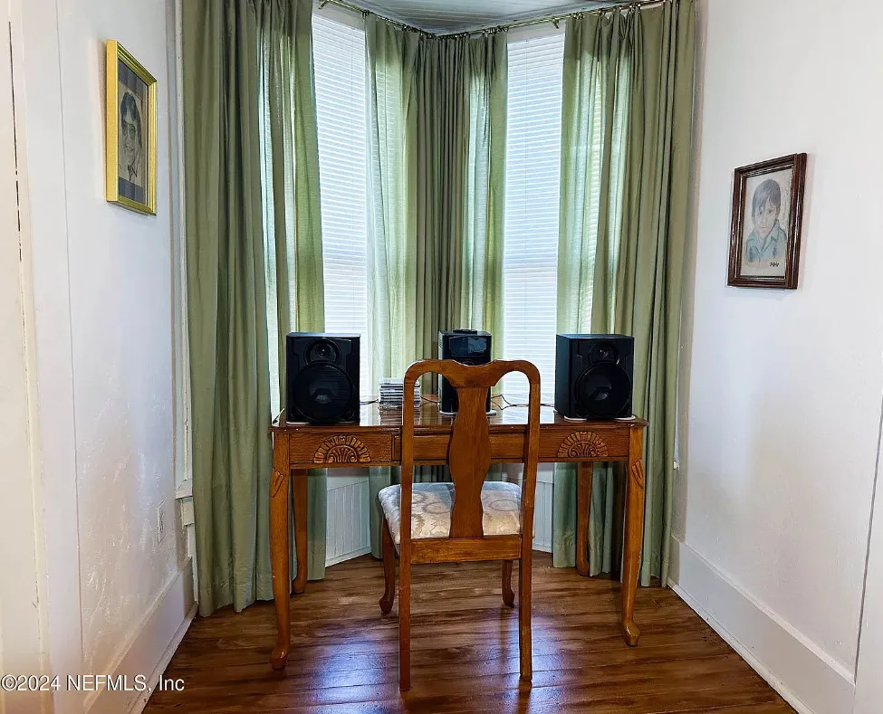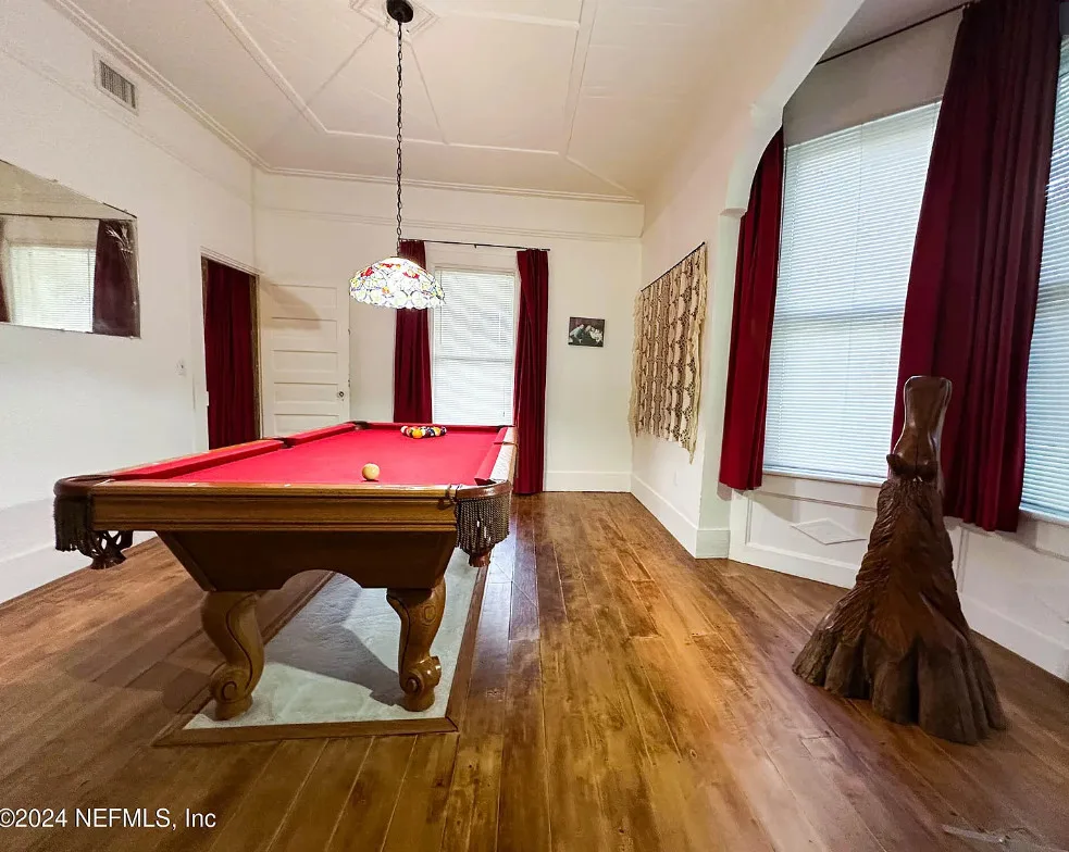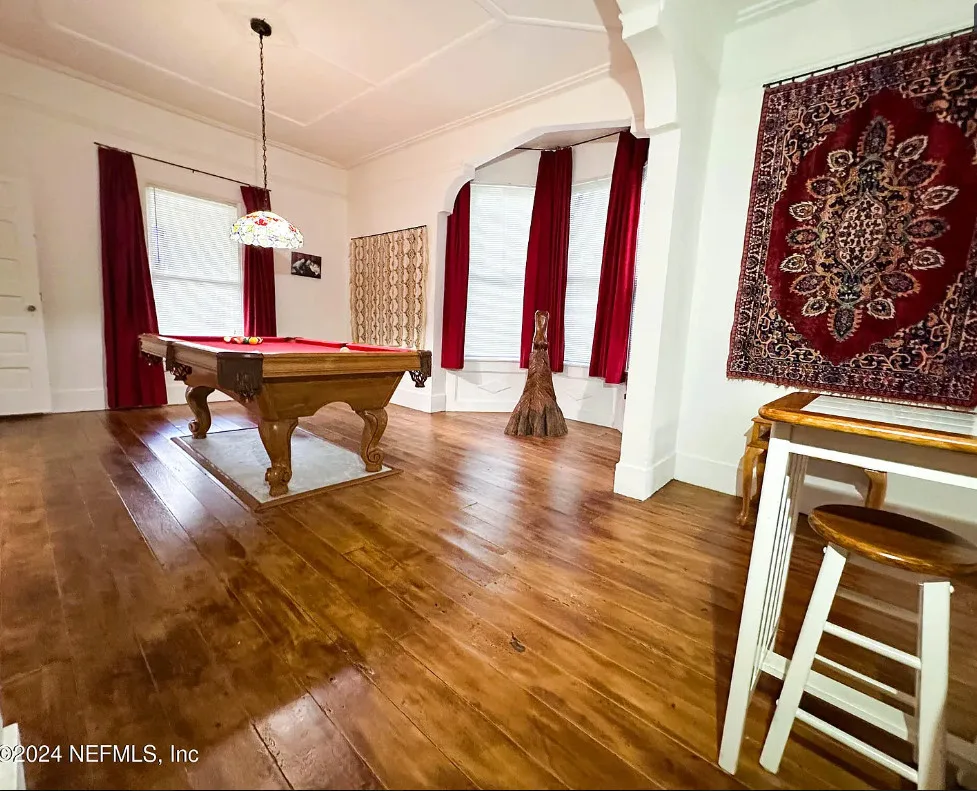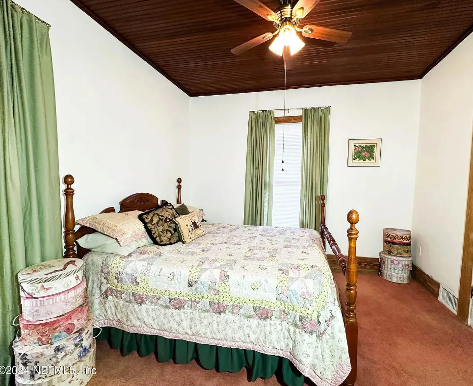 This house has some nice details! The street looks quiet. The house was built in 1930. It is located in Starke, Florida. The house features a covered front porch, wood floors, nice staircase, wood ceiling, crown moulding, tall windows and baseboards. There is a fenced in backyard with a storage shed. Four bedrooms, two bathrooms and 2,008 square feet. $249,900