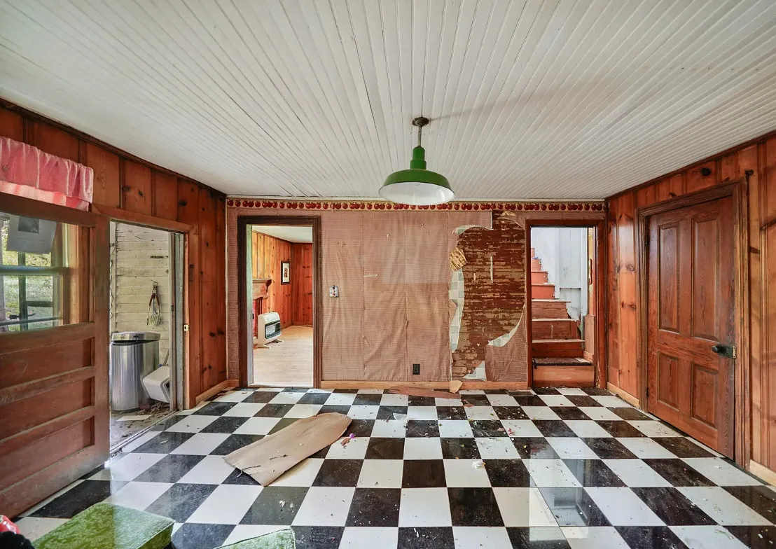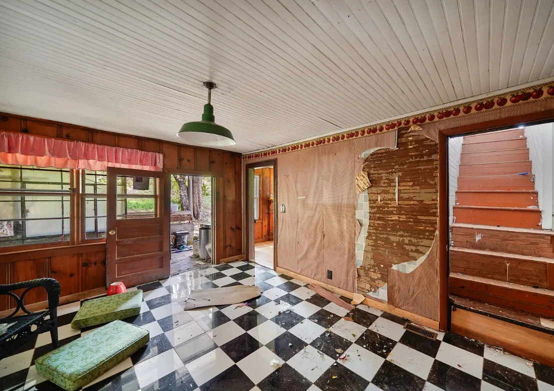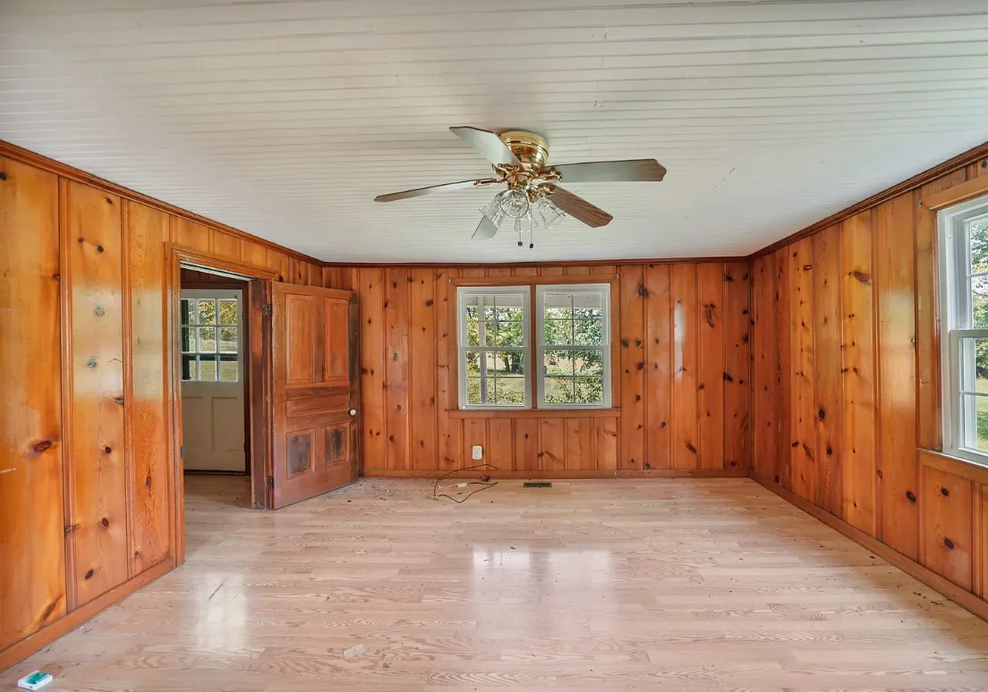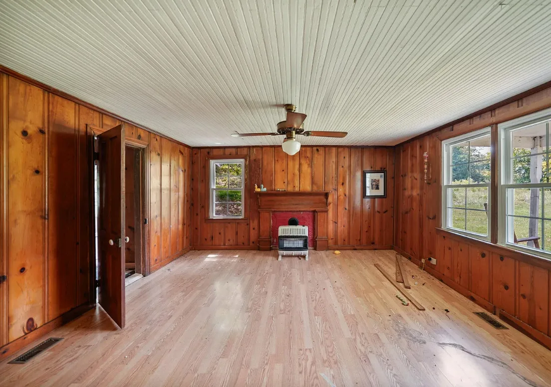 This Tennessee house has potential! Looks like a lot of work was started. The house was built in 1900. It is located on 2.50 acres in Frankewing, Tennessee. The house features a covered front porch, stone chimney, knotty pine, bead board and wood floors. New air and central heat! Three bedrooms, one bathroom and 2,176 square feet. $150,000