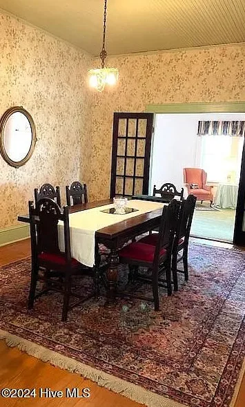 This house is in quite a lovely little town, not too far from Raleigh. The acreage is nice. The house was built in 1935. It is located on 3.54 acres in Spring Hope, North Carolina. The house features a wrap around front porch, wide baseboards, brick fireplaces, wood floors, french doors, built-in china cabinet and bead board wainscoting. There are a few outbuildings on the property. Five bedrooms, two bathrooms and 3,148 square feet. $270,000
