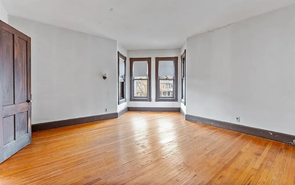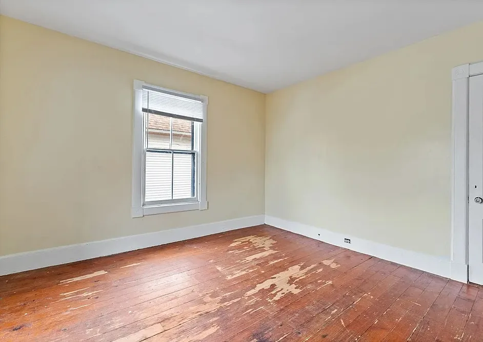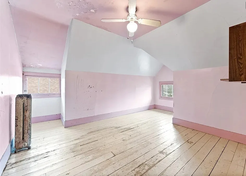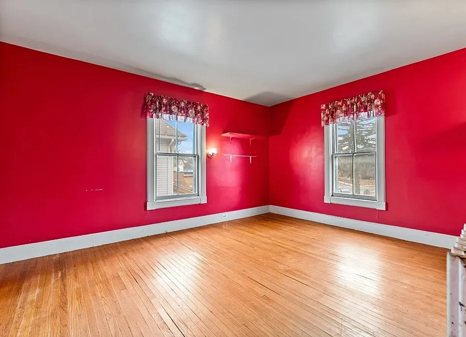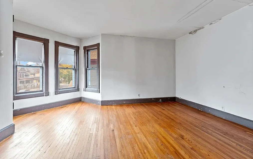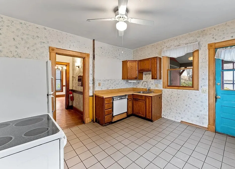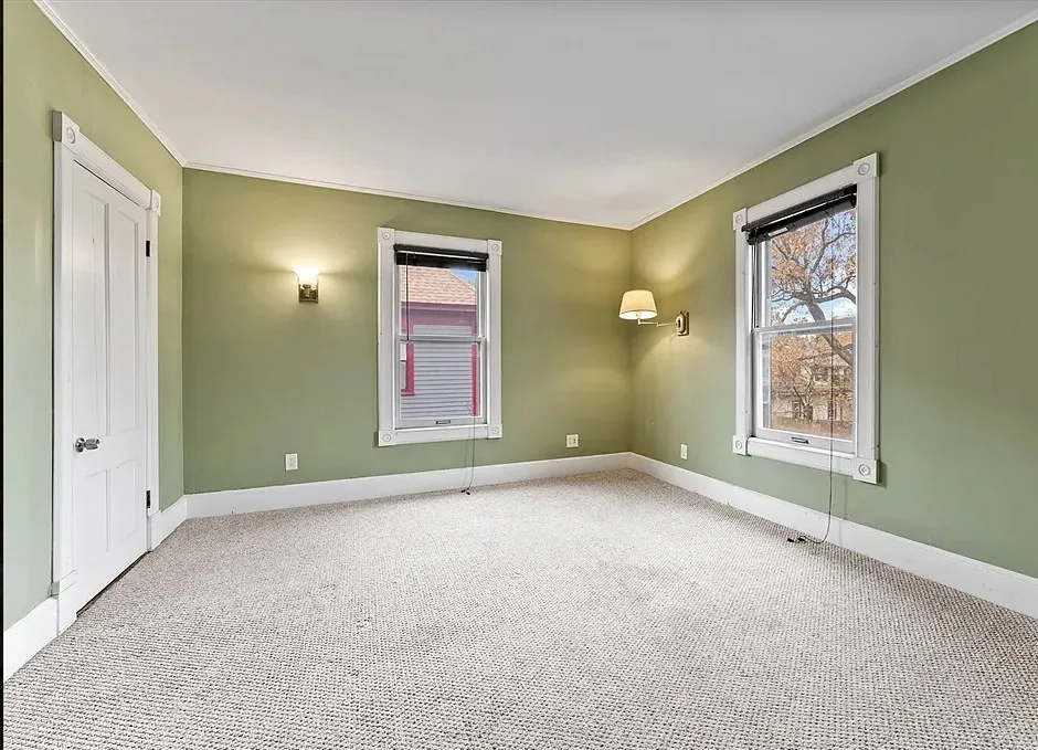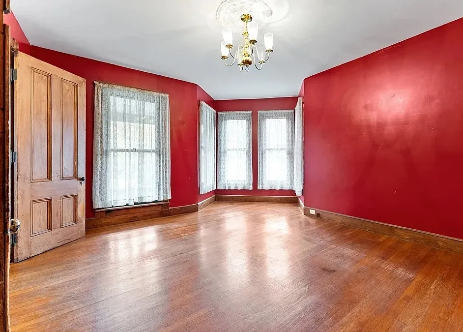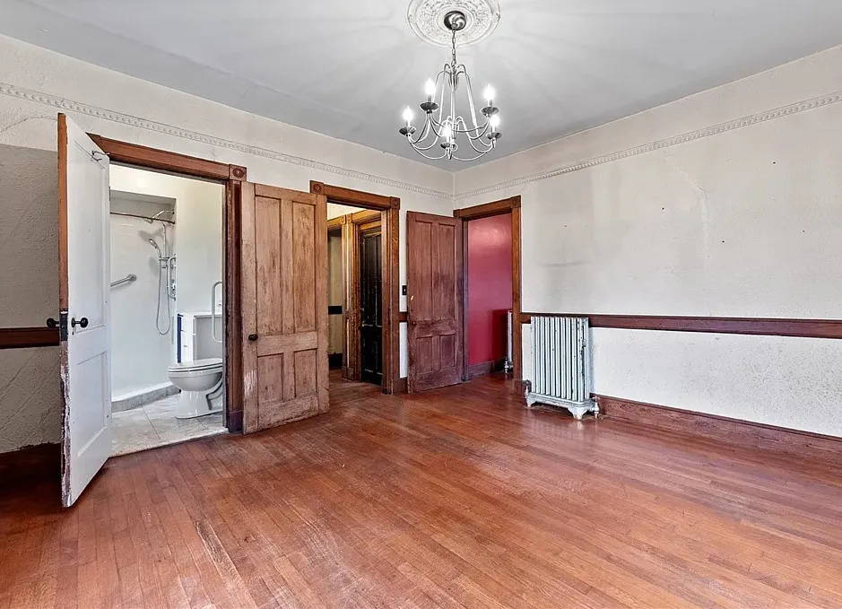 Pretty woodwork inside! I love that back brick patio! The house was built in 1883. It is located in Springfield, Massachusetts. The house features a covered front porch, wood floors, nice staircase, wide baseboards, chair rails and original mantels. The home has a large basement, fenced in backyard, large brick patio and a garage. Six bedrooms, two bathrooms and 2,461 square feet. $240,000