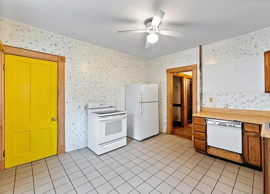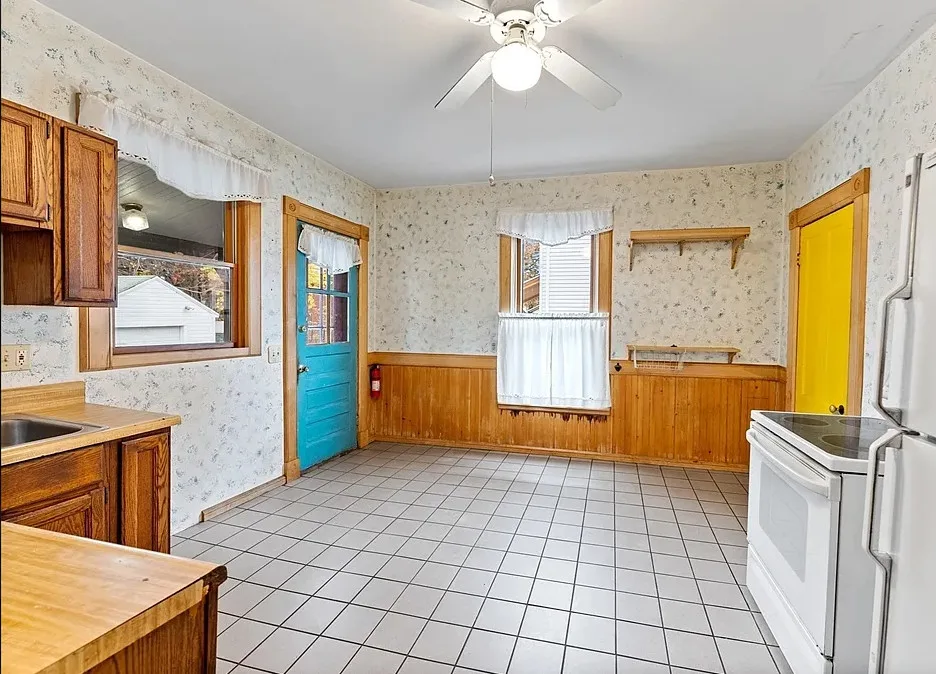 Pretty woodwork! Love the brick patio! Circa 1883 in Massachusetts. $240,000