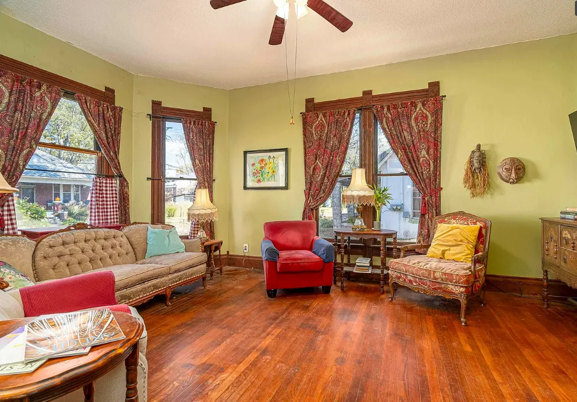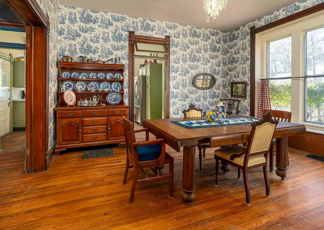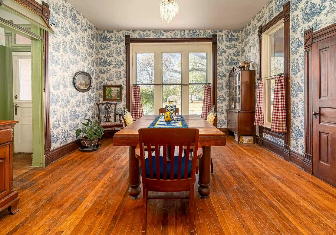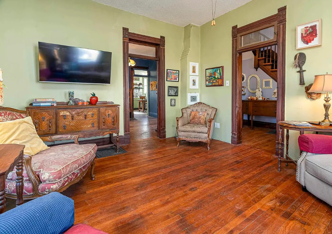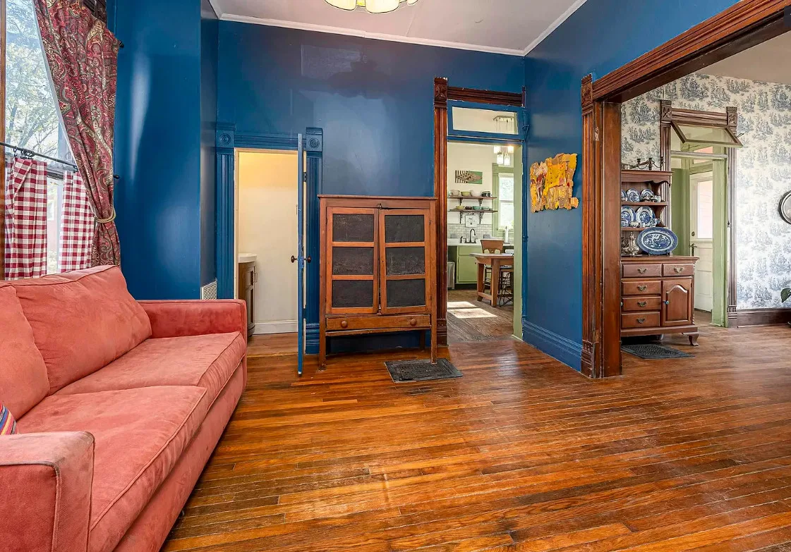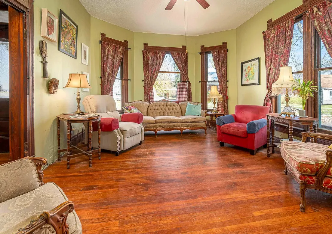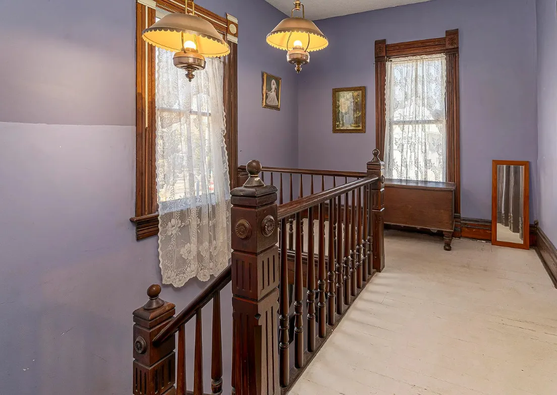 There is some pretty woodwork inside this house! The Essick House was built in 1891. It is located on .25 acre in Murphysboro, Illinois. The house features a covered front porch, covered side porch, hardwood floors, tall ceilings, original millwork, transom windows and a spacious kitchen. Two bedrooms, two bathrooms and 1,665 square feet. $159,900