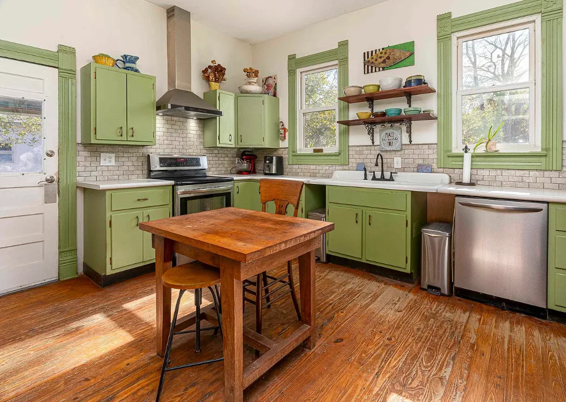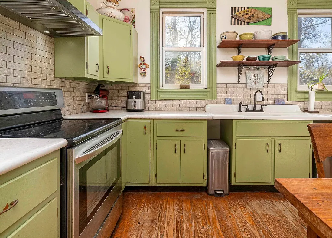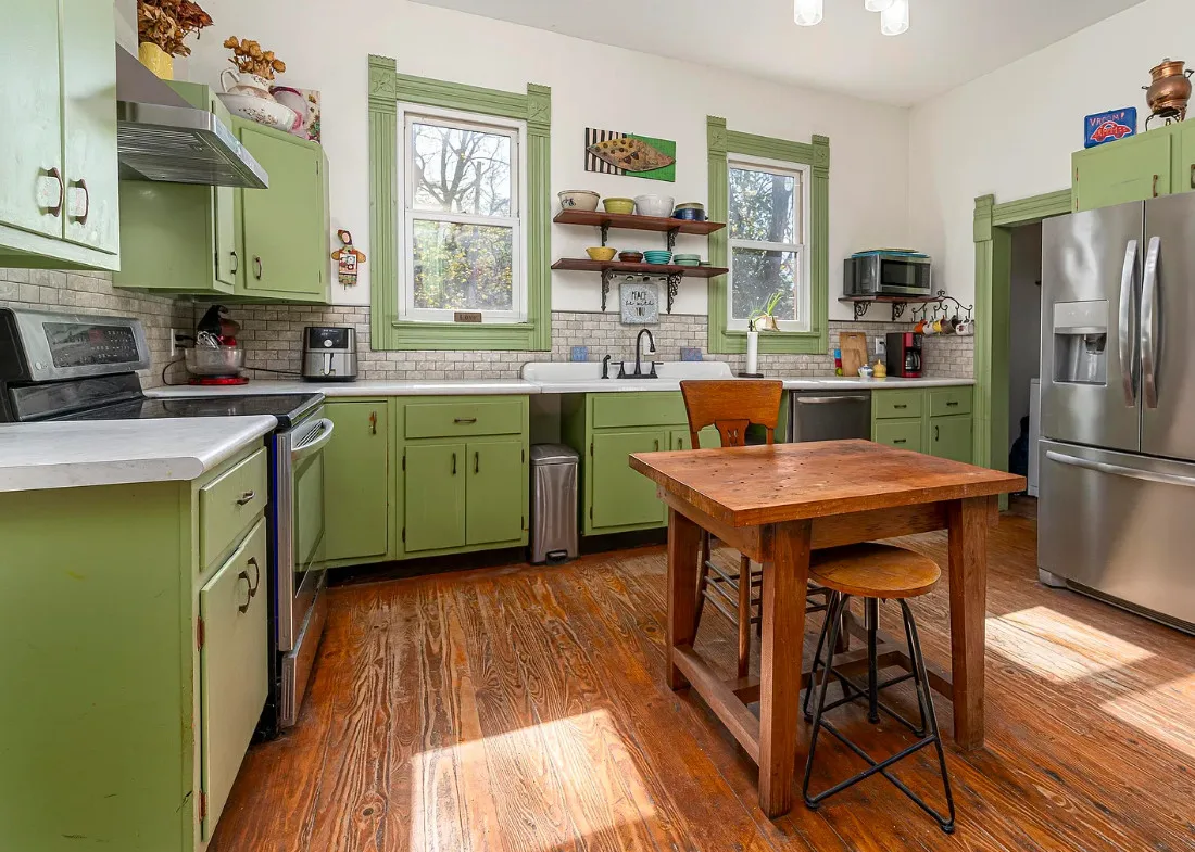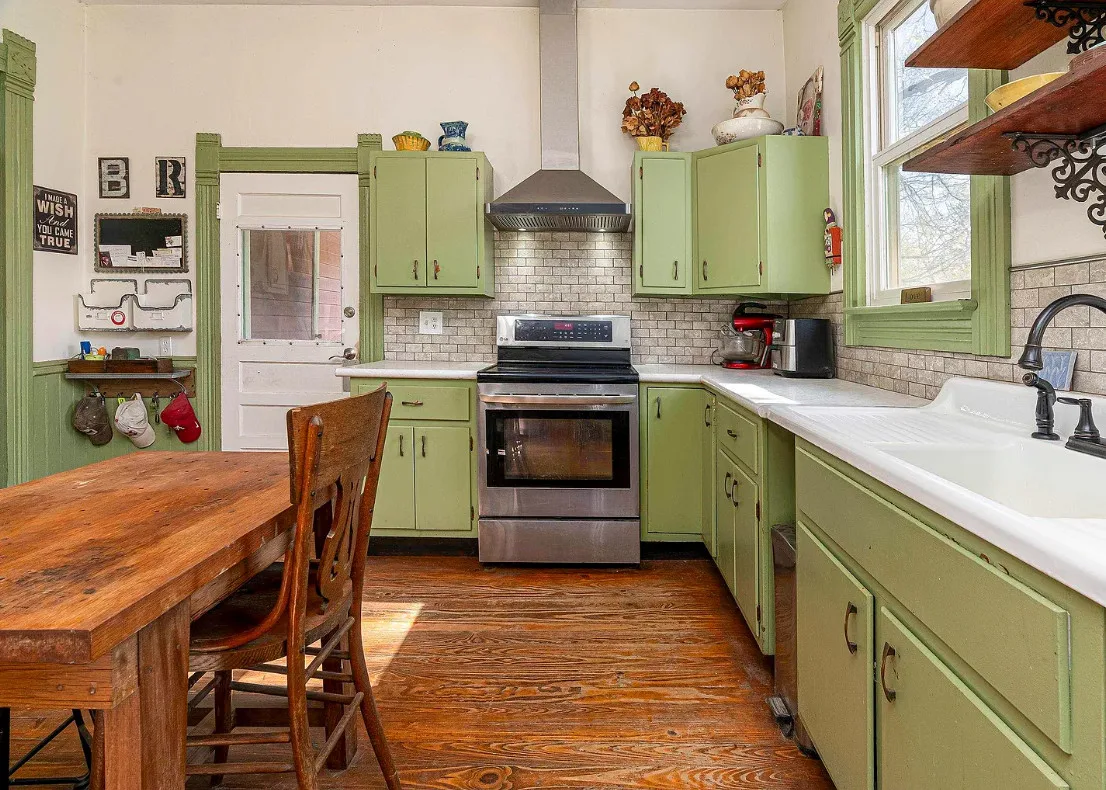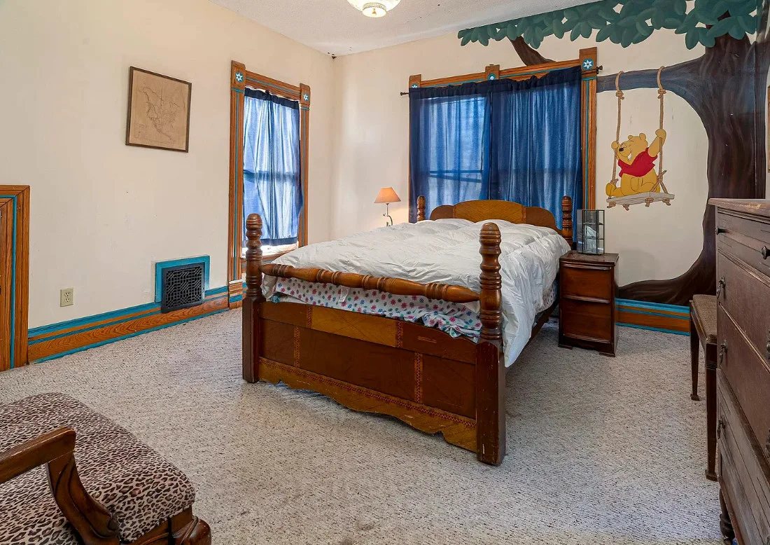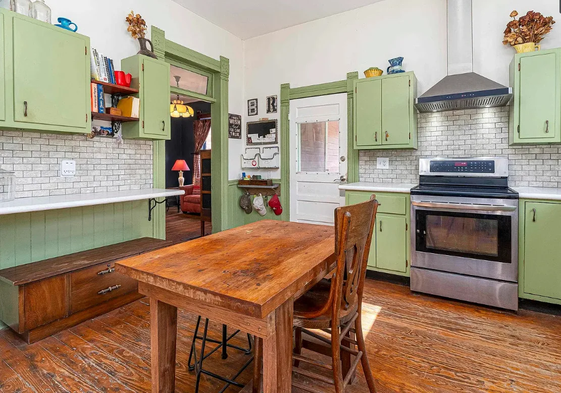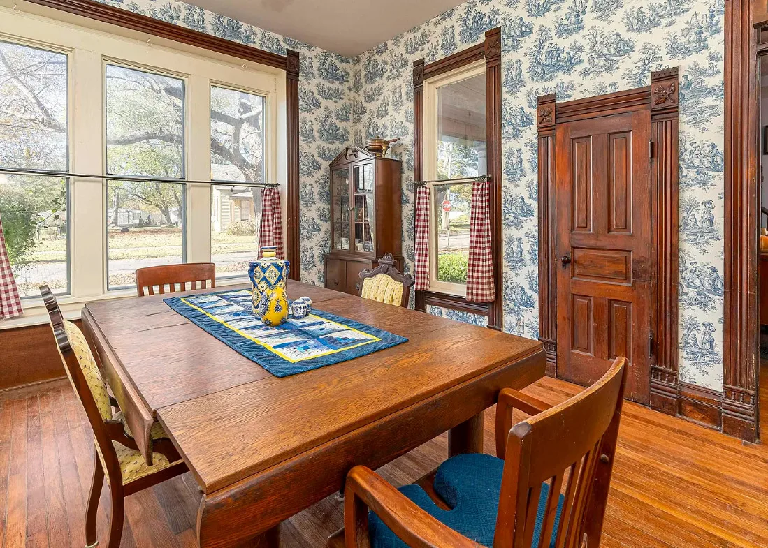 There is some pretty woodwork inside this house! The Essick House was built in 1891. It is located on .25 acre in Murphysboro, Illinois. The house features a covered front porch, covered side porch, hardwood floors, tall ceilings, original millwork, transom windows and a spacious kitchen. Two bedrooms, two bathrooms and 1,665 square feet. $159,900