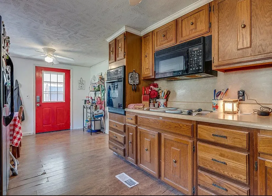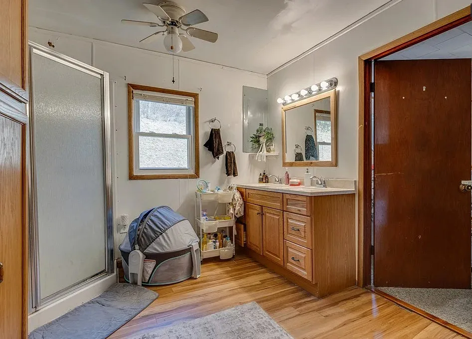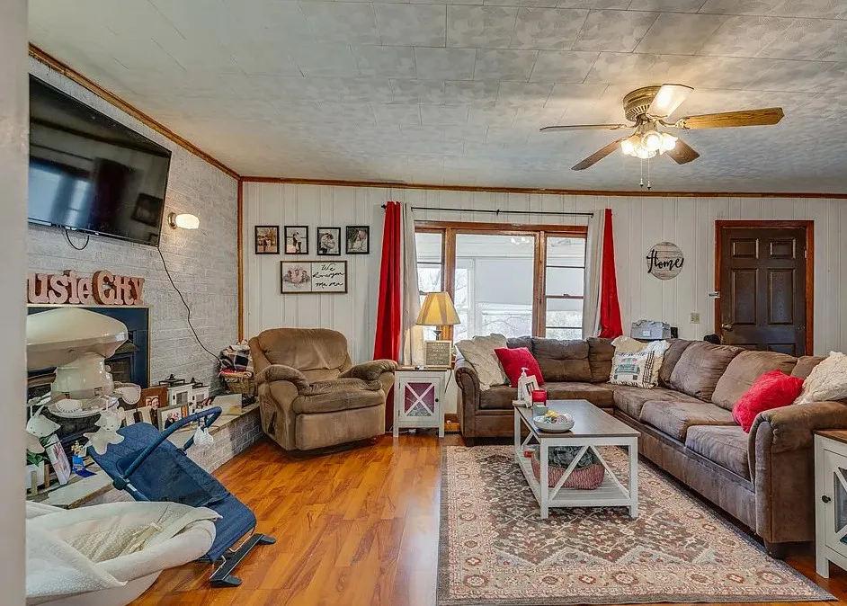 Such a pretty view from this house! Cute home. The house was built in 1940. It is located on 1.22 acres in Honaker, Virginia. The house features a covered porch, large wrap around deck, hardwood floors and a large brick fireplace. There are two outbuildings on the property for storage. Three bedrooms, two bathrooms and 1,270 square feet. $149,900