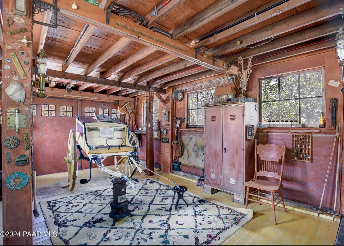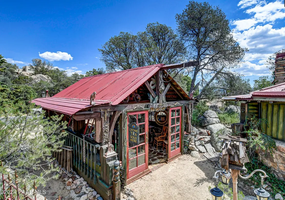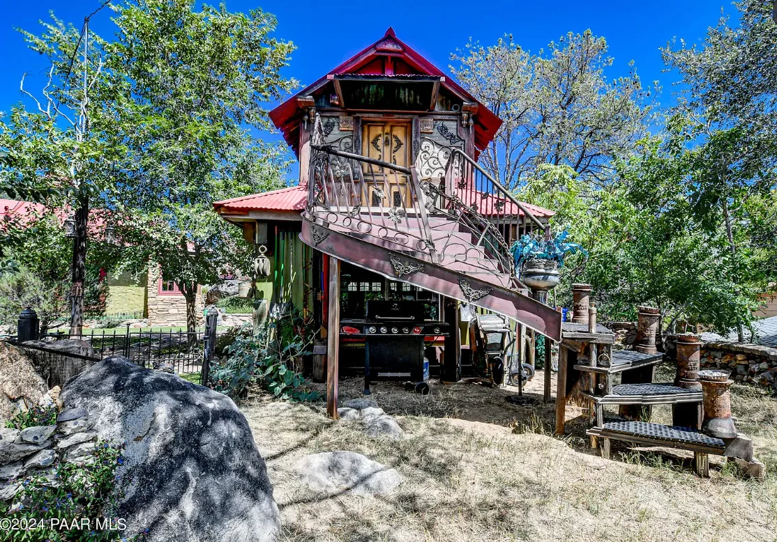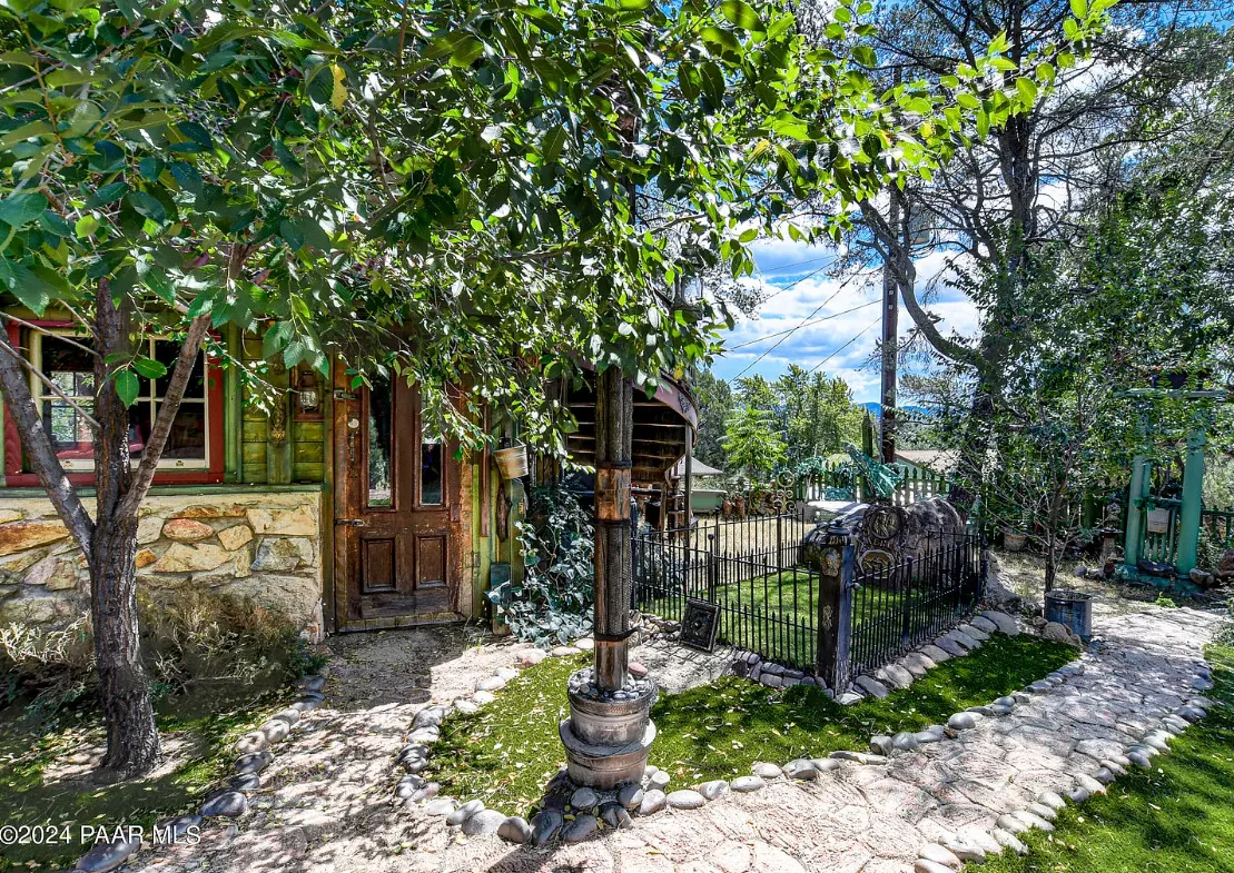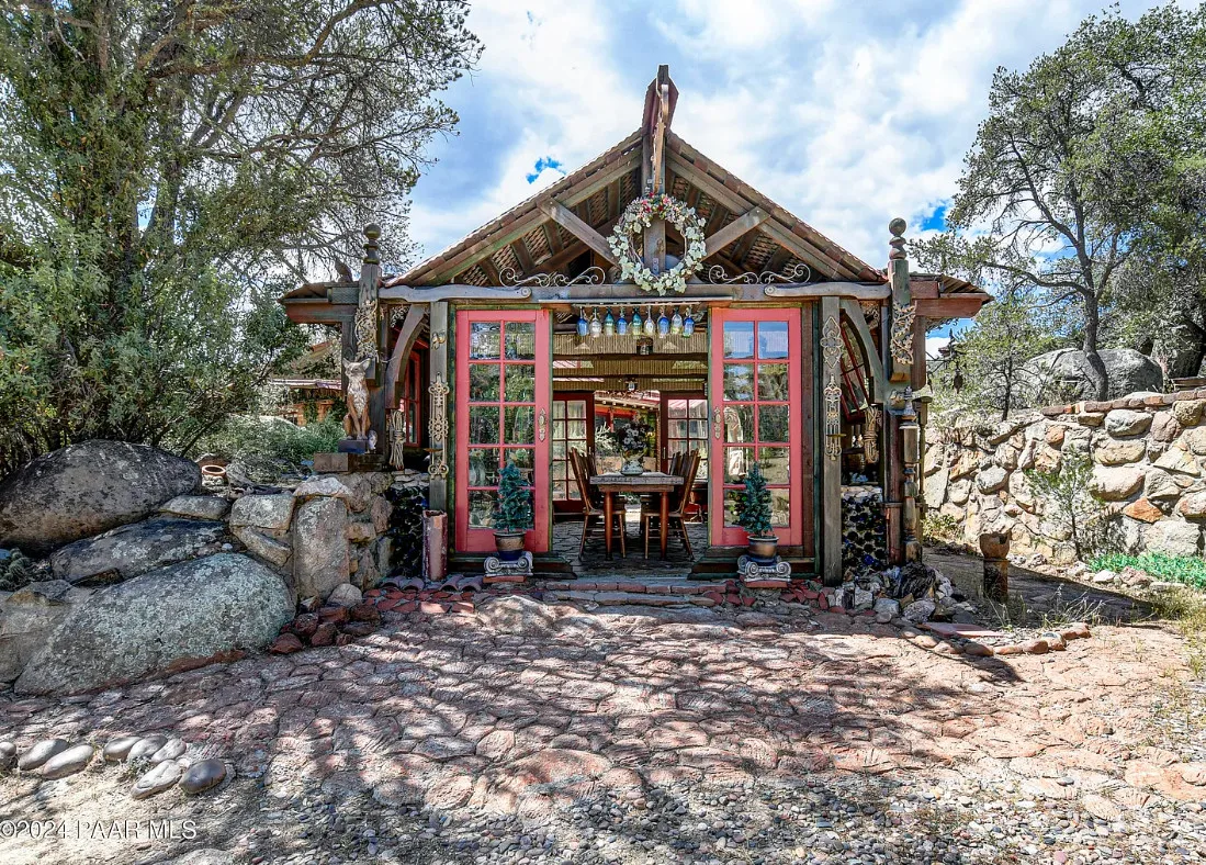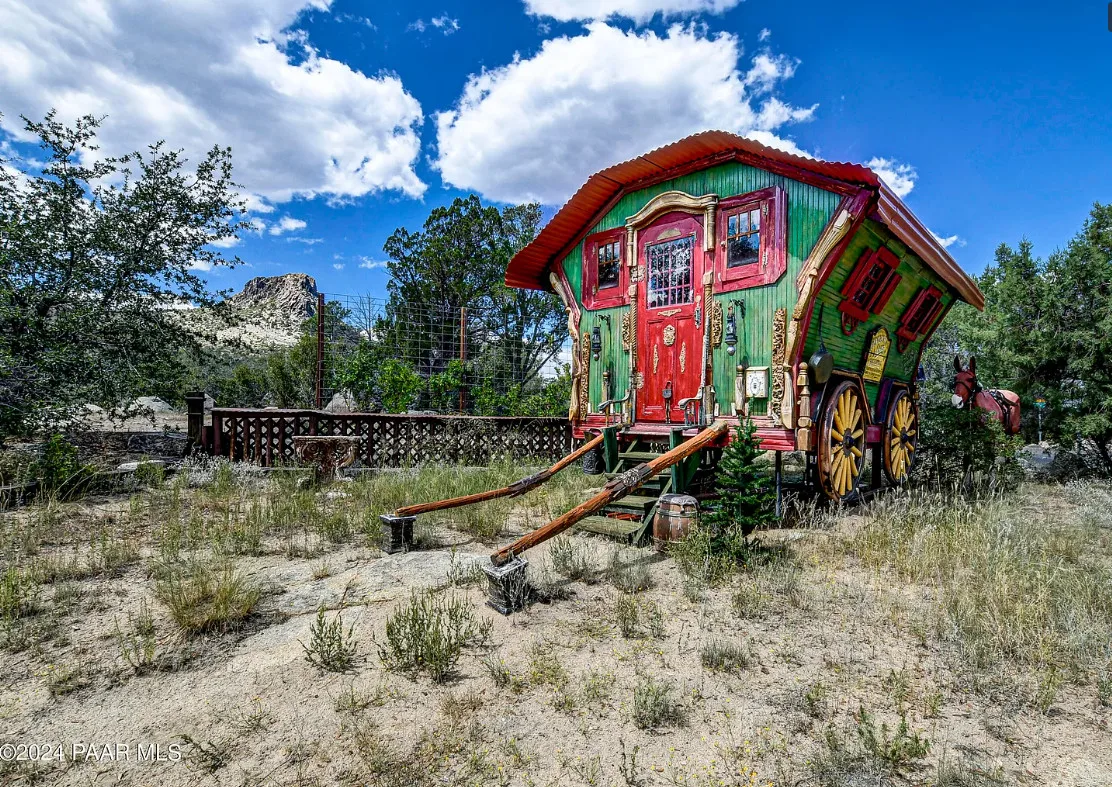 OMG! This is such a cool property! Love the artistic flair! The house was built in 1956. It is located on .52 acre in Prescott, Arizona. The house features a stone patio, ornate wood trim, claw foot tub, exposed beams and beautiful doors. There is a detached building for dining and an old carriage for additional sleeping quarters. This would be so much fun to own. Three bedrooms, two bathrooms and 1,725 square feet. $795,000