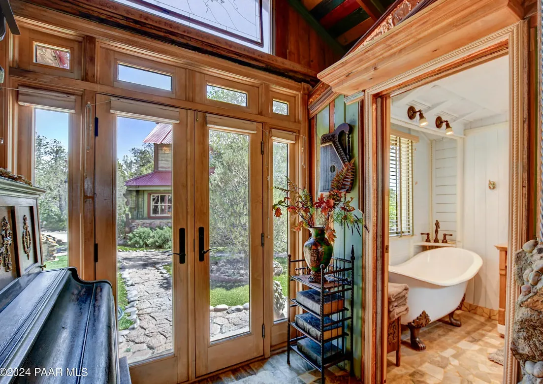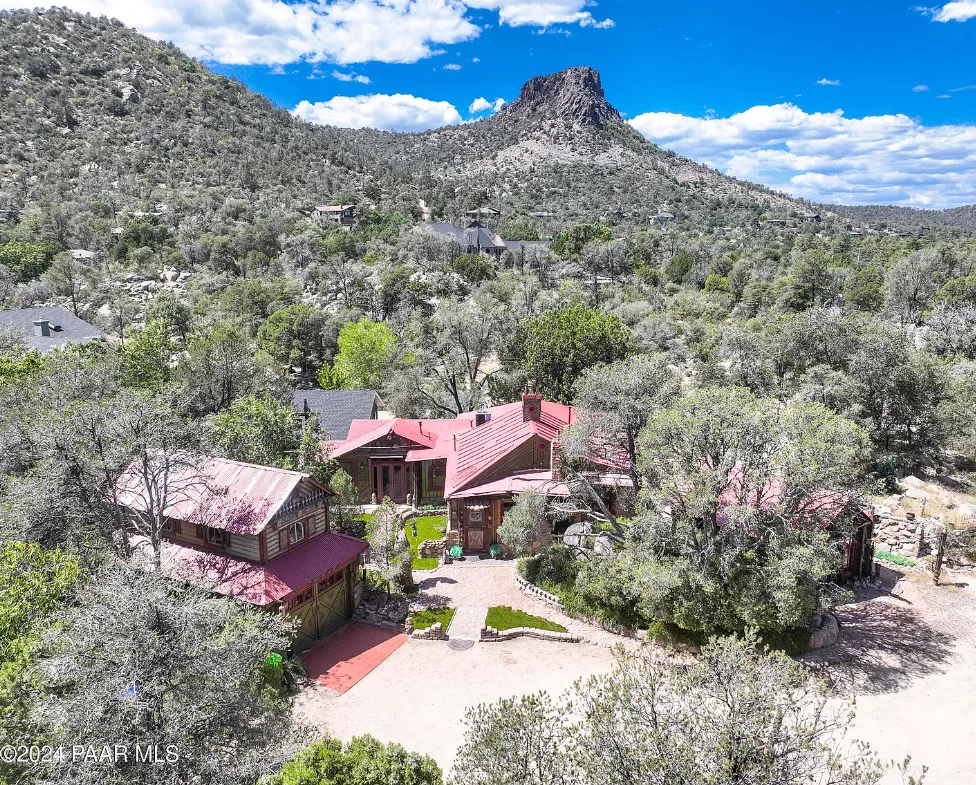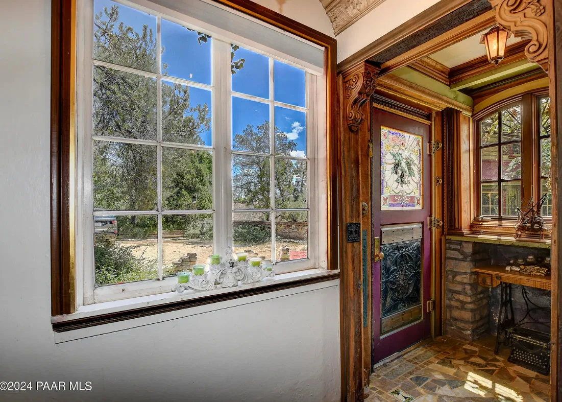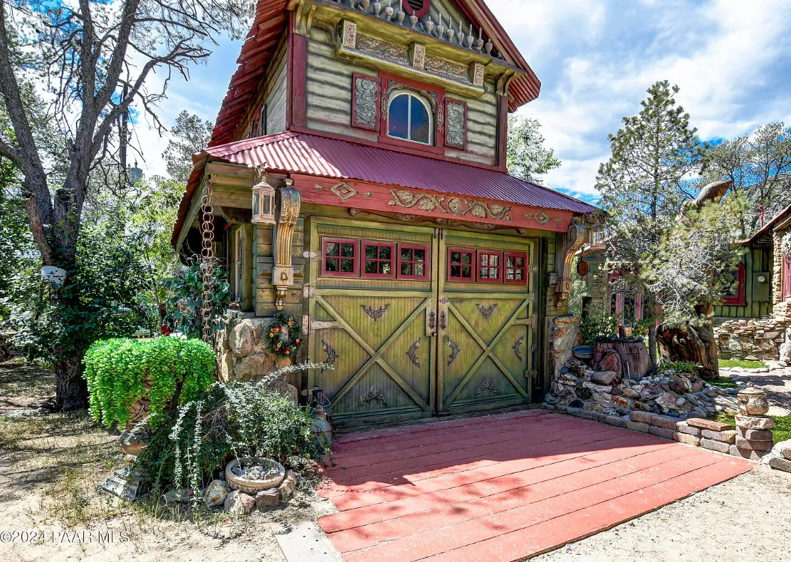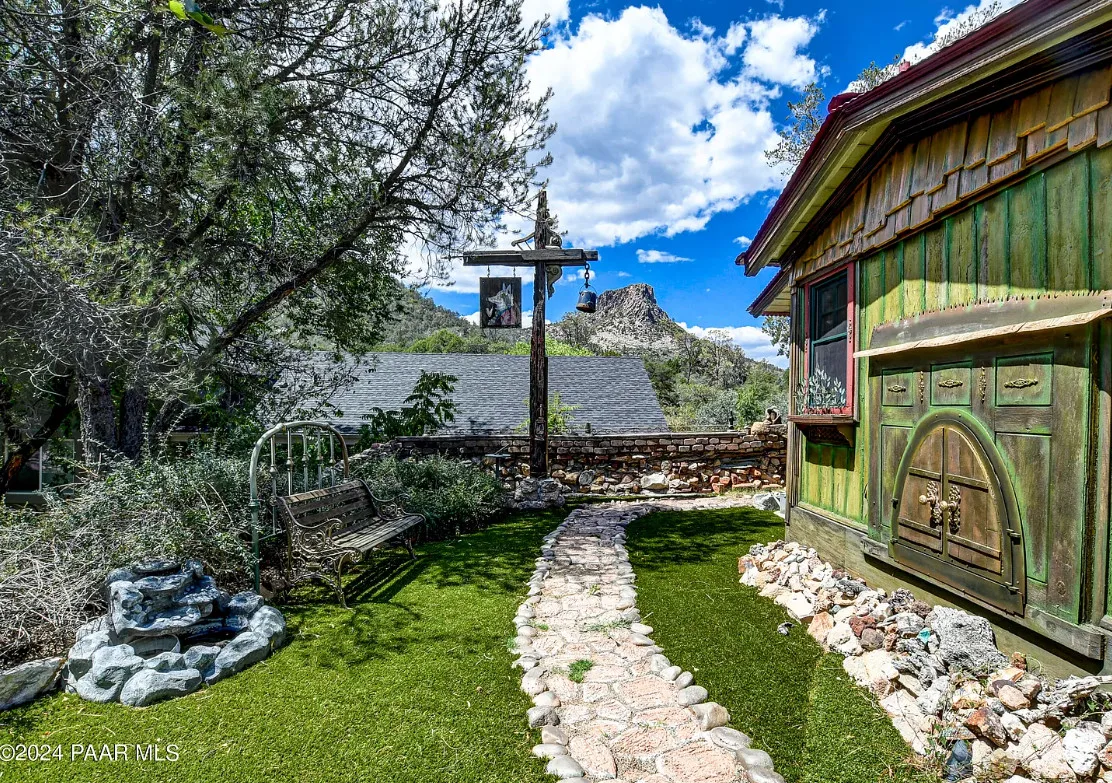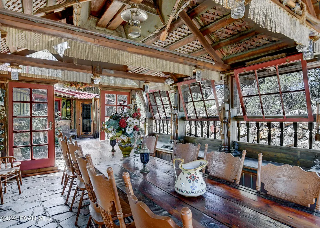 OMG! This is such a cool property! Love the artistic flair! The house was built in 1956. It is located on .52 acre in Prescott, Arizona. The house features a stone patio, ornate wood trim, claw foot tub, exposed beams and beautiful doors. There is a detached building for dining and an old carriage for additional sleeping quarters. This would be so much fun to own. Three bedrooms, two bathrooms and 1,725 square feet. $795,000