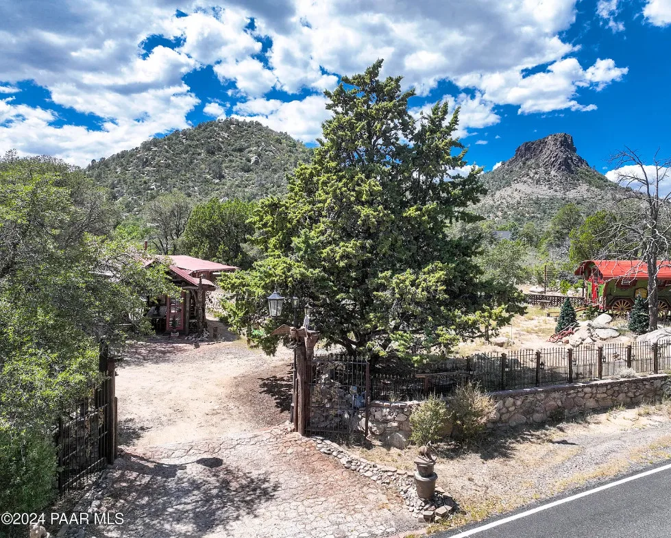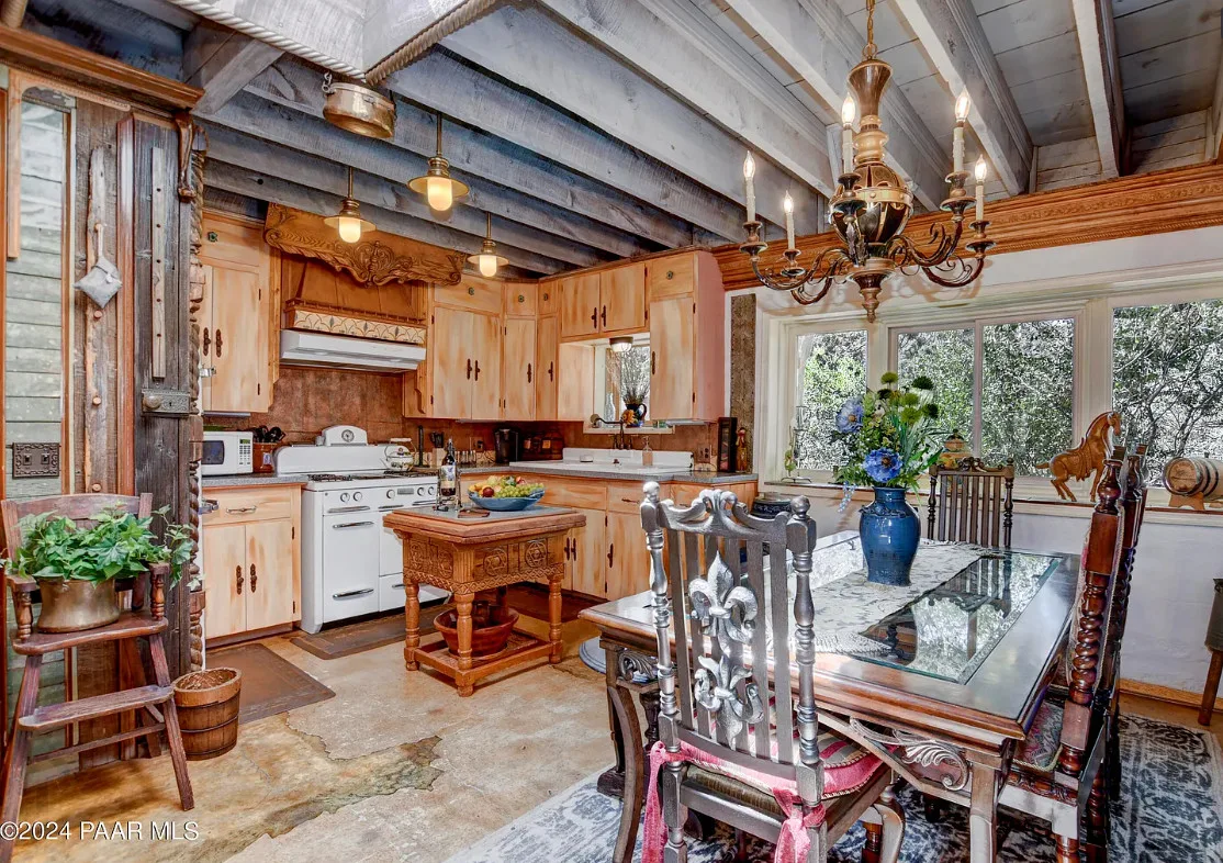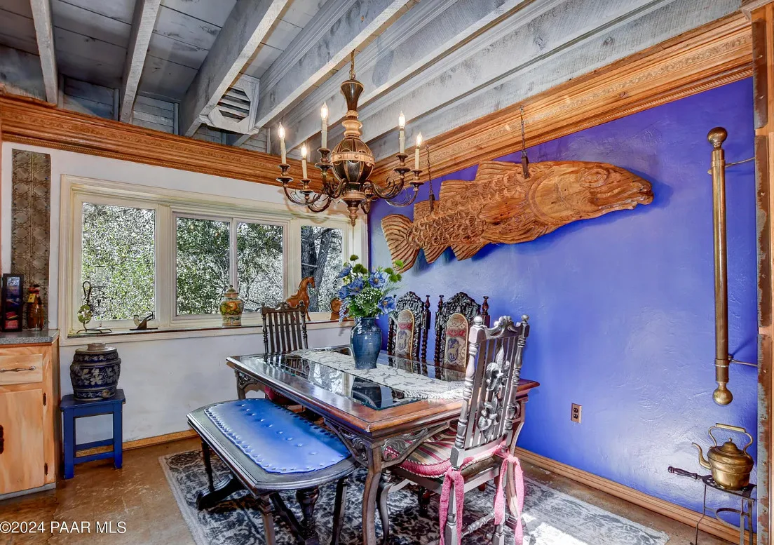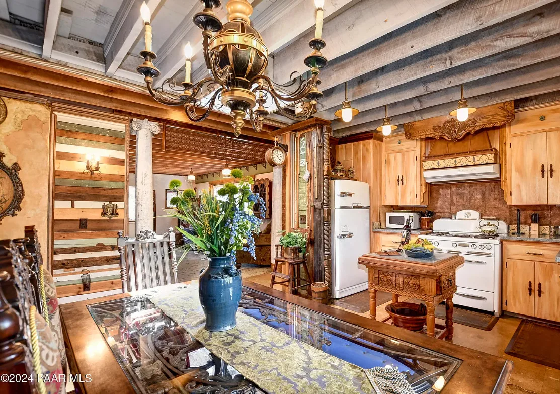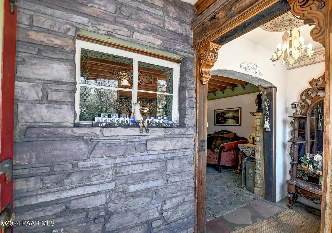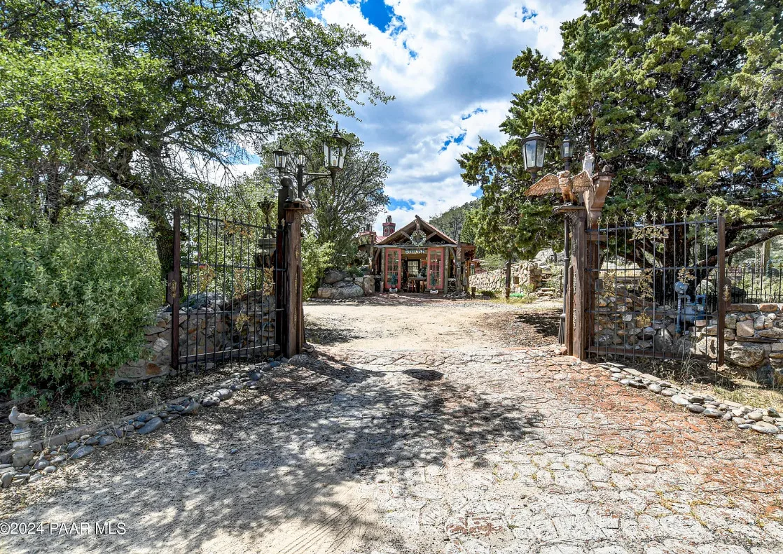 OMG! This is such a cool property! Love the artistic flair! The house was built in 1956. It is located on .52 acre in Prescott, Arizona. The house features a stone patio, ornate wood trim, claw foot tub, exposed beams and beautiful doors. There is a detached building for dining and an old carriage for additional sleeping quarters. This would be so much fun to own. Three bedrooms, two bathrooms and 1,725 square feet. $795,000