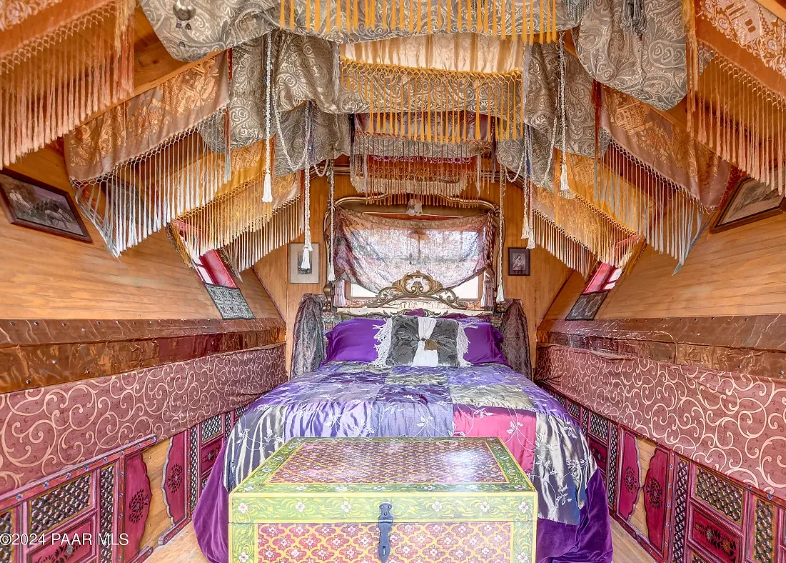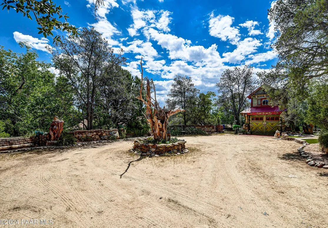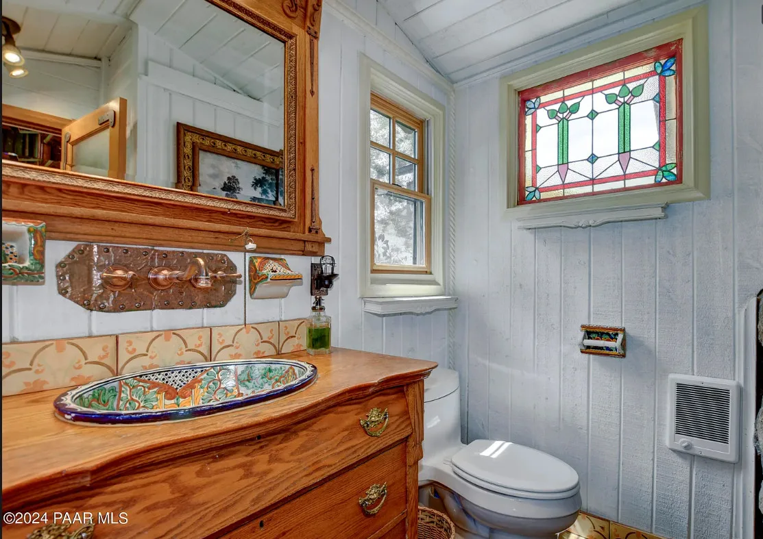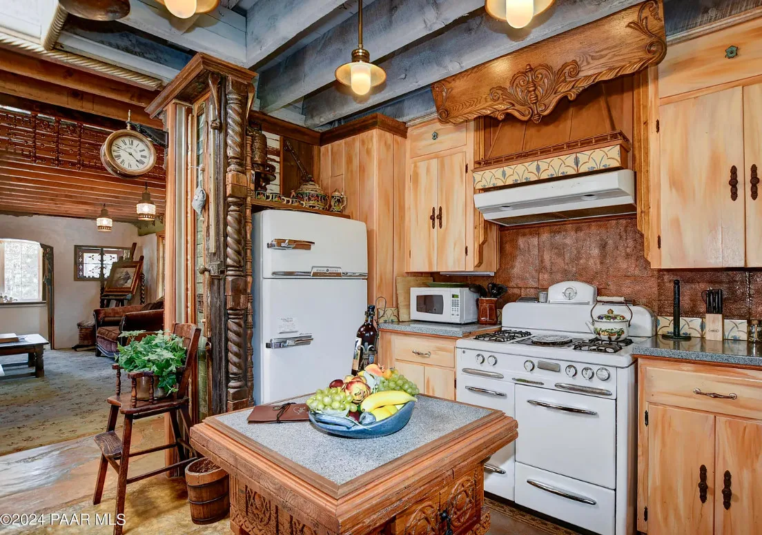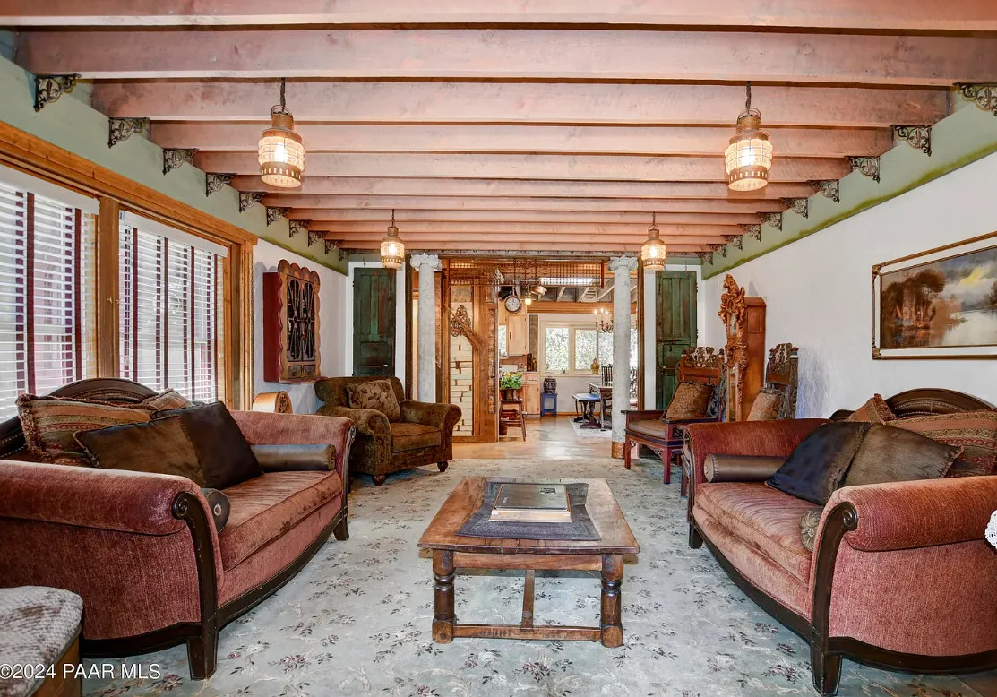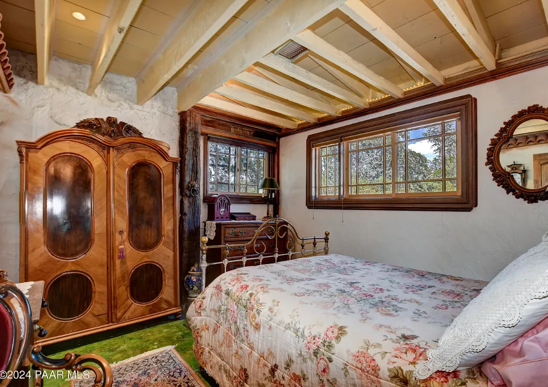 OMG! This is such a cool property! Love the artistic flair! The house was built in 1956. It is located on .52 acre in Prescott, Arizona. The house features a stone patio, ornate wood trim, claw foot tub, exposed beams and beautiful doors. There is a detached building for dining and an old carriage for additional sleeping quarters. This would be so much fun to own. Three bedrooms, two bathrooms and 1,725 square feet. $795,000