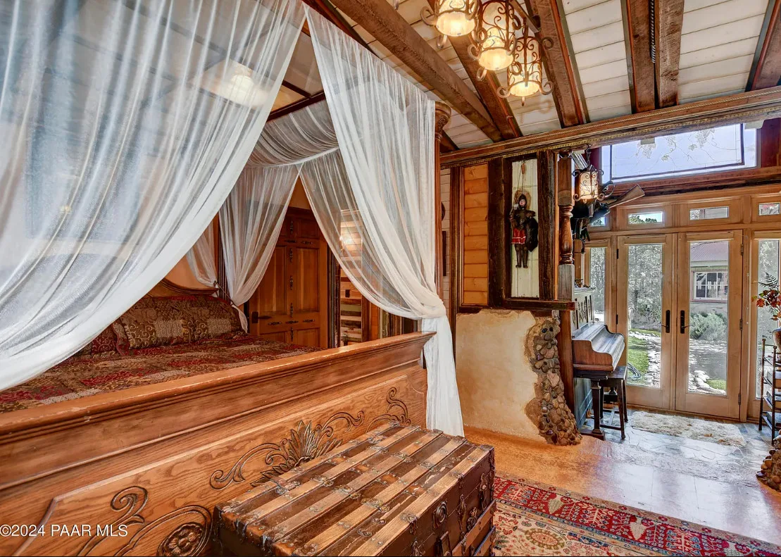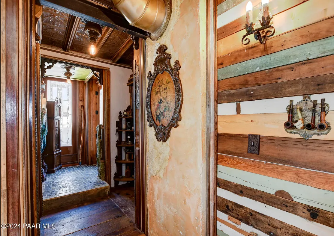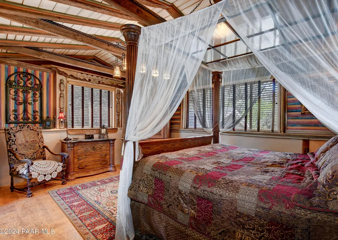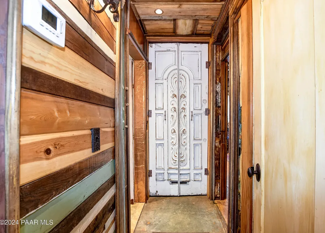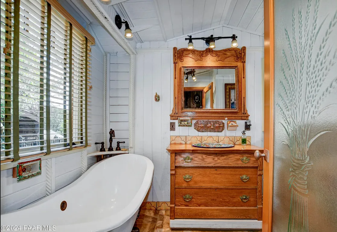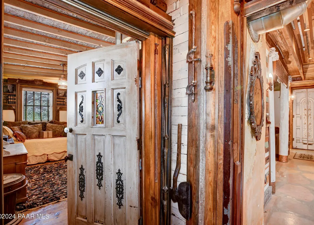OMG! This is such a cool property! Love the artistic flair! The house was built in 1956. It is located on .52 acre in Prescott, Arizona. The house features a stone patio, ornate wood trim, claw foot tub, exposed beams and beautiful doors. There is a detached building for dining and an old carriage for additional sleeping quarters. This would be so much fun to own. Three bedrooms, two bathrooms and 1,725 square feet. $795,000