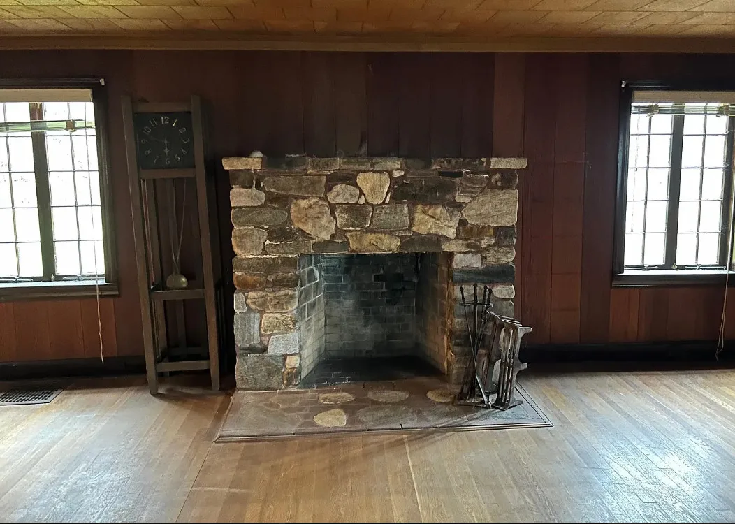 Love the stone fireplace! Nine acres in Vermont