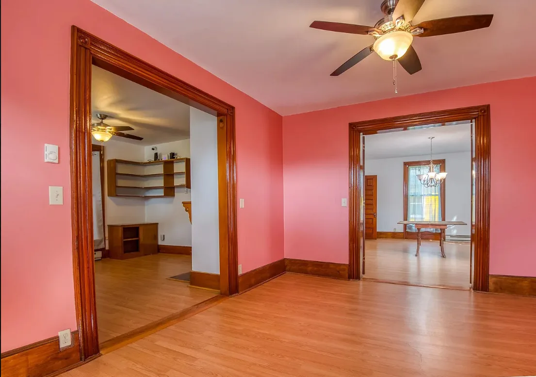 Unpainted woodwork! 5 beds/3 baths. Circa 1887 in New Hampshire. $219,000