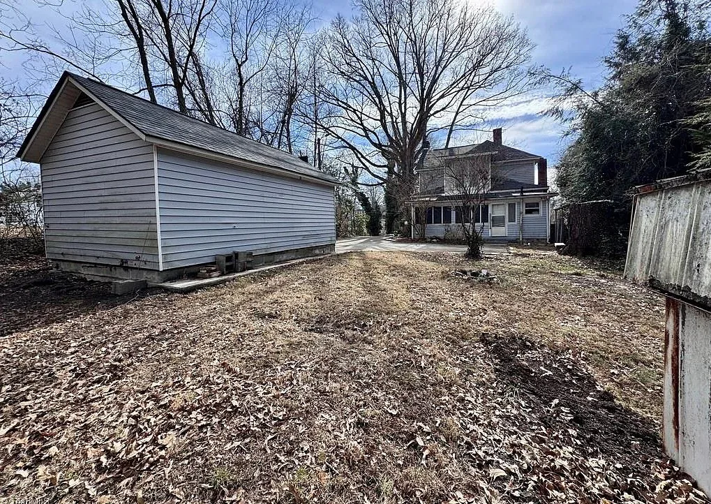 One of my favorite towns to visit! Mayberry! The house was built in 1915. It is located on .30 acre in Mt. Airy, North Carolina. The house features a covered front porch, wood floors, wide baseboards, built-in shelving and a nice staircase. The house clearly needs some work, but it has a lot of potential. That kitchen is a bit awkward. There is a detached storage building on the property. Love the old tree! Four bedrooms, three bathrooms and 1,865 square feet. $215,000