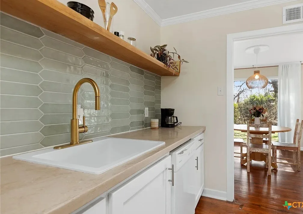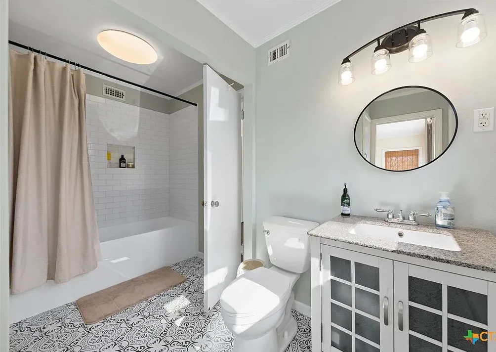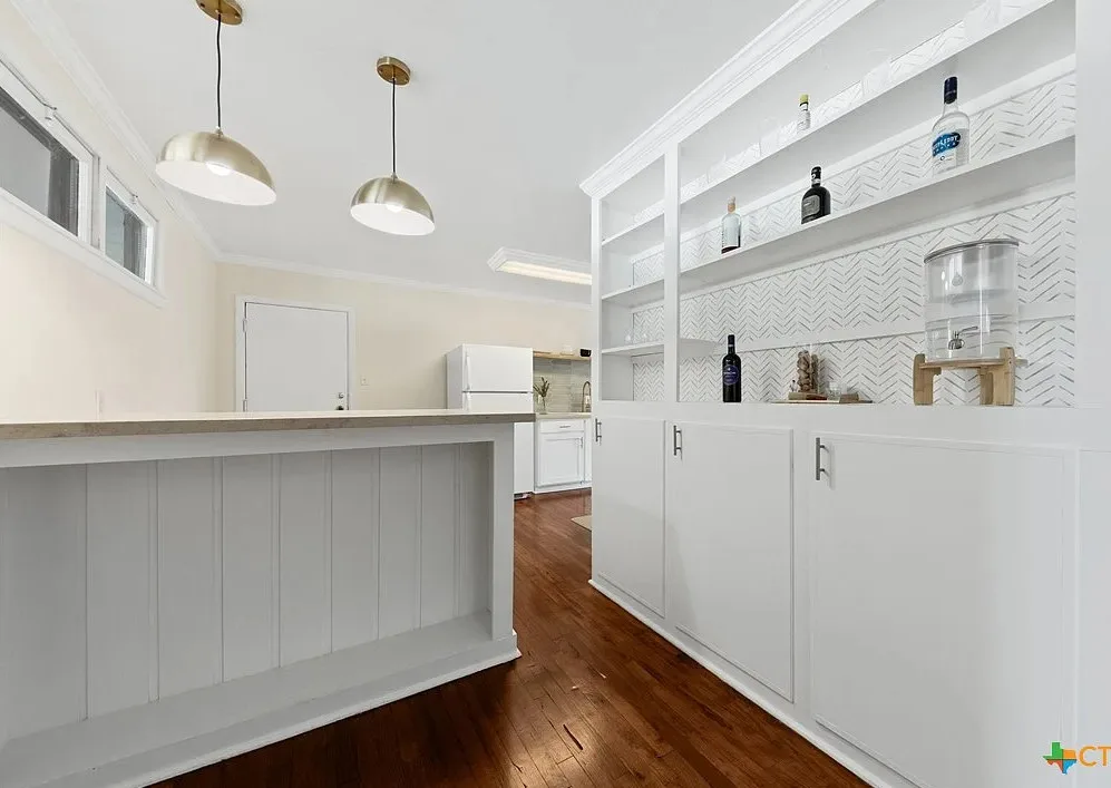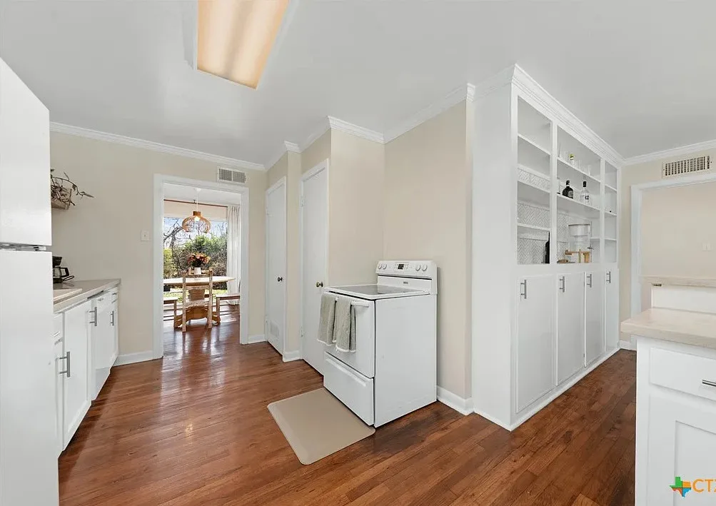This house has a lot of natural light inside! The house was built in 1952. It is located on .41 acre in Temple, Texas. The house features a covered front porch, wood floors, a lot of windows, built-in bookshelves, crown moulding and baseboards. There is a spacious backyard with a fire pit area. Two bedrooms, two bathrooms and 1,558 square feet. $234,999