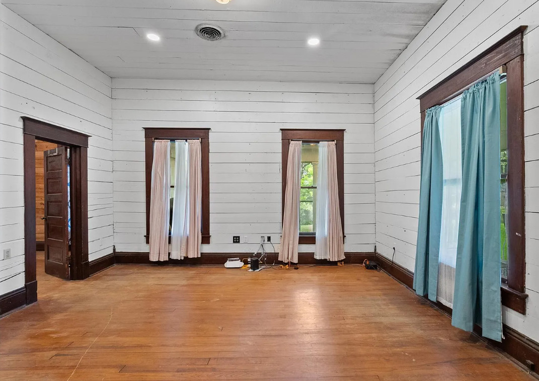 This house has nice curb appeal with that fence and a nice porch. The house was built in 1913. It is located on 2.5 acres in Liberty, Texas. The house features a white picket fence, a covered front porch, screened in porch, wood floors, wide baseboards, pocket doors, solid wood doors and transom windows. Three bedrooms, two bathrooms and 3,091 square feet. $399,000