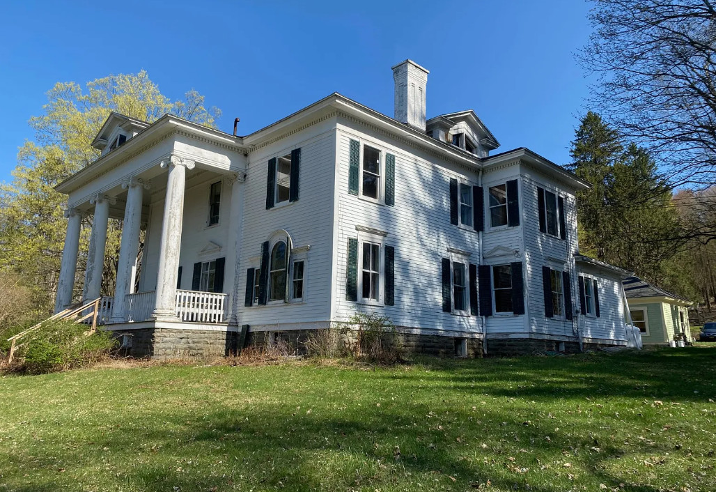 Neo- Classical Revival Built 1904 by Edmund Pardee a railroad executive. It was named to honor Collis P. Huntington, Pardee’s relative, famous for the development of the Southern Pacific Railroad. Here is your chance to own one of the more historic homes in Oneonta, NY. The former Huntington home, is a stately manor featuring many original details, craftsmanship and charming features throughout. Built during the Gilded Age, there are not many homes of this magnitude and glory remaining. This unbelievable property is located on the edge of Oneonta. A historic home and property throughout, it is situated on 63 acres and features four fireplaces, formal dining room with chandelier, parlor with fireplace, and music room for your grand piano. There are 7 bedrooms, 2 on the main floor and 5 on the second story along with 5 full bathrooms and one half bath. The grandeur, size and location of this home would be a perfect opportunity to create a bed and breakfast. Oneonta is the home of two college campuses and two large baseball camps that generate a lot of tourism and revenue opportunities. An artist studio with attached greenhouse also contains a half bath and can be used for more living space. There is an additional farmhouse which needs work to be restored. Stately, old trees on the property make it feel like you are taken back a century. Frontage on the Susquehanna River and trails throughout the 63 acres gives this property prime recreational opportunities. The 600′ of river frontage has a beach area for easy access. This is a unique property and is awaiting new ownership that will preserve its heritage into the future.
