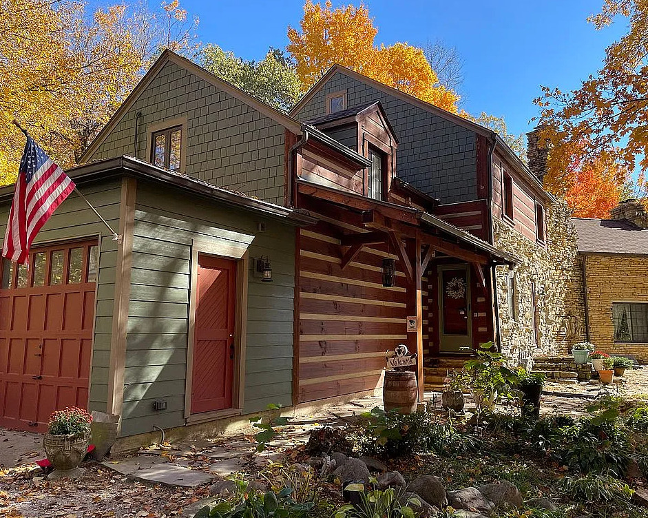 I love the setting for this house! The exterior style is really nice! The house was built in 1932. It is located on four acres in Muncie, Indiana. The interior was a bit of a disappointment for me. Looks like a new house. But it is move in ready. There are vaulted ceilings, wood floors, fireplaces, updated kitchen and updated bathrooms. There are nice garden spaces and a large patio. Three bedrooms, three bathrooms and 3,303 square feet. $489,000