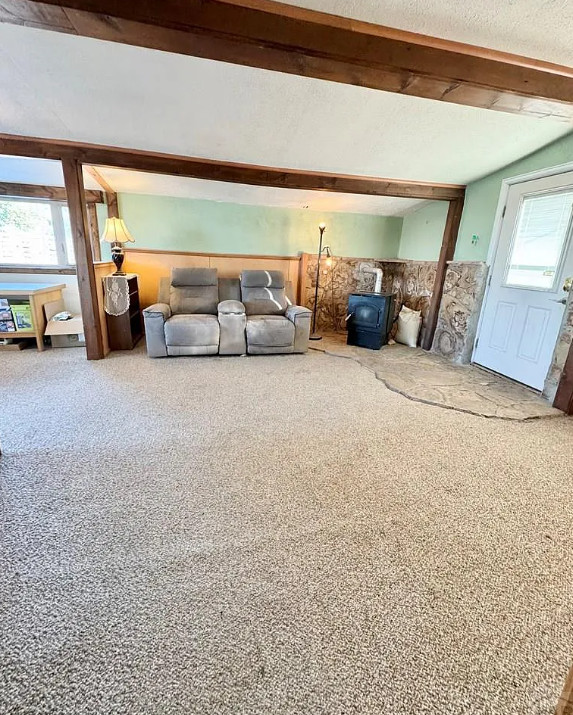 Stove is beautiful! Nice cabin in Colorado. Circa 1905. $389,000