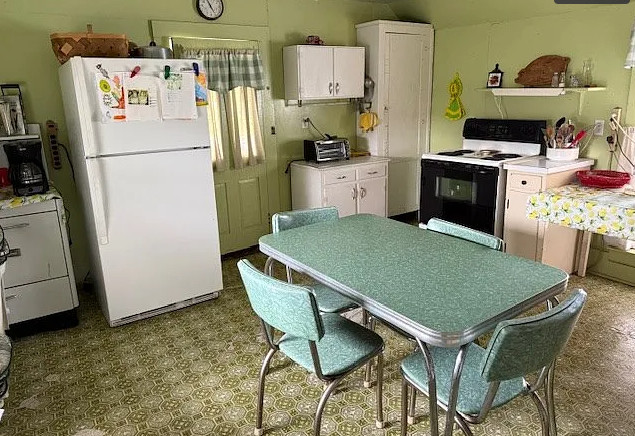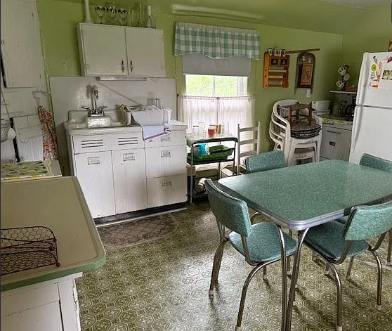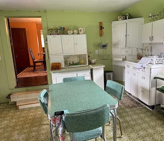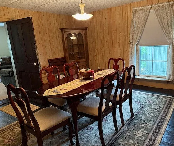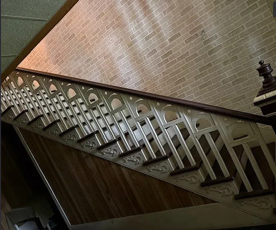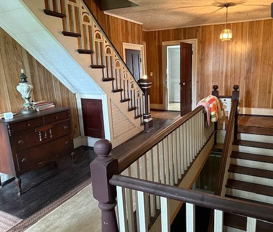 This is in a really pretty area of Virginia! I love the staircase in this house; it’s unique! And who else wants the kitchen table? The house was built in 1880. It is located on .65 acre in Rural Retreat, Virginia. The house features a covered front porch, nice staircase, vintage light fixtures, wood floors, wide baseboards, transom windows and wainscoting. First thing I would do is get rid of drop ceilings. This house looks livable, so one could easily work room by room. Four bedrooms, two bathrooms and 3,488 square feet. $125,000