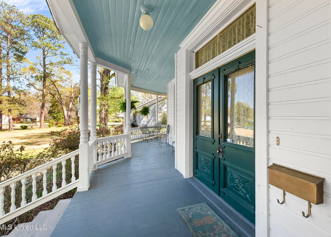 Porch goals and a nice interior! Love a house with two staircases! The Smith-Riddell House was built in 1900. It is located on .73 acre in Canton, Mississippi. The house features a wrap around front porch, small upper porch, wood floors, pretty staircase, crown moulding, wainscoting, wide baseboards and a built-in china cabinet. There is an outdoor fire pit area. Three bedrooms, three bathrooms and 3,378 square feet. $275,000
