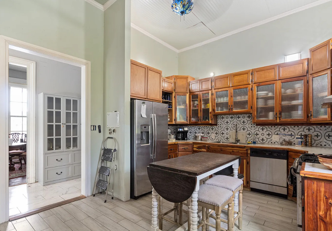 Calling all investors, preservationists, & project lovers! Tucked just outside the historic downtown square in Holly Springs is Hillside, a grand Italianate & Gothic Revival house originally built in 1857 by F.W. Rittlemeyer, an immigrant from Prussia. Rittlemeyer also built Airliewood, another antebellum home in Holly Springs. The curved staircase in the foyer is believed to be 1 of just 7 like it in the county. Hillside was designed as a smaller, Victorian version of the Fontaine House in Memphis, TN. Step inside off the front porch (yes – with a haint blue ceiling!) and find yourself transported back in time in the formal foyer, bathed in the colors of the stained glass windows & transoms. To your left, is the parlor/formal living room with soaring ceilings, fresh paint, repaired ceiling, & a fireplace (non-operable). Don’t miss the beautiful trim work in the bay window. To the right, you will find the formal dining room with a working gas insert in the fireplace. In the center of the home, you’ll find a hallway with a custom built hutch as well as the downstairs primary bedroom and a full bath. To the back of the home, you’ll find the modern kitchen, complete with all appliances, another gas insert, & custom milled cedar & poplar cabinetry. Up the curved staircase with a unique mahogany banister, you’ll find a landing, 2 more bedrooms, and another full bathroom. Outdoors, you can enjoy a large lot (the neighboring lot #45 is included in the sale) with raised garden beds and a new wooden patio. The 2 car garage is 2 stories and has power; however, there are no garage door openers currently installed. It is currently used as the workshop for the restoration work happening around the home. There is also a basement underneath the home. This home has been in the renovation process for several years. Many things have already been done for you including freshly painted parlor, new wiring (6 years), a new 50 gallon hot water heater, a 5 year old roof, custom kitchen with new gas lines, new full bath downstairs, & ceramic tile in the laundry room, kitchen, & hallway. Outside, you can enjoy the freshly painted exterior and some damaged woodwork has already been repaired. There are also re-sealed gutters & downspouts around the home to help protect the remarkable woodwork. Still to be done to make Hillside the stunning home it once was is to install HVAC units outside (there is ductwork in the home already, but no units outside), finish repairing/replacing exterior wood as needed, paint/repairs in the upstairs rooms, renovation of the upstairs bathroom, & (if desired) installation of a French drain to the back of the home & a sump pump in the basement for storm water management. There is also a chandelier in the garage that belongs to the home; this will stay for new owners to install if they wish. There are antiques that will convey with the home, including dining room table, rug, and 8 chairs, a hutch, a drawer piece, two love seats, multiple lamps, and parlor furniture. Ask listing agent for complete list. *IMPORTANT NOTE – this home will not qualify for a conventional, FHA, USDA, or VA loan. It might qualify with a local bank in Holly Springs for a bank loan, but will likely need to be a cash purchase or a renovation loan product.* This is a rare opportunity at this price point to own an important piece of Holly Springs history. Don’t wait! Schedule a showing today.