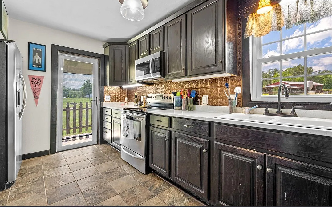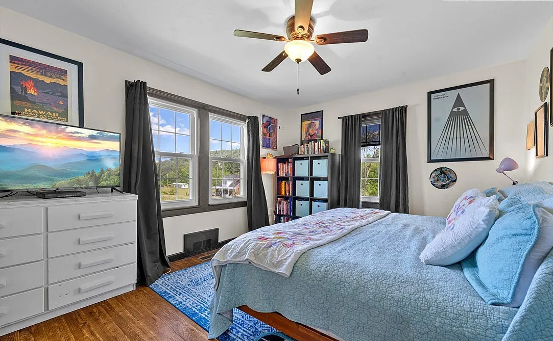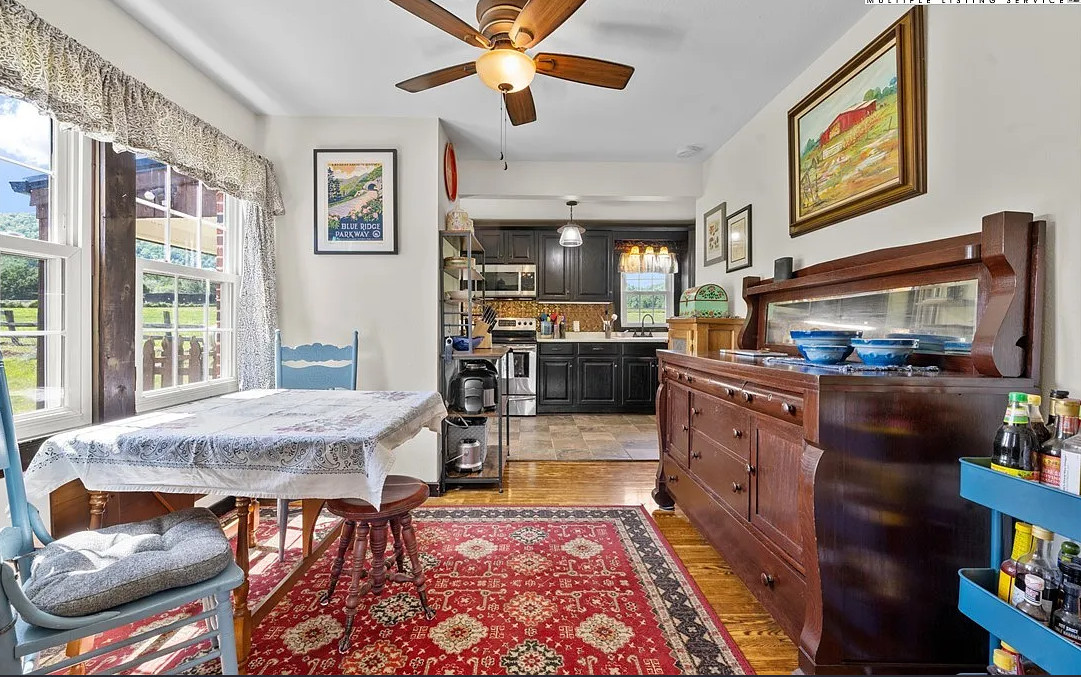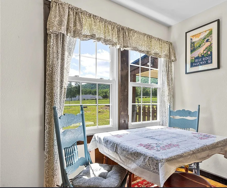 Just minutes from the heart of the Jeffersons, this 3bed/1.5bath cottage is exactly what you’ve been waiting for! Set on 0.64 “mountain flat” acres and surrounded by wide-open pastoral and mountain views, this property offers a convenient location with plenty of room to breathe. Solid brick construction, stone accents, metal roof, and cedar shake details- this home is equal parts timeless charm and modern updates. The stone-columned front porch was made for rocking chairs, and the expansive yard is perfect for gardens, pets & social gatherings. Stepping inside, you’ll find beautifully refinished hardwood floors and a light-filled living room anchored by a wood-burning fireplace. The main level offers everything needed for single-floor living: kitchen, living & dining rooms, full bathroom, laundry nook, and the primary bedroom, with a generous walk-in closet converted from a fourth bedroom. Upstairs, two additional bedrooms flank a central landing area (landing ceiling right at 7′). Both are spacious, enjoy excellent light & idyllic views, and share a Jack-and-Jill half bathroom. Beyond numerous cosmetic updates, the sellers have invested significantly in capital improvements for the home, including bringing the entire electrical system up to modern code; installing a new HVAC system & updating the ductwork & vents; installing a whole-house water filtration & softening system; encapsulating the crawlspace; fully replacing the septic system; and so much more. The interior has been repainted throughout, and a new dishwasher adds to the updated kitchen. All the next owner has to do is move in and enjoy this low-maintenance gem! With both sunrise and sunset views, proximity to local favorites like Mount Jefferson (10min) or New River State Park (15min) as well as essentials like Ashe Memorial Hospital (5min), this charming farmhouse really is something special to behold. Come see it for yourself before it gets snatched up!