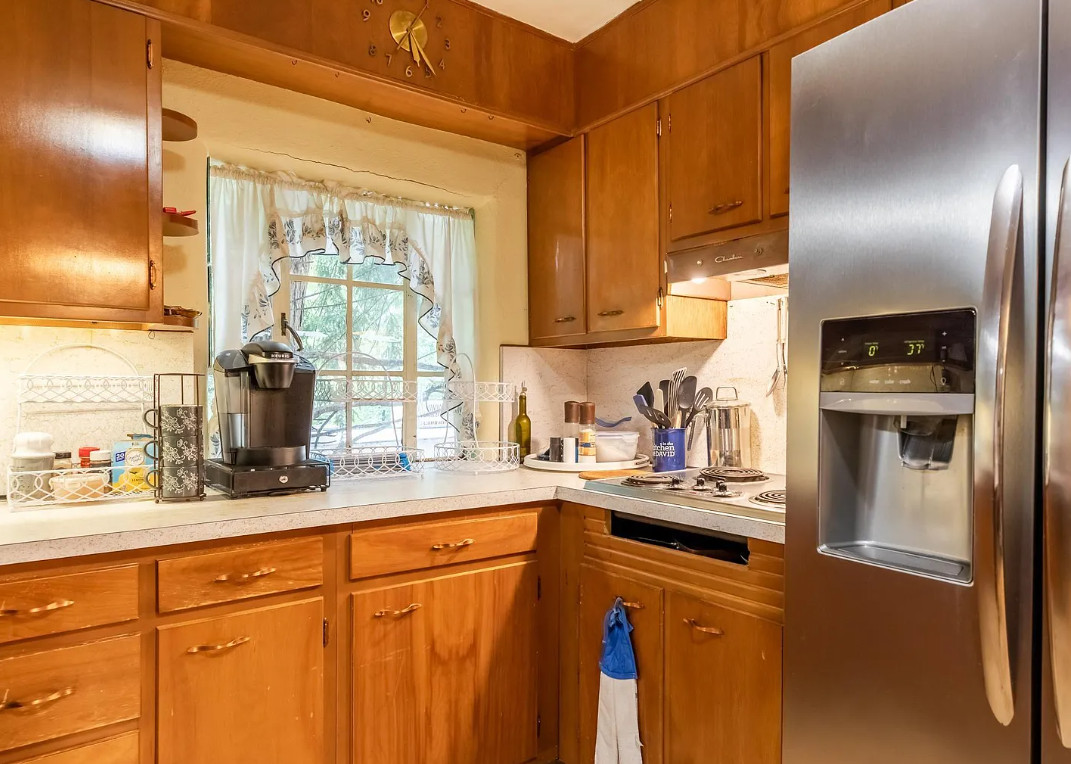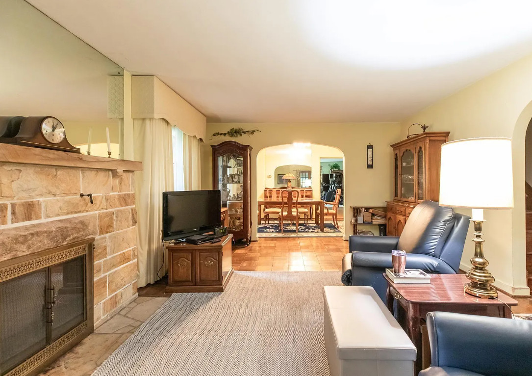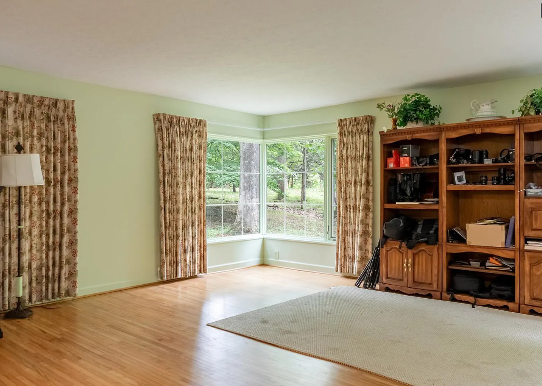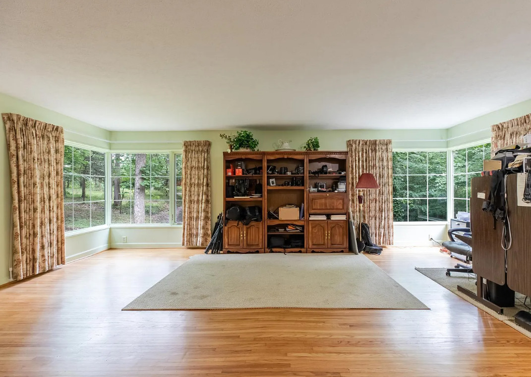 I love stone houses! The stone retaining wall is neat too. I wish the interior had a bit more rustic charm. The house was built in 1930. It is located on 4.75 acres in Bloomington, Indiana. The house features a large stone retaining wall, limestone exterior, large stone fireplace, wood floors, arched entryways and a built-in corner cabinet. There is a two car garage and a one car garage. Three bedrooms, two bathrooms and 2,448 square feet. $379,900