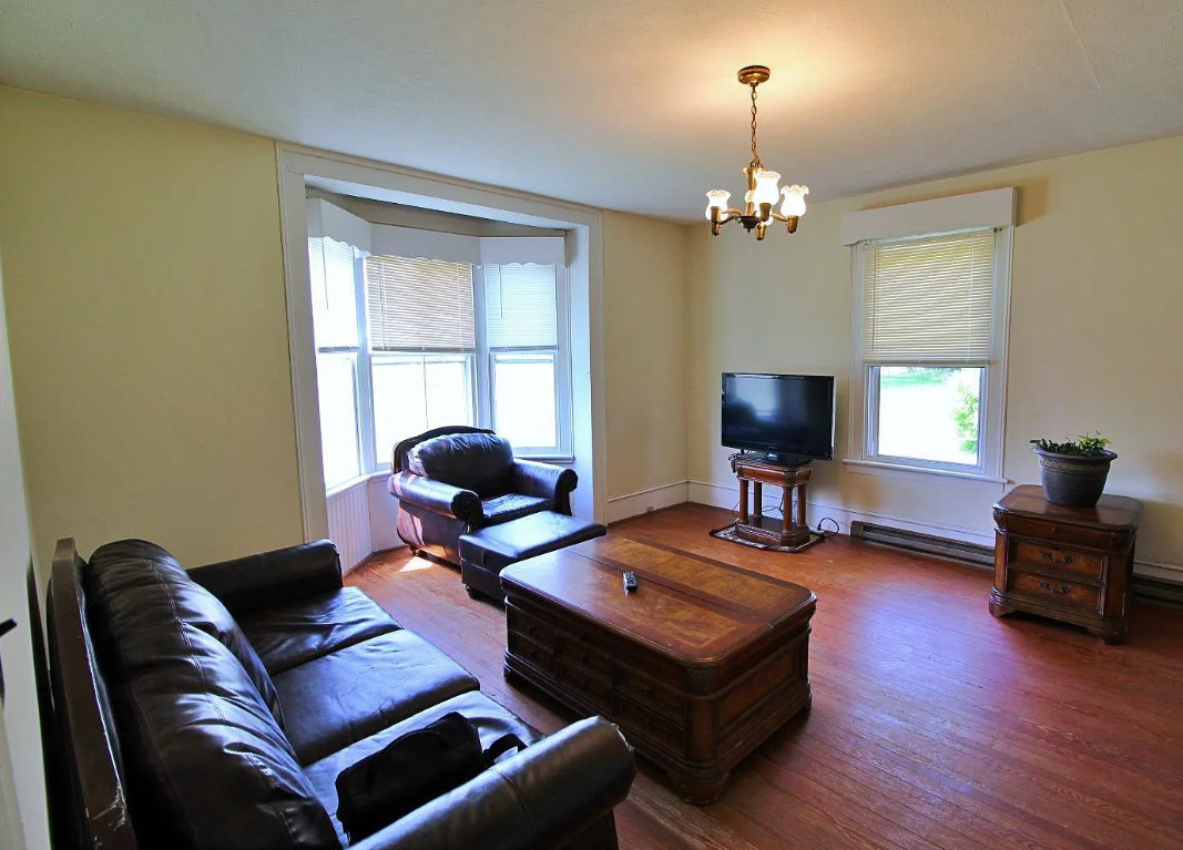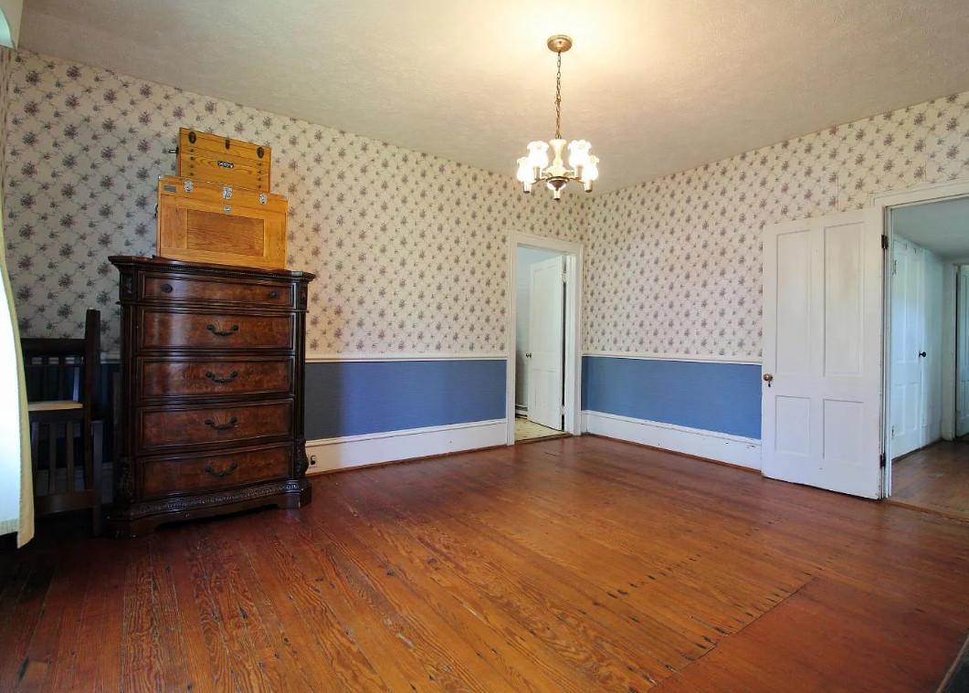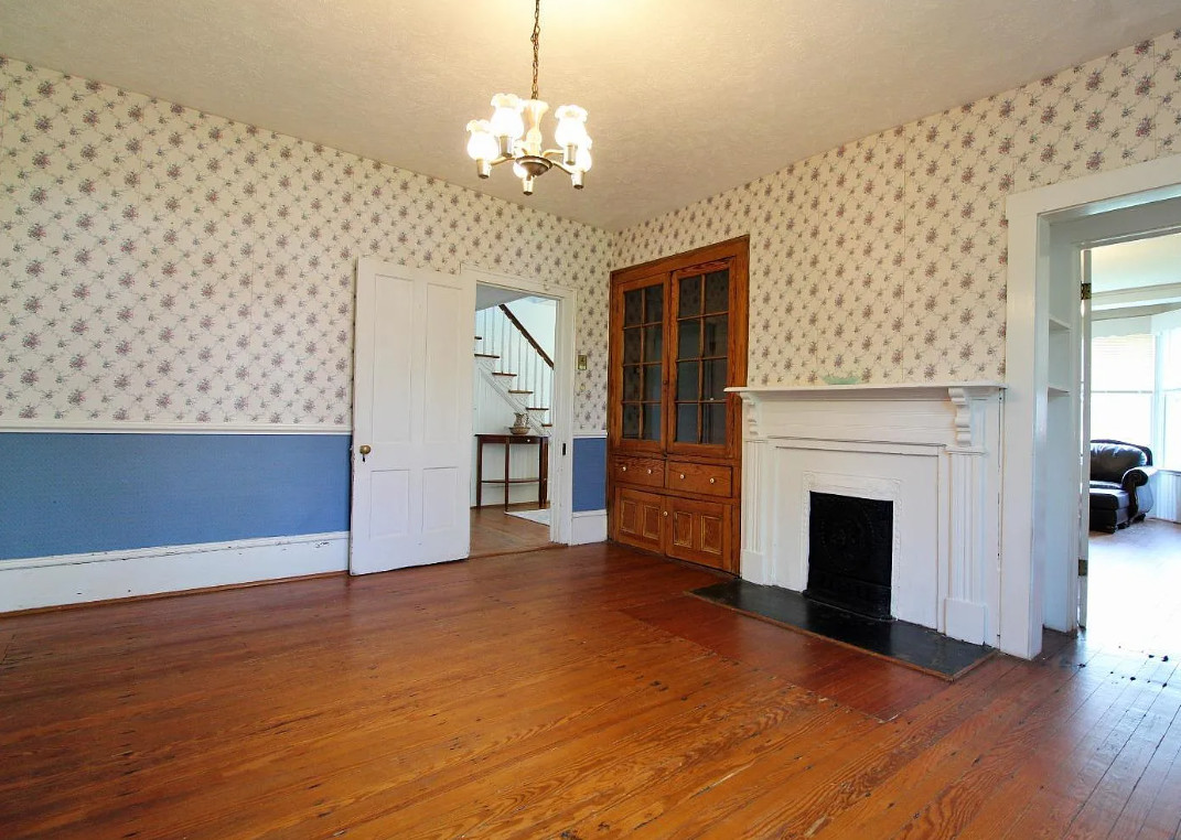 This house has a nice interior! It’s in an interesting town. Pamplin used to be a hub back in the day when the railroad came through. Then everything shuttered up and it was considered a ghost town. It’s been undergoing revitalization. The house was built in 1910. It is located on .75 acre in Pamplin, Virginia. The house features a covered front porch, original wood floors, nice staircase, wide baseboards, built-in china cabinet and chair rails. Five bedrooms, two bathrooms and 2,580 square feet. $199,900