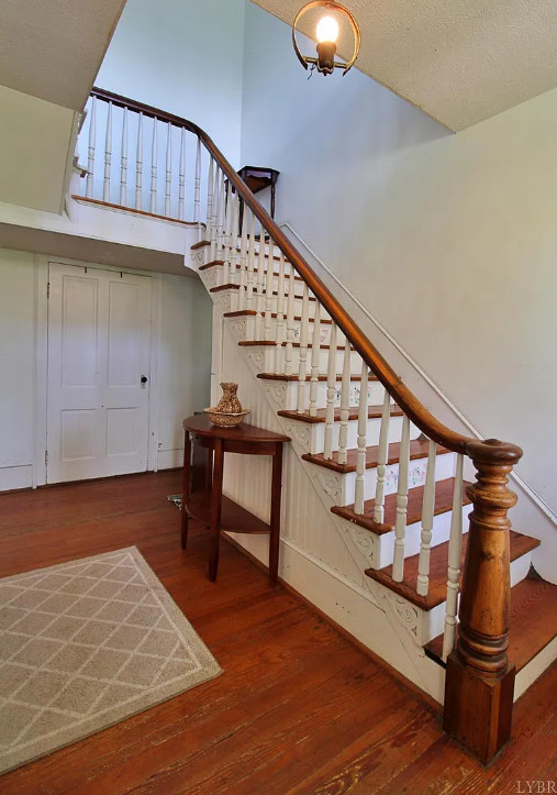 Check out this beautiful two story 5 bedroom home with 2580 square feet on a very usable .75 acre flat lot offered at less than $90 per sq’. Located in the quiet historical town of Pamplin Virginia this home is 10 mins from the town of Appomattox and 30 minutes to Farmville. The exterior features a nice front porch plus an upper balcony to relax on a large back yard with plenty of space for gardening or pets plus off street parking. Entering the home home you will be greeted with a nice open foyer and a grand original stairwell. The interior has all sorts of original features including the original hardwood floors, beautiful stairwell, custom moldings and original interior doors. Main level has a large living room and kitchen plus a separate dining room and a main level bedroom with a full bathroom. Upstairs has 3 more large bedrooms a second full bathroom and the upper balcony. Shentel high speed internet is available. Call today to take a look!