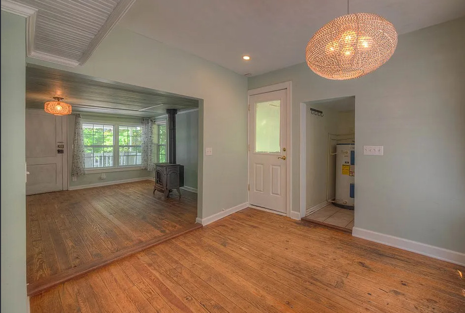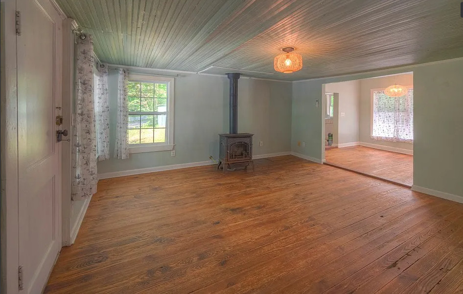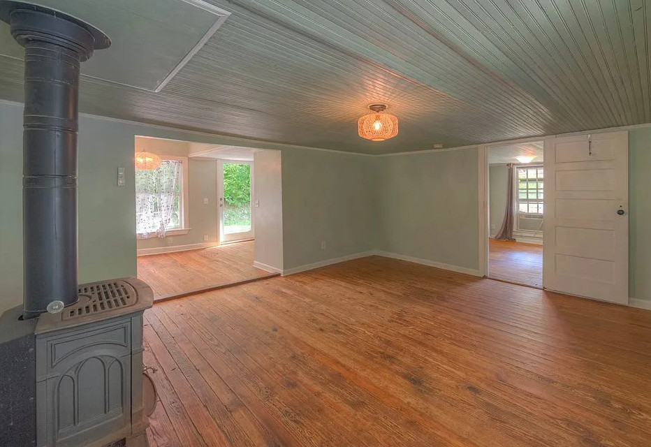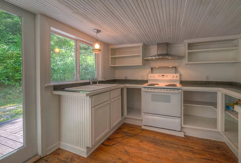 Stocked trout stream on the property! Decent acreage! The house was built in 1921. It is located on 7.2 acres in Andrews, North Carolina. The house features a covered front porch, back patio, wood floors, bead board and a wood stove. The house isn’t far from Nantahala Lake and the Nantahala Outdoor Center. One bedroom, one bathroom and 833 square feet. $185,000
