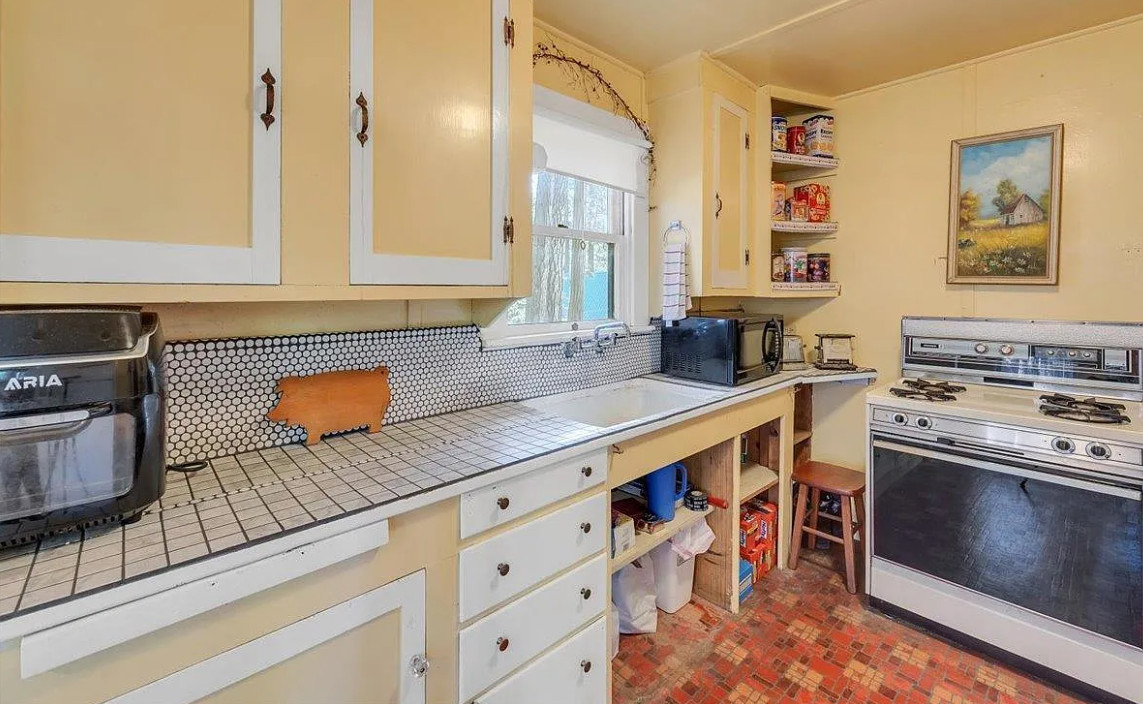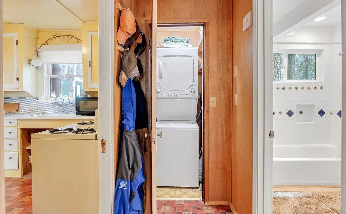 This house has character! With some work this could be really cute! The house was built in 1952. It is located in Long Barn, California. The house features a covered front porch, unique staircase railing, fireplace and a basement. Two bedrooms, three bathrooms and 1,004 square feet. $250,000