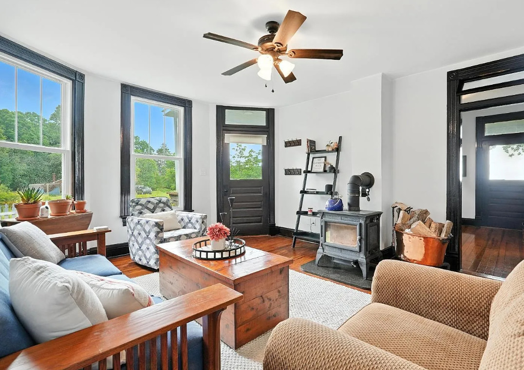 Enjoy stunning views of the Peaks of Otter from this beautifully renovated builder’s farmhouse, perfectly positioned on 1.3 acres in Forest. Blending timeless character with modern updates, this 4-bedroom, 2.5-bath home offers 1,850 sq ft of living space framed by mature trees and peaceful mountain scenery. Foyer with original staircase and classic wood detailing. The main level of this 1910 home features gleaming hardwood floors, a cozy den with woodstove, a flexible sitting or dining area, half bath, and laundry room. The updated kitchen includes granite counters, stainless steel appliances, and a stylish coffee bar ideal for mornings or hosting. Upstairs, the owner’s suite features a walk-in closet and private bath, plus two more bedrooms and a half bath. Relax on the wraparound porch while soaking in Blue Ridge viewsall just 7 minutes from the Forest shopping center. A rare blend of character, comfort, and convenience in a scenic setting.