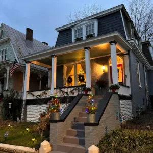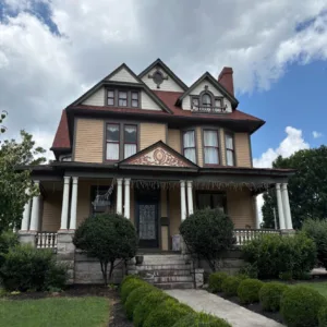 Victorian homes are known for their “gingerbread”–that delicate, lacy woodwork along the eaves, porches, and gables. It was all hand-carved back then and every little piece tells a story. You might also spot spindlework, sunburst motifs, and brackets under the roofline…all those tiny touches that make a huge impact.