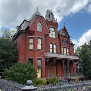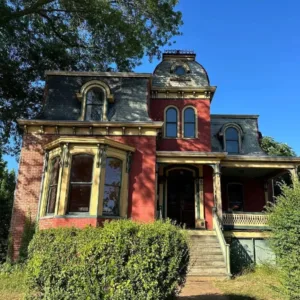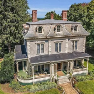The Aaron Kimball House, stunning inside and out, was built in 1864 in Brookfield, MA. With SIX marble fireplaces, walnut woodwork, and plaster moulding, this is an impressive Second Empire home. It sold in 2024, but you can still check out the article here!