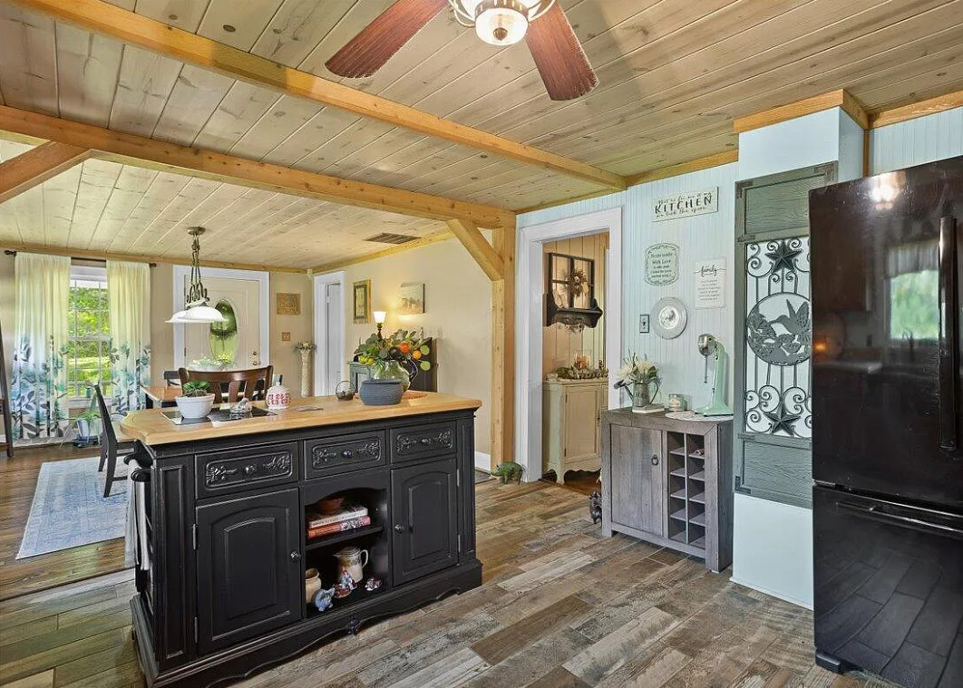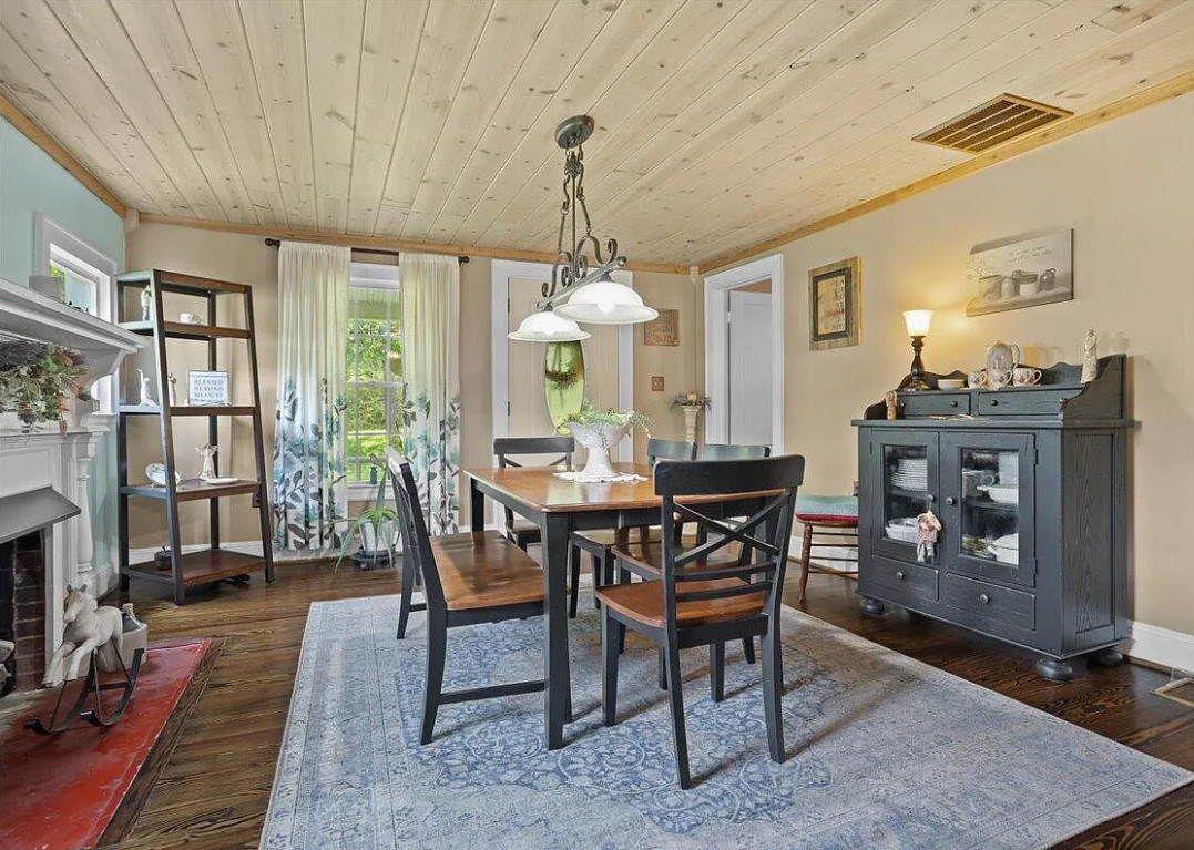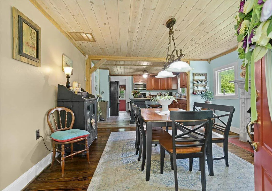 This house has a nice farmhouse feel to it! Such pretty views and a very pretty area! The house was built in 1935. It is located on 1.59 acres in Salem, Virginia. The house features a covered front porch, wood floors, baseboards, bead board, crown moulding, enclosed back porch and chair rails. There are two detached sheds on the property. Not far from Masons Cove, Hanging Rock and McAfee Knob. Three bedrooms, one bathroom and 1,470 square feet. $365,950