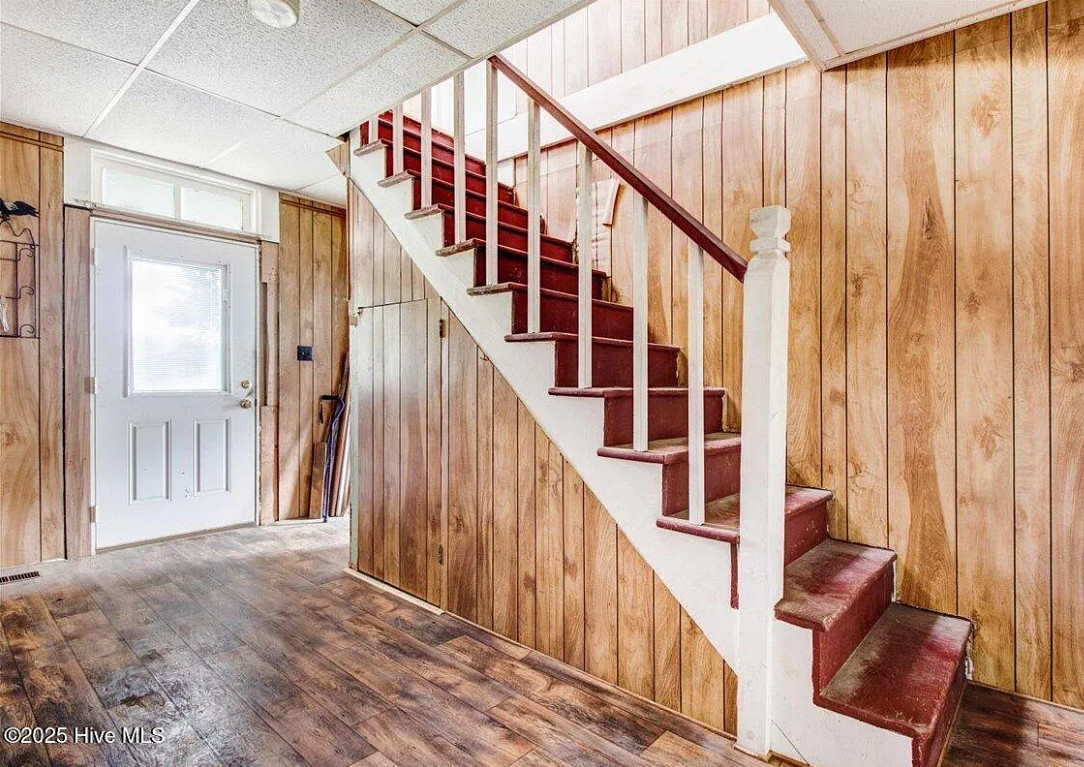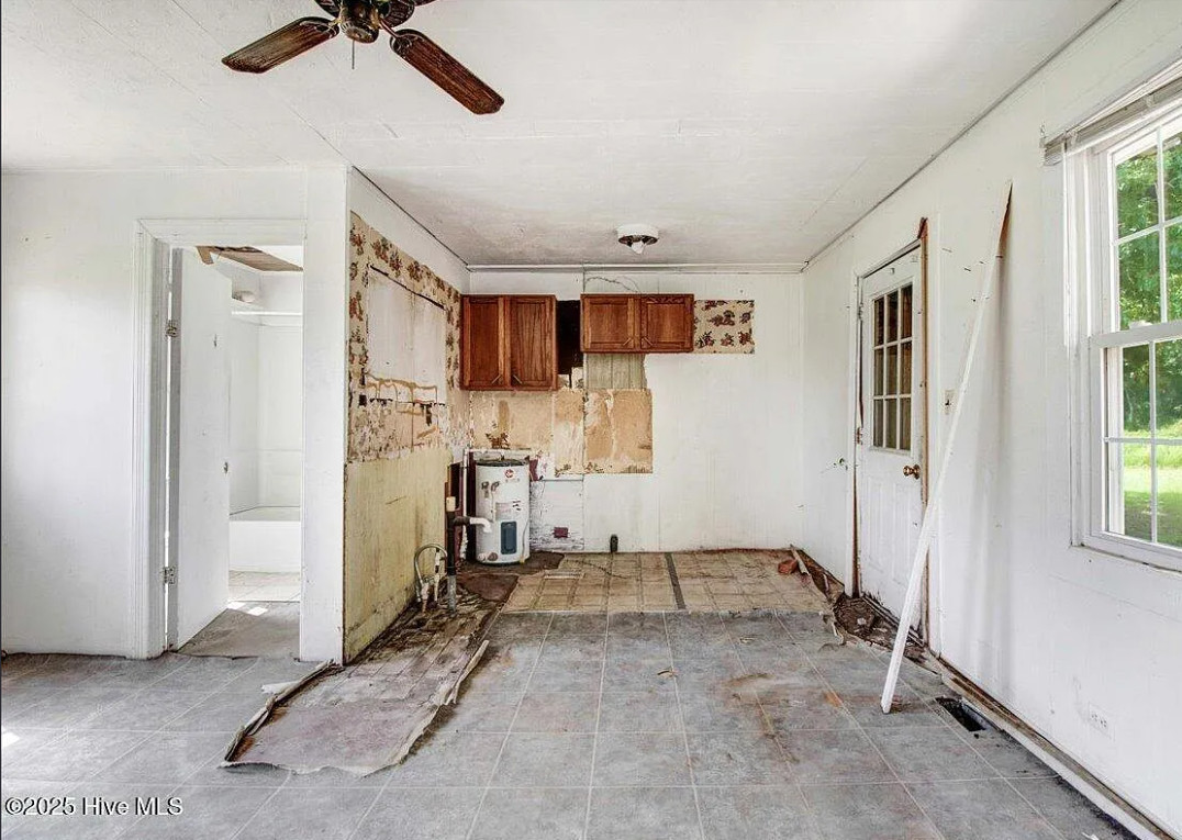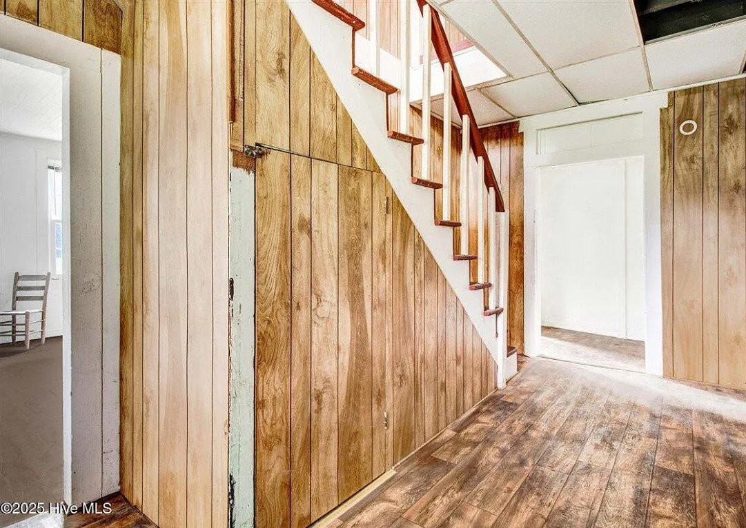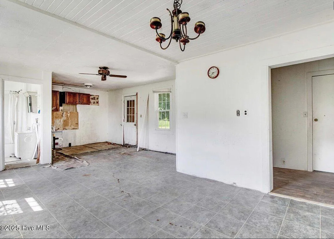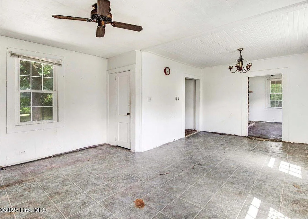 There are pecan trees and blueberry bushes on the property! This is definitely a fixer upper. There is bead board behind all of the paneling. The house was built in 1920. It is located on 3.54 acres in Grifton, North Carolina. The house features a covered front porch, bead board, some wood floors and baseboards. Three bedrooms, one bathroom and 1,486 square feet. $125,000