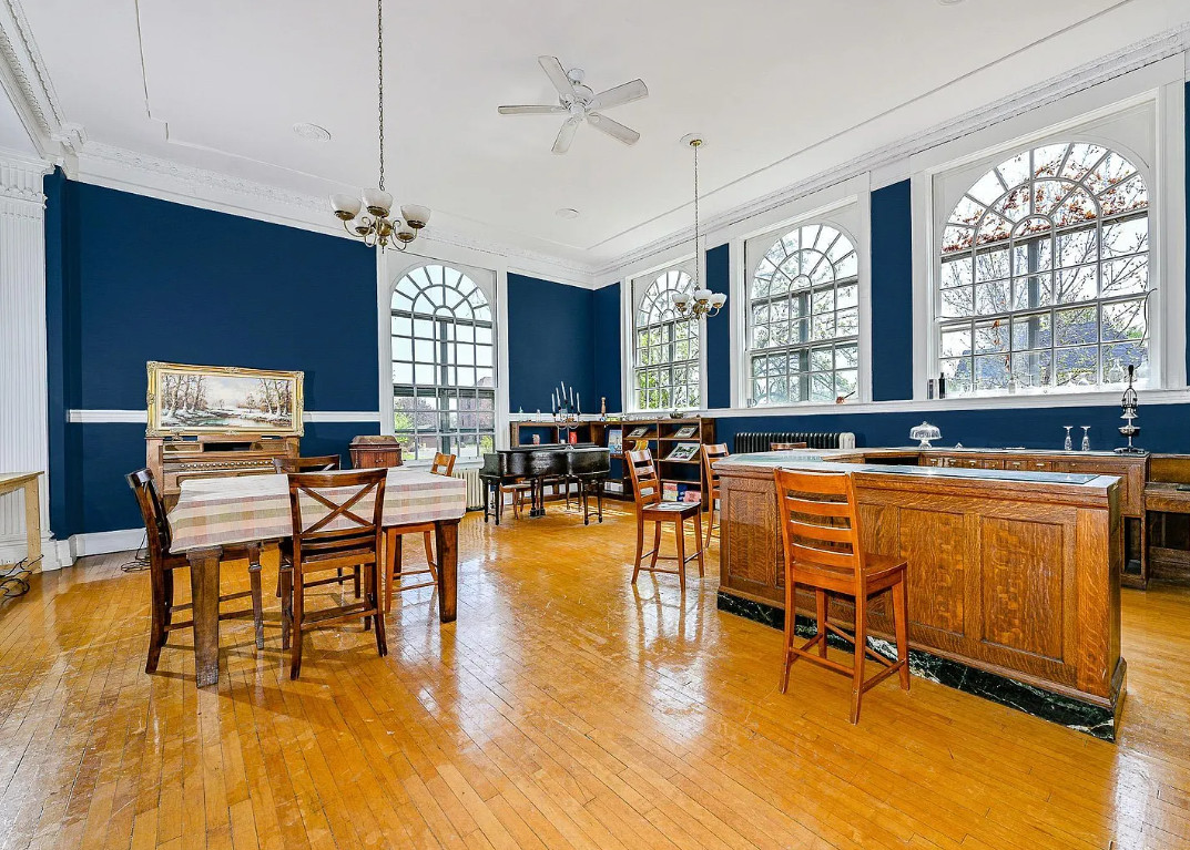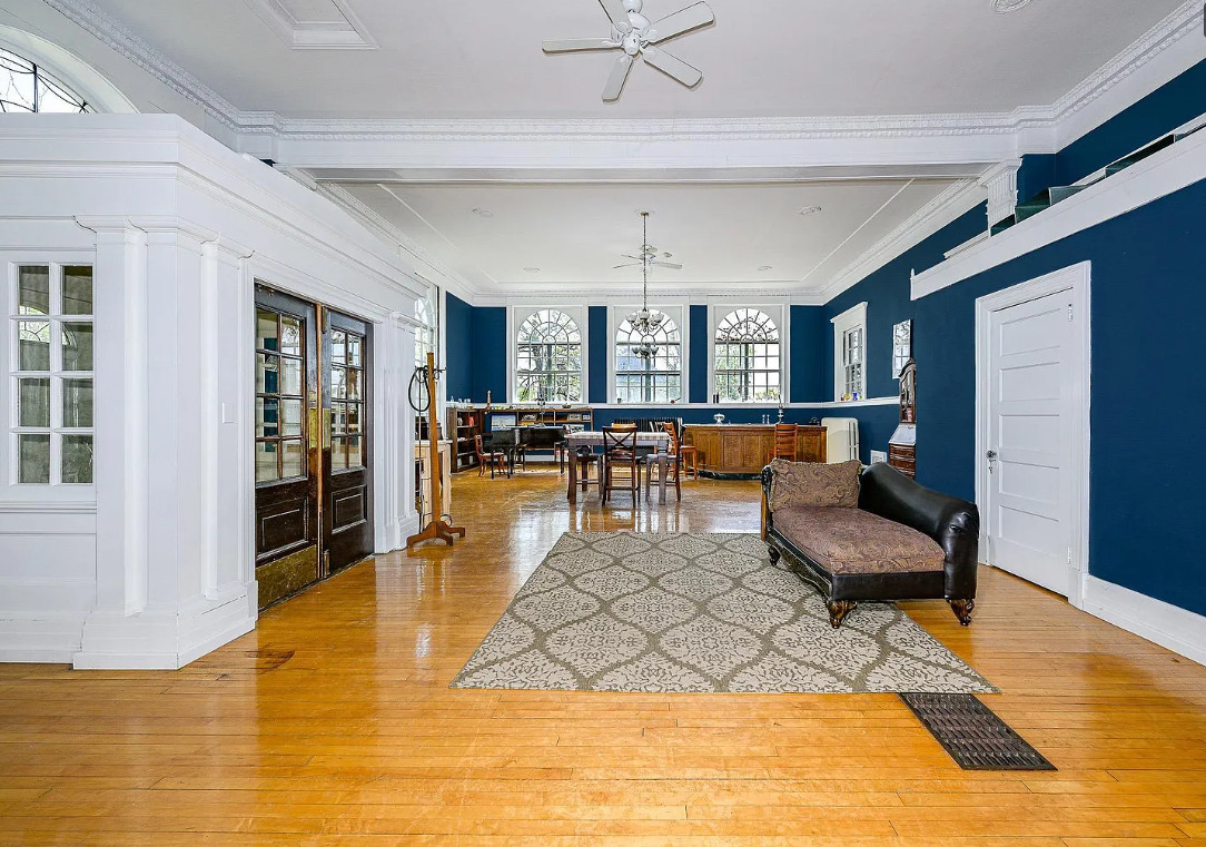 This is a former Carnegie Library. Love the brick! The library was built in 1917. It is located on .34 acre in Superior, Wisconsin. The building has been turned into a private residence. There is a back patio, two car attached garage, wood floors, crown moulding and great windows. The price seems a tad high to me, but I am not familiar with the area. Two bedrooms, two bathrooms and 2,376 square feet. $375,000